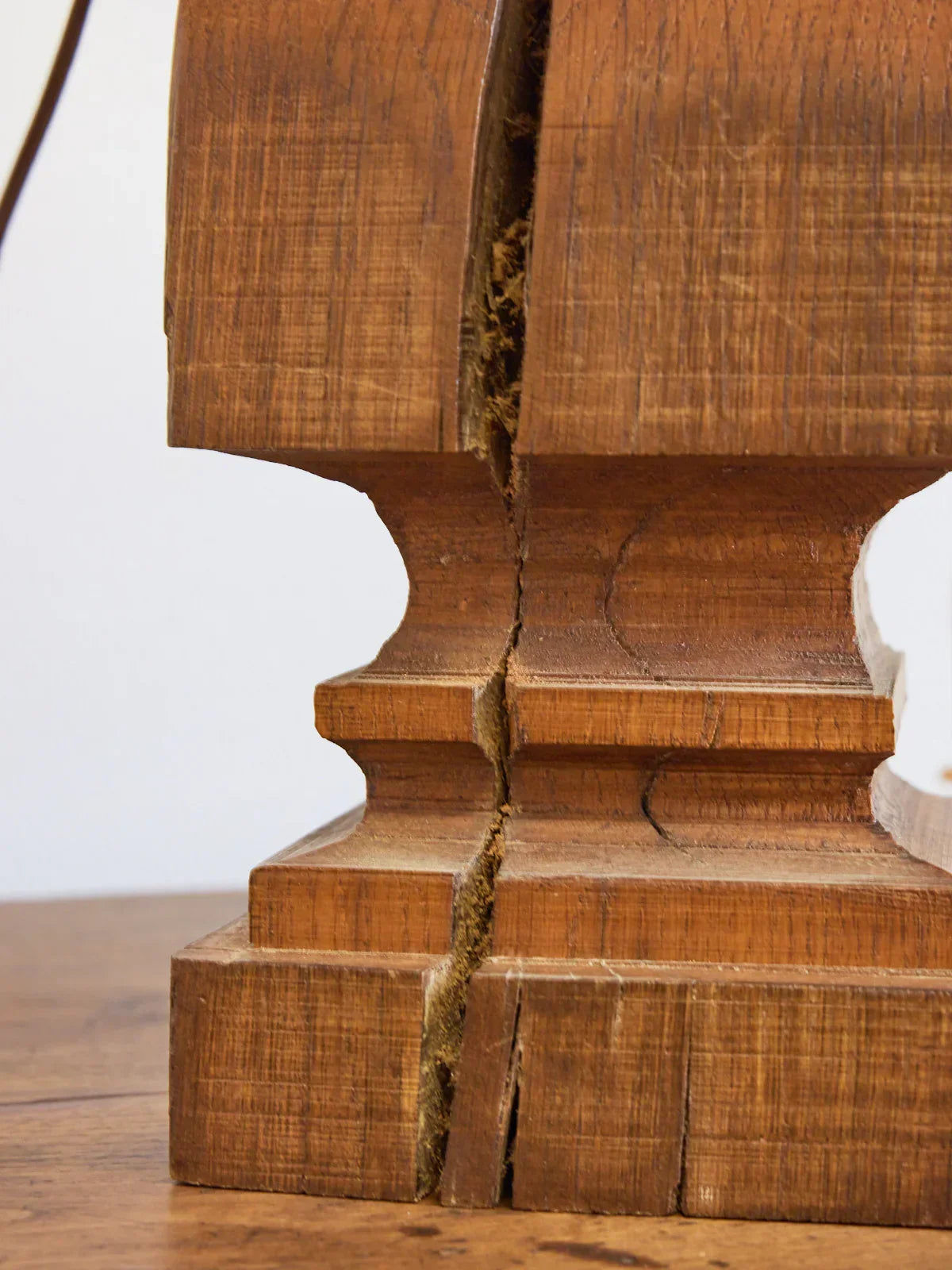 Add a sculptural touch with this rectangular wooden lamp featuring a geometric design. Its clean lines complement both contemporary interiors and warmer, more inviting spaces. The natural wood diffuses a soft, diffused light, ideal as an accent lamp on a console table, bedside table, or desk, and highlights a refined and understated décor. A crack in the wood adds a touch of authenticity.