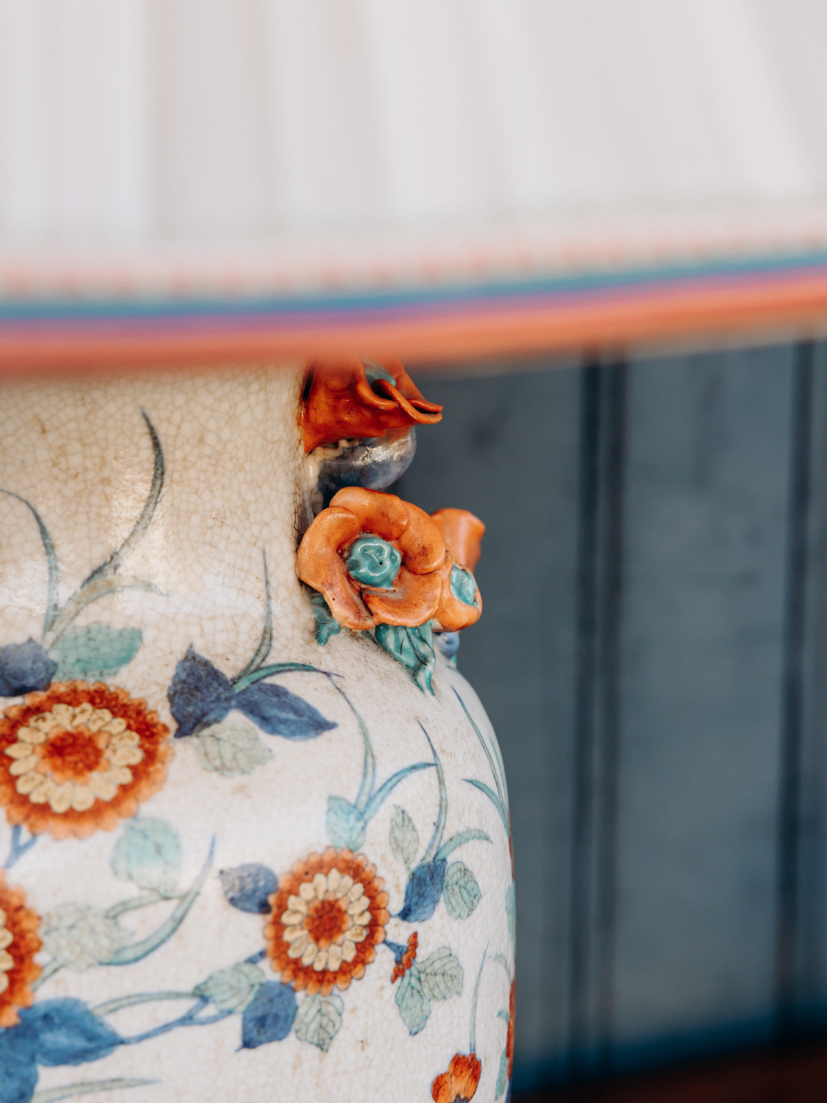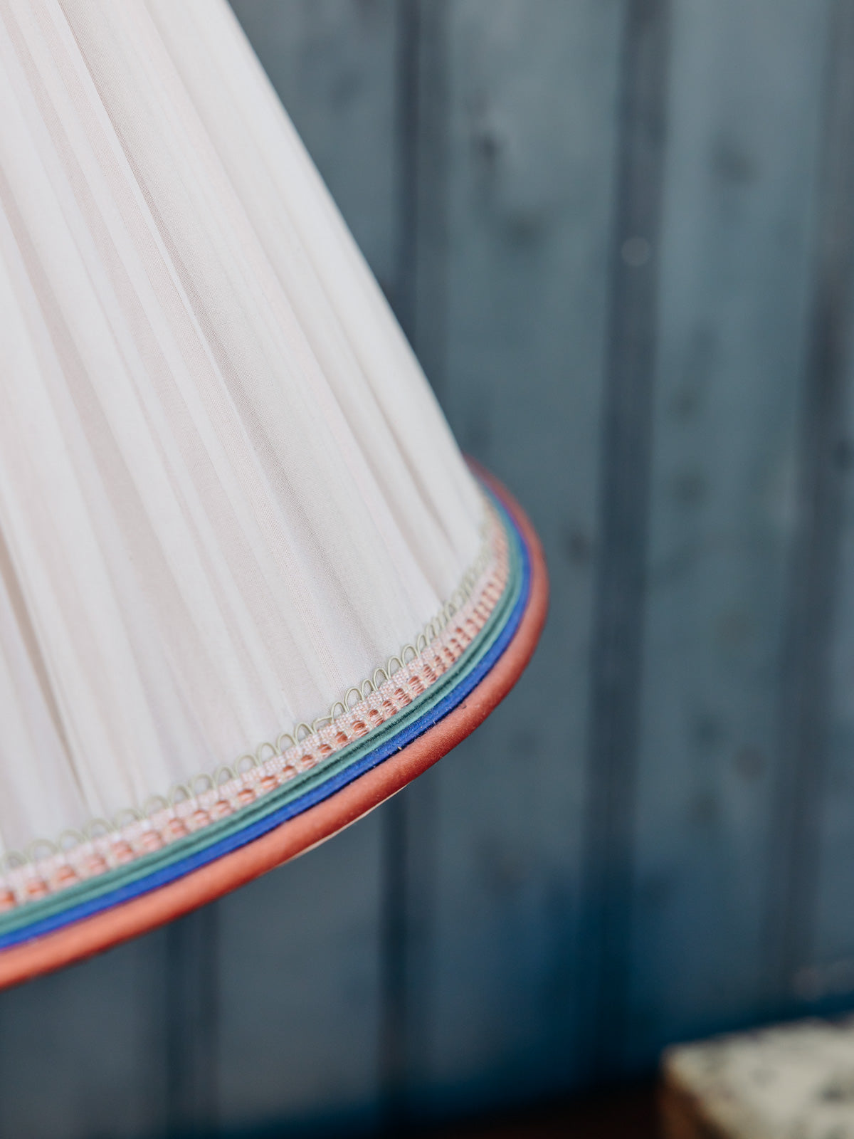 Elevate your interior with this striking table lamp crafted from glazed ceramic. Its satin finish captures the light and offers a warm, tactile surface. The large, pleated shade diffuses a soft, enveloping light, perfect for creating a cozy atmosphere in a living room or reading nook, while the black base provides stability and a contemporary contrast. Its generous proportions lend it an elegant and calming presence without overwhelming the room.