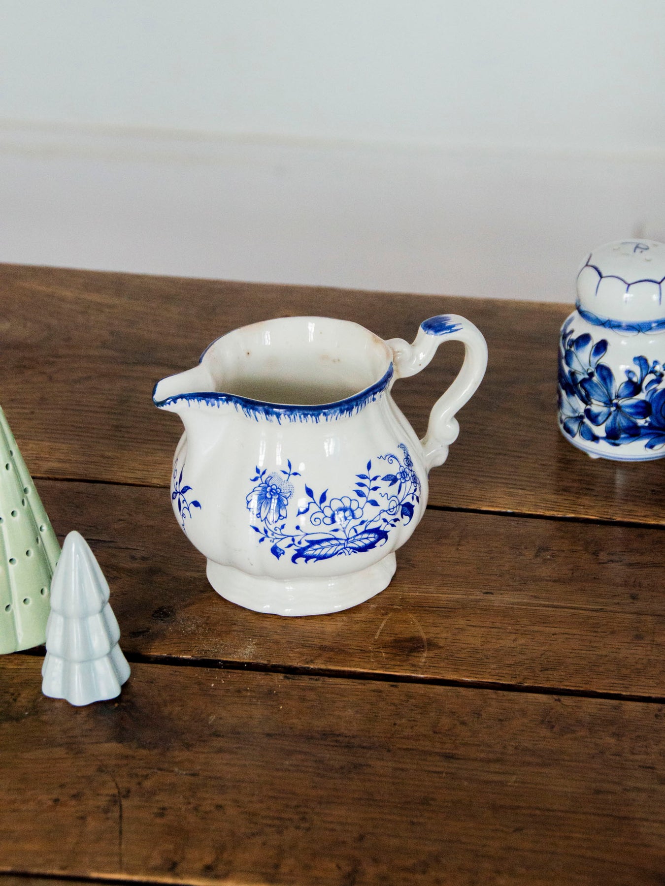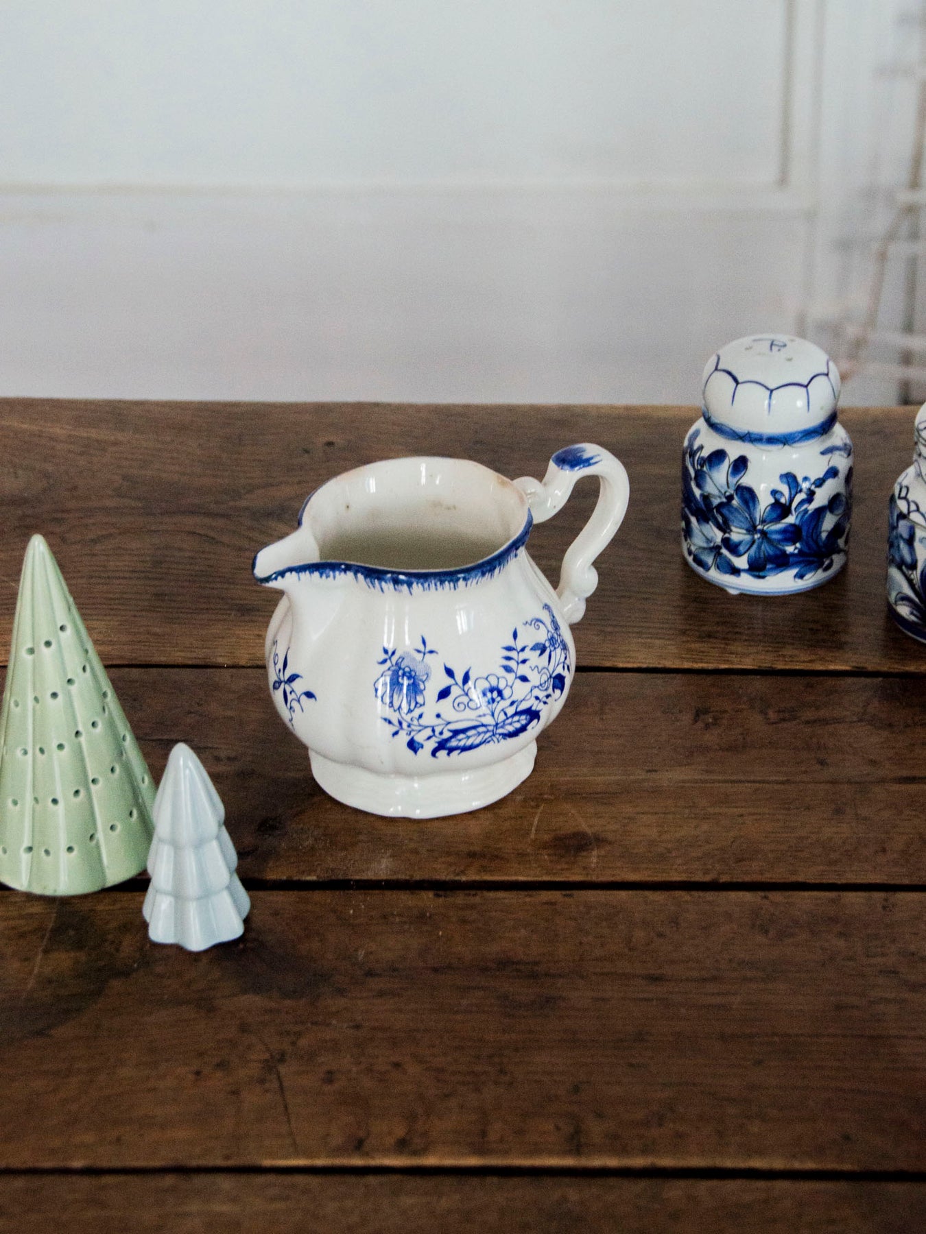 Bring a touch of tradition to your table with this Lancaster Sarreguemines white earthenware pitcher, delicately decorated with a blue motif. Its small handle and compact size make it a practical companion for serving milk, cream, or sauces, perfect for breakfast or coffee breaks. The luminous glaze and vintage-style decoration lend understated elegance and a touch of nostalgia to your tableware. Ideal for creating a warm and refined setting.