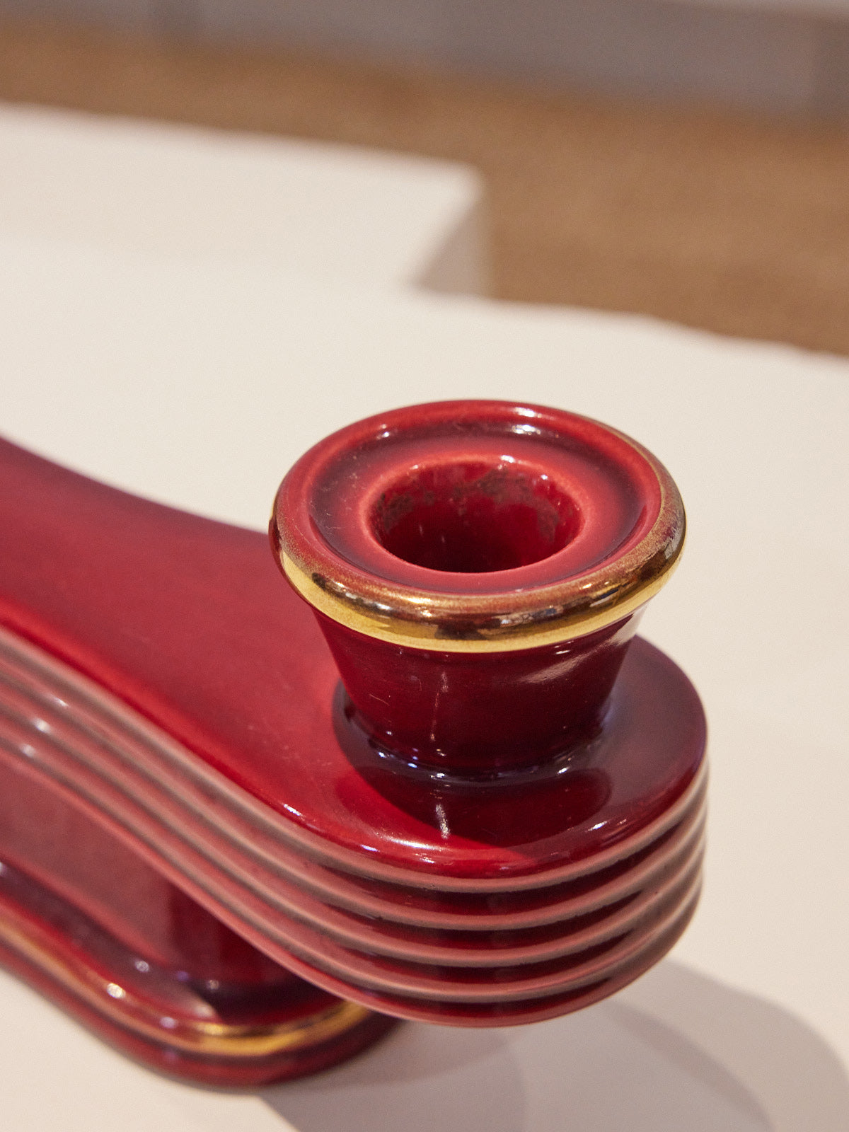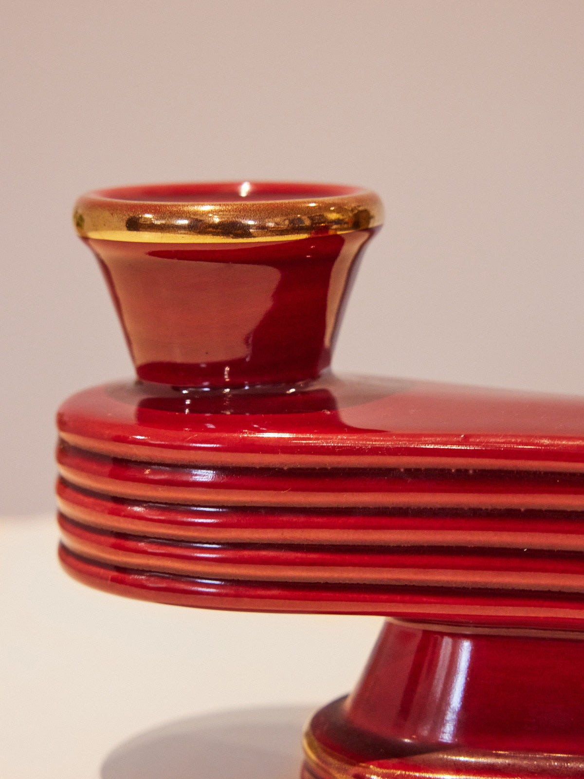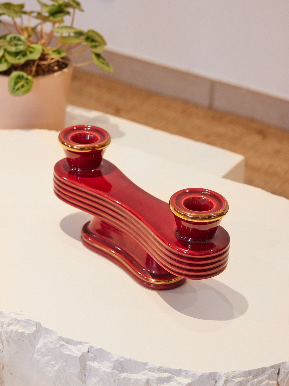 Elevate your table or console with this double candlestick in Art Deco style, blending geometric lines and balanced proportions for a striking yet understated presence. Designed to hold two candles, it diffuses a soft, intimate light, perfect for creating a warm atmosphere during dinner or a quiet moment with a book. Its patinated metal finish lends it a simple elegance and a warm texture. It complements both contemporary interiors and vintage décor.