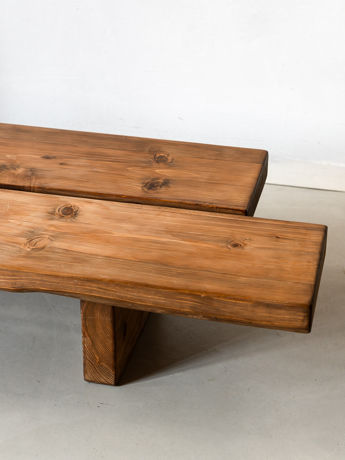 Adoptez la table basse modèle MM1, n°3 sur 20, réalisée en cèdre de l'Atlas massif et finie à la cire pour une patine douce et satinée. Sa silhouette longue et basse crée une présence discrète mais affirmée, idéale devant un grand canapé pour exposer livres et objets du quotidien. Le bois chaleureux révèle un veinage singulier qui invite à la convivialité et à la contemplation.