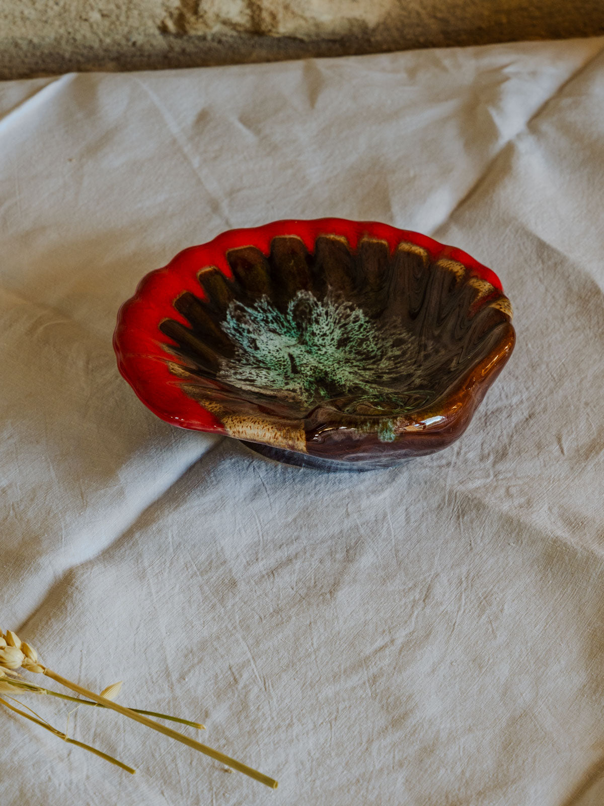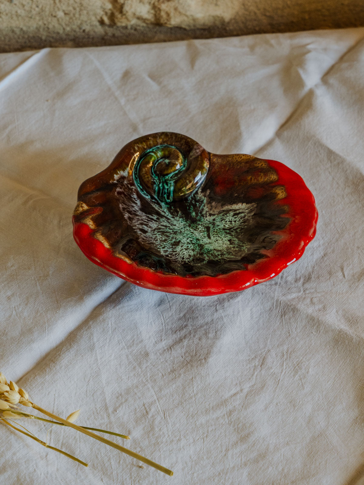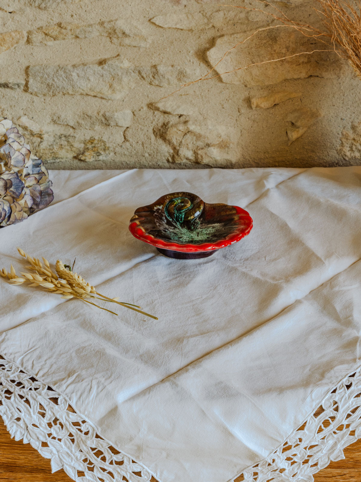 Apportez une touche de charme artisanal avec ce vide‑poche rouge, inspiré du style Vallauris et façonné en faïence vernissée. Son format accueille naturellement clés, bijoux et monnaie, tandis que la glaçure brillante met en valeur la couleur profonde et les contours simples. Idéal sur une console d'entrée, une coiffeuse ou un bureau, il apporte une note chaleureuse et sophistiquée qui harmonise un intérieur contemporain ou rétro.