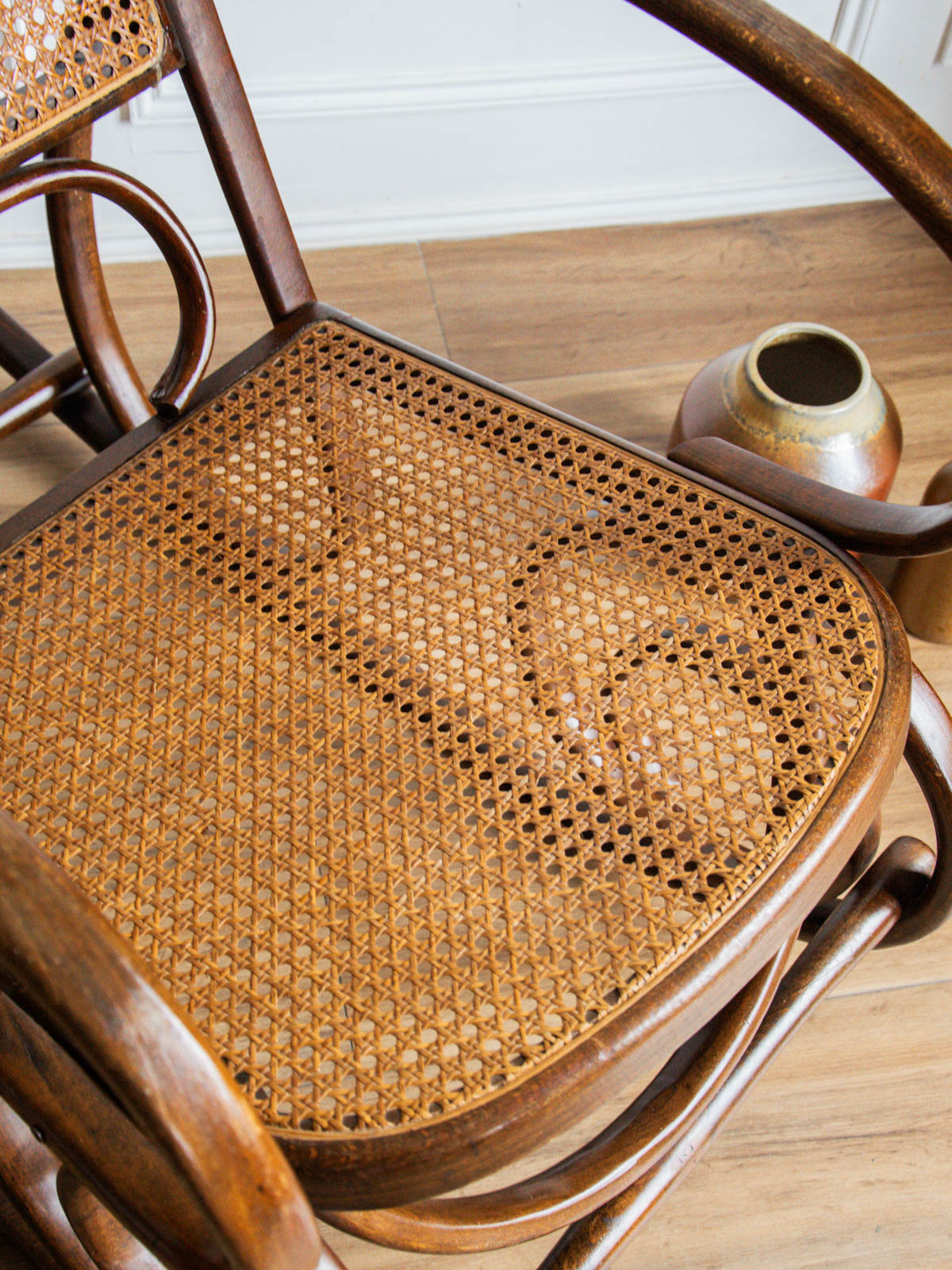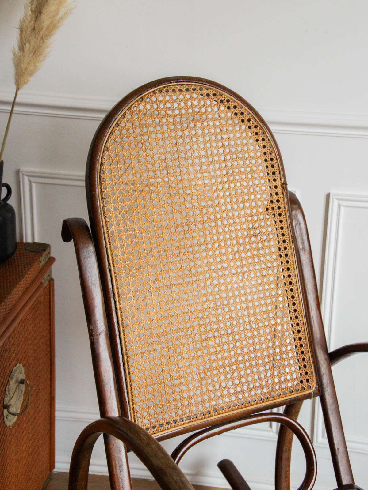 Découvrez le rocking-chair en bois avec son élégante assise en cannage, un incontournable pour apporter une touche de charme à votre intérieur. Sa structure en bois massif assure robustesse et durabilité, tandis que le cannage offre un confort respirant et authentique. Idéal pour se détendre dans votre salon ou sur votre terrasse, ce rocking-chair combine style vintage et fonctionnalité. Éveillez votre sens du bien-être avec ce fauteuil à bascule intemporel !