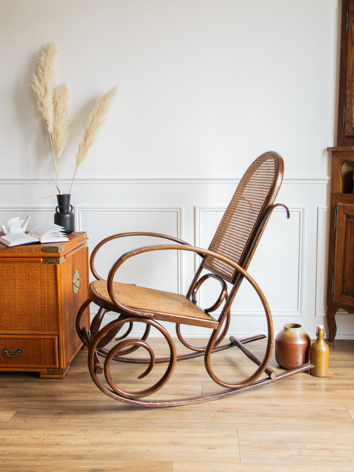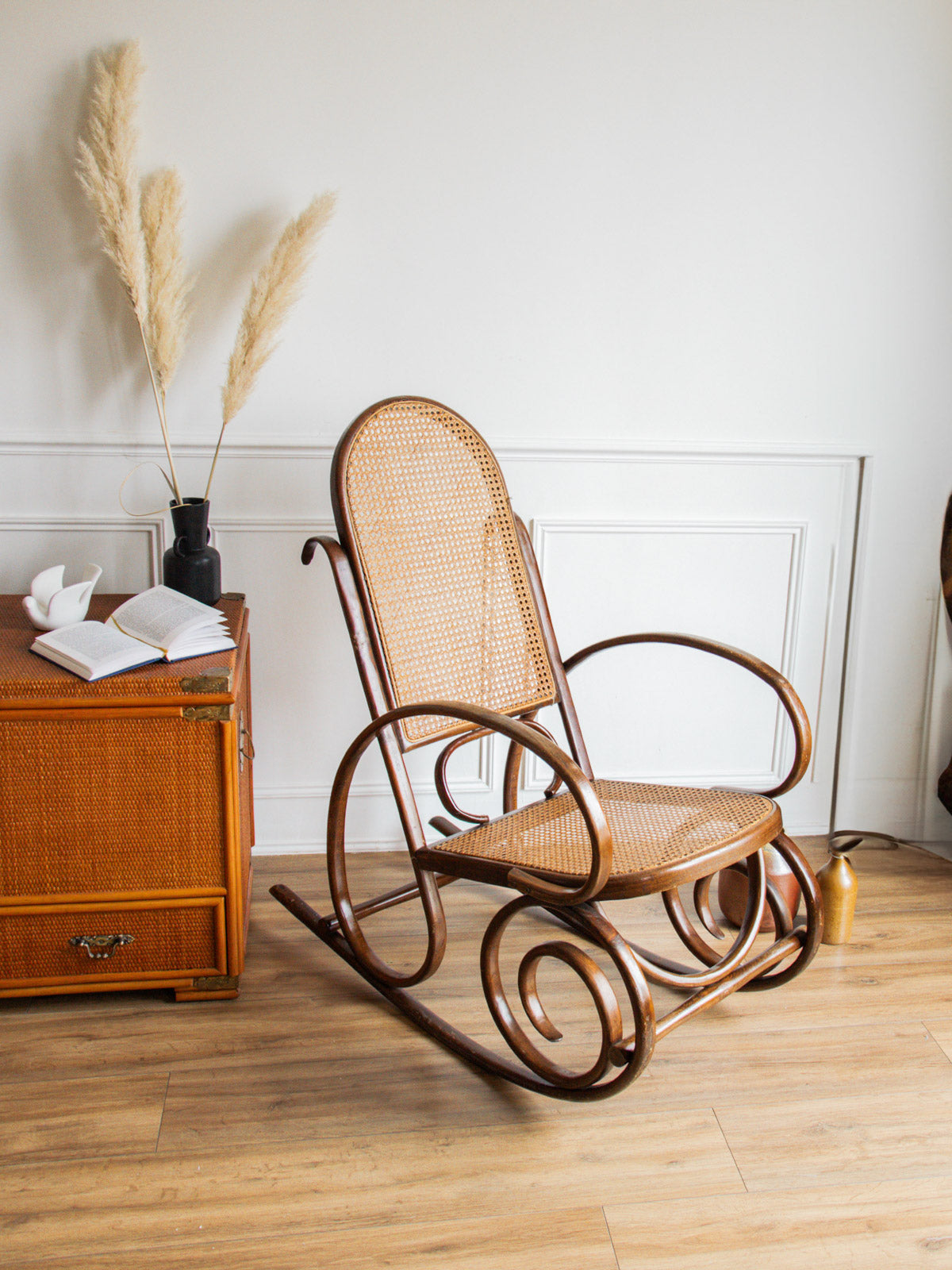 C’est au XVIIIe siècle que le rocking chair fait son apparition dans les familles anglaises. Il témoigne de la nouvelle façon de vivre de la société qui aspire à plus de confort et de frivolité dans leur quotidien. La manufacture familiale Thonet se saisit du modèle pour réinventer la chaise à bascule avec la technique du bois courbé cintré par vapeur. La chaise à bascule fera sensation en Europe et sera importée jusqu’aux Etats-Unis, où le rocking-chair devient un incontournable du style American Empire. Son doux balancement est parfait pour se laisser aller à vos rêveries avec une bonne tasse de thé !