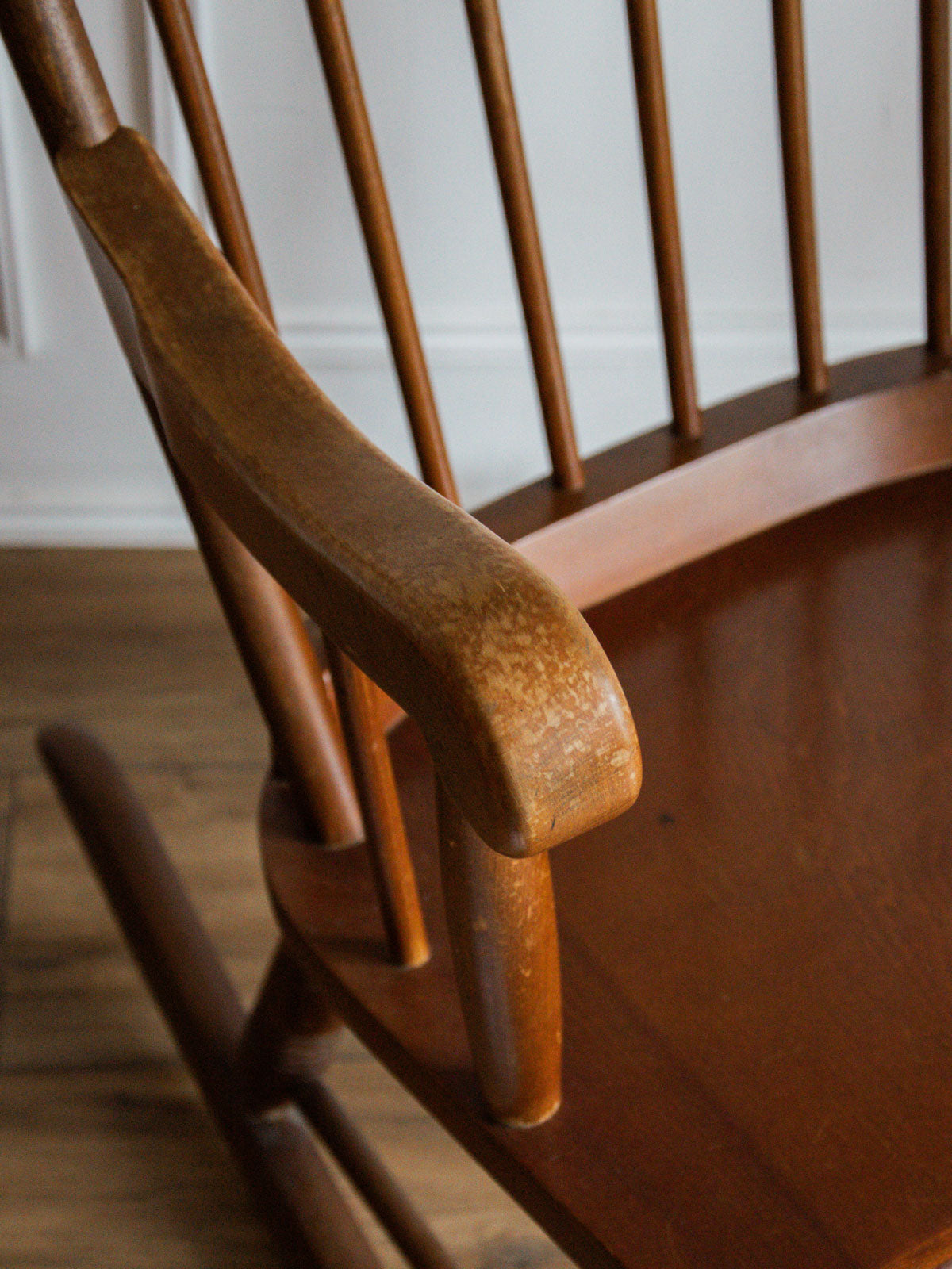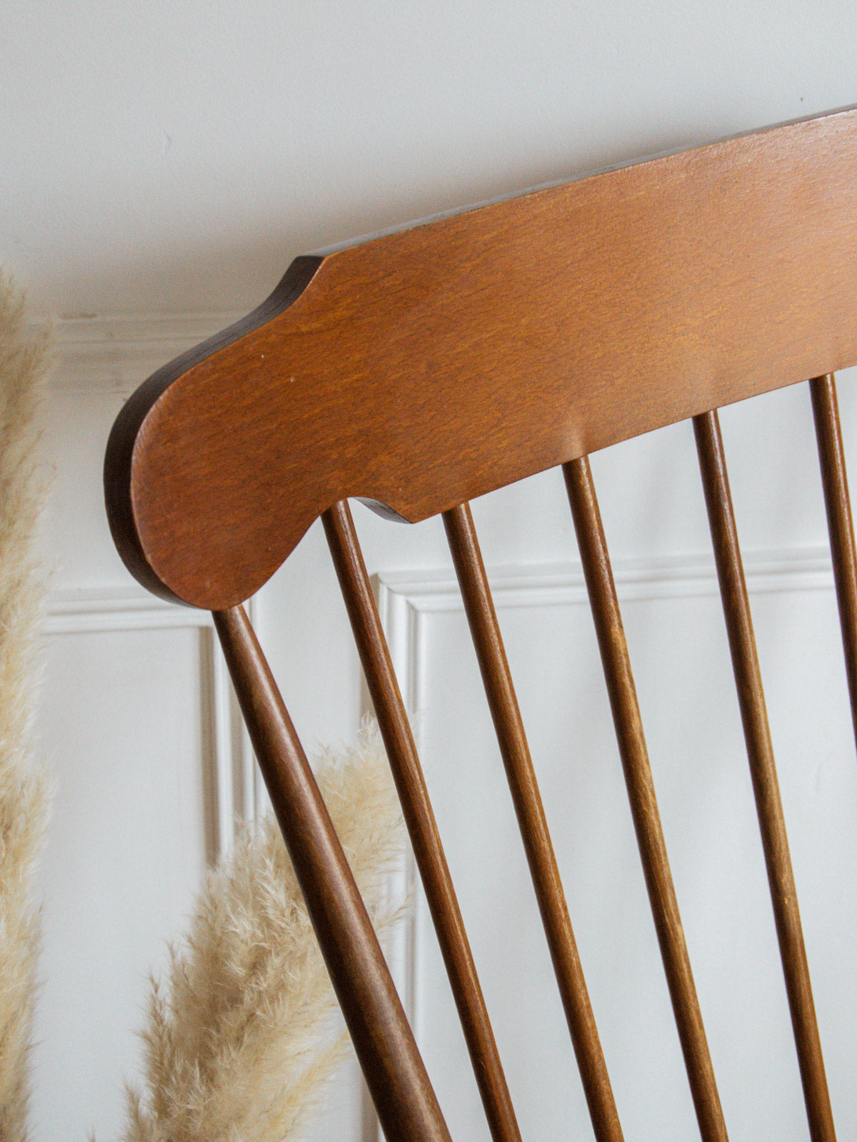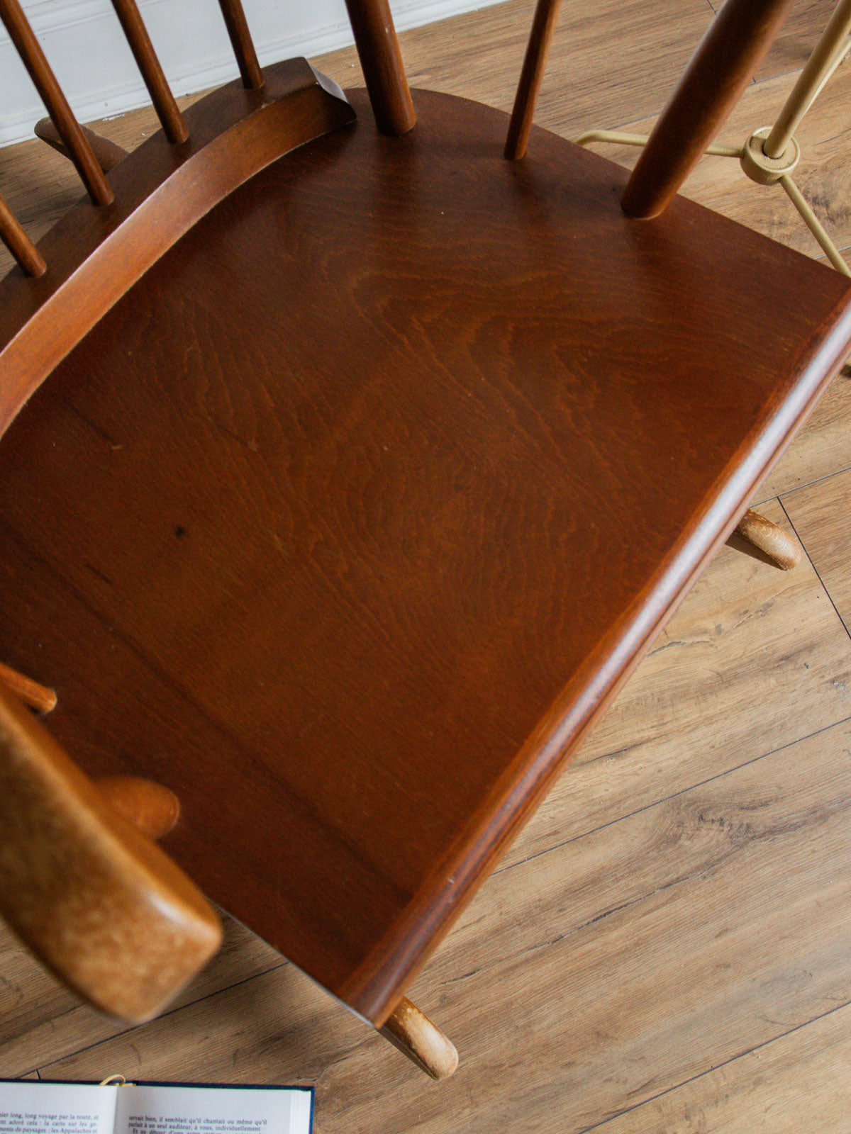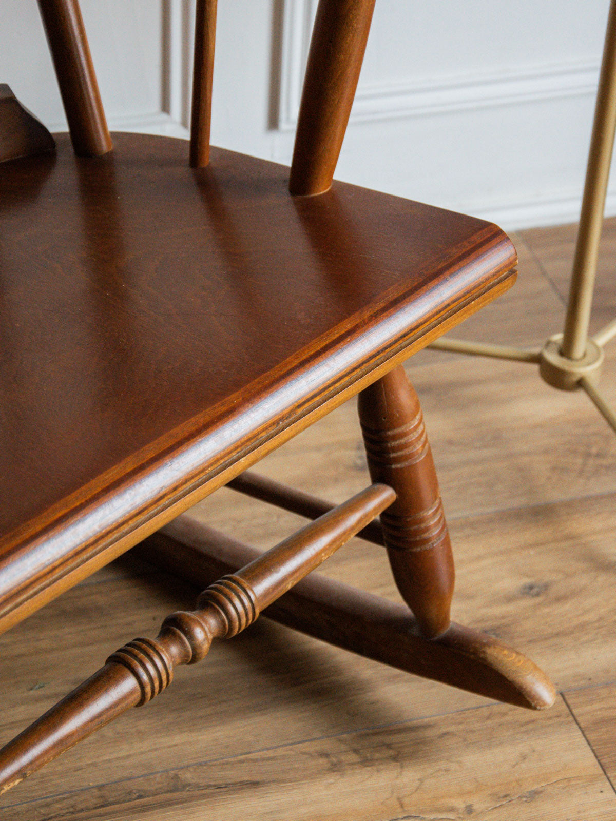 Découvrez notre rocking-chair en bois au charme indéniable. Ses traces d'usure, témoignages d'une histoire unique, ajoutent une patine authentique à ce mobilier intemporel. Idéal pour les moments de détente, il s'intègre parfaitement dans tous les intérieurs, apportant une touche vintage et chaleureuse. Un véritable invitation à la relaxation qui saura séduire les amateurs de pièces au caractère affirmé.