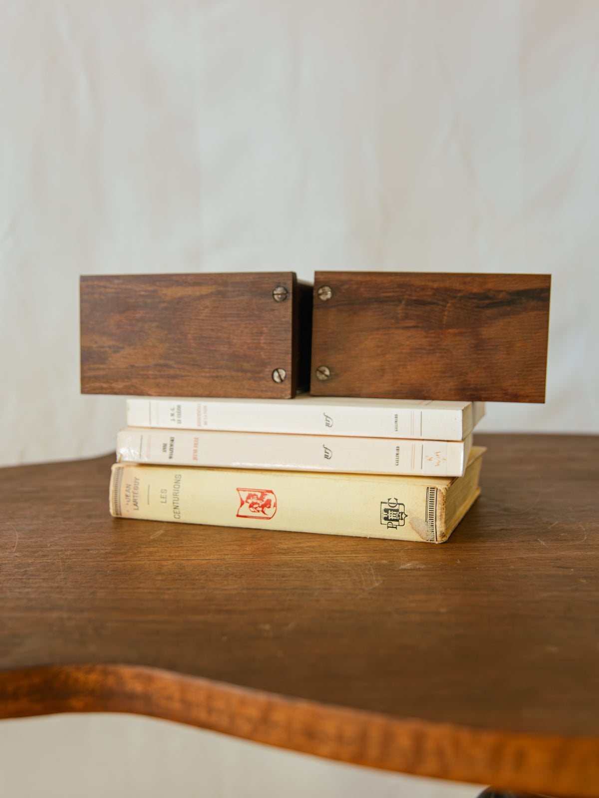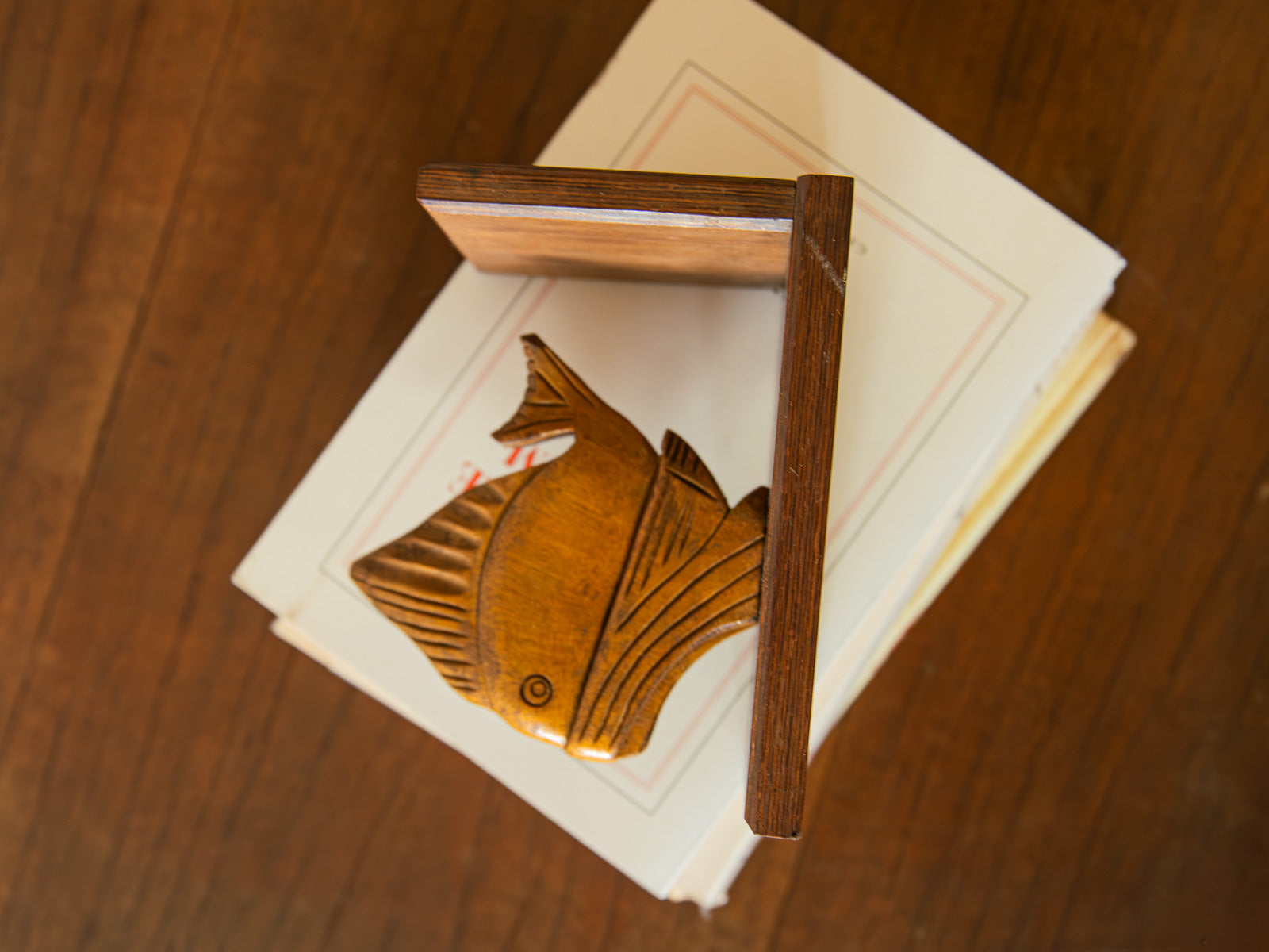 Apportez une touche marine et poétique à votre bibliothèque avec ce presse livres en bois sculptés en forme de poissons, en bon état. Leur bois naturel, travaillé avec soin, révèle un joli grain et une finition mate qui réchauffent l'espace tout en restant discrets. Conçus pour maintenir vos ouvrages avec stabilité, ils s'intègrent aussi bien sur une étagère que sur un bureau, apportant une note artisanale et accueillante à votre intérieur. Légères traces du temps à noter.