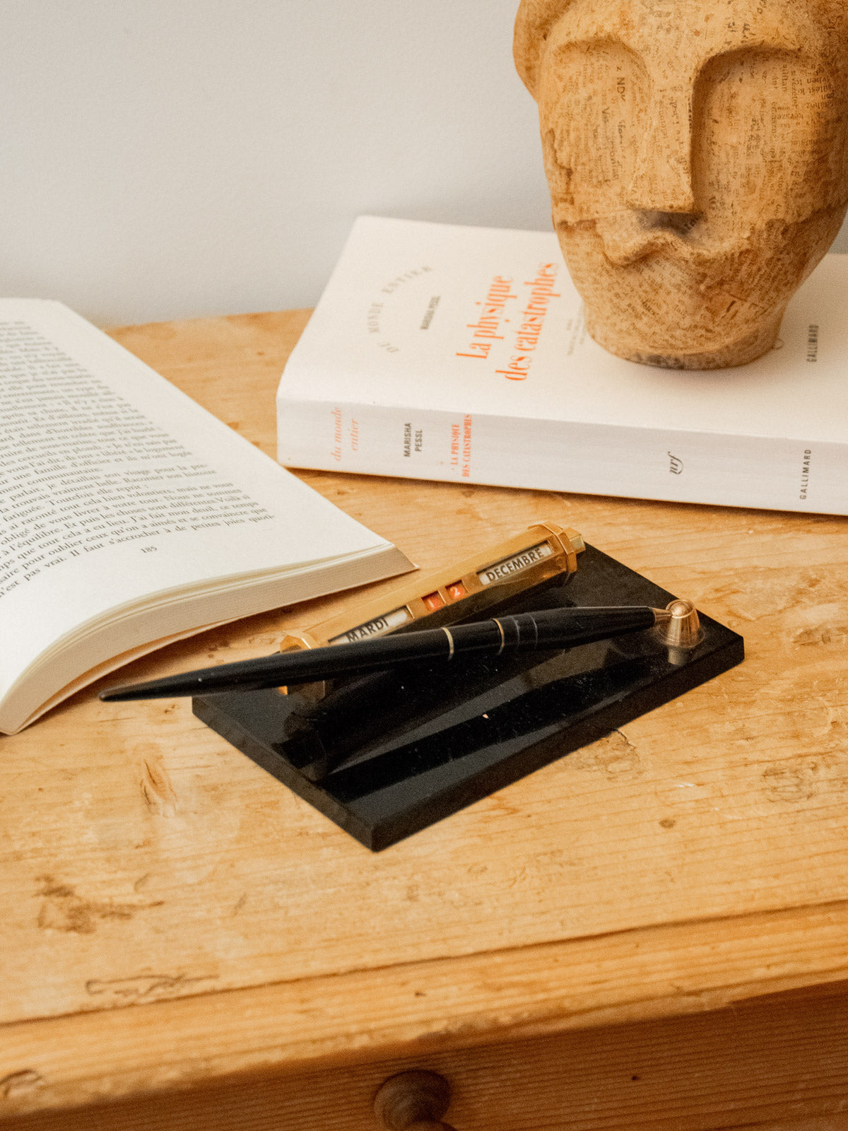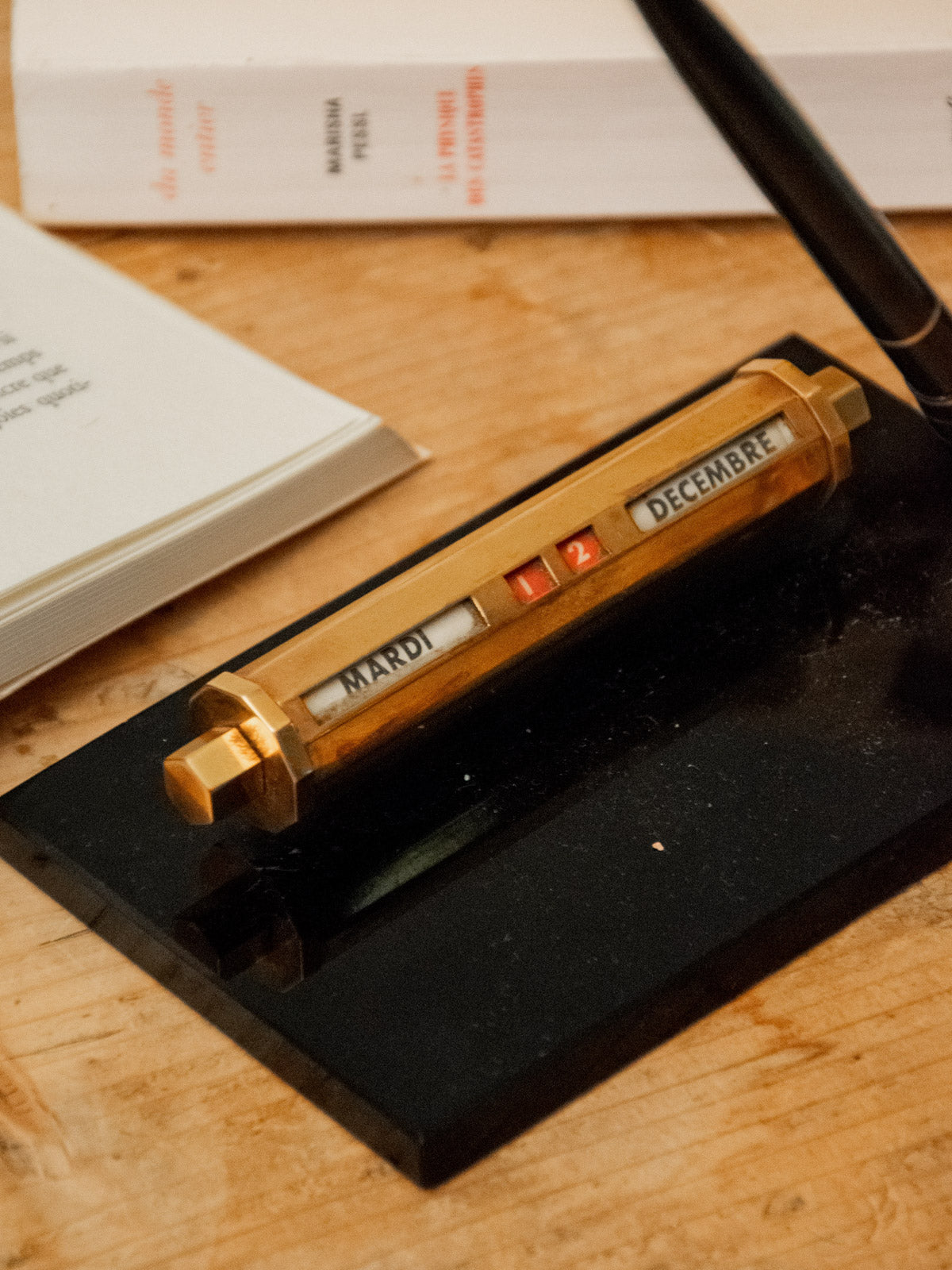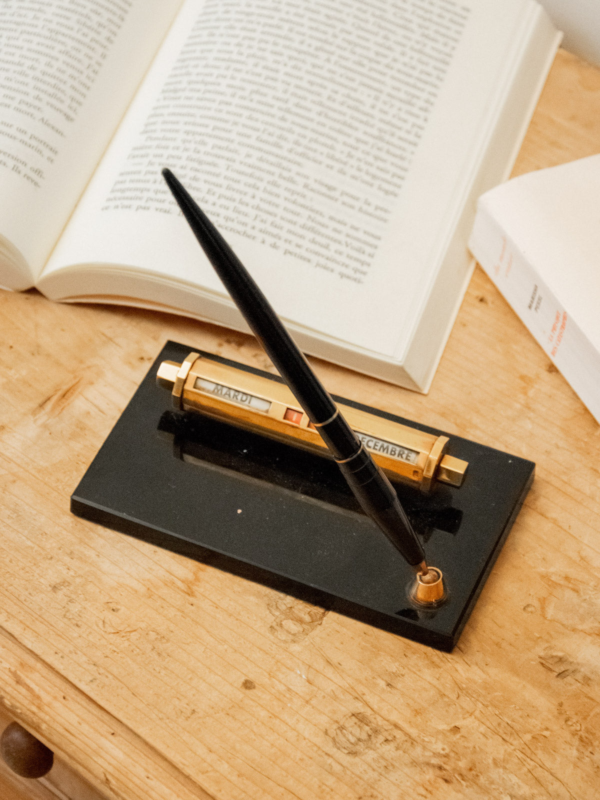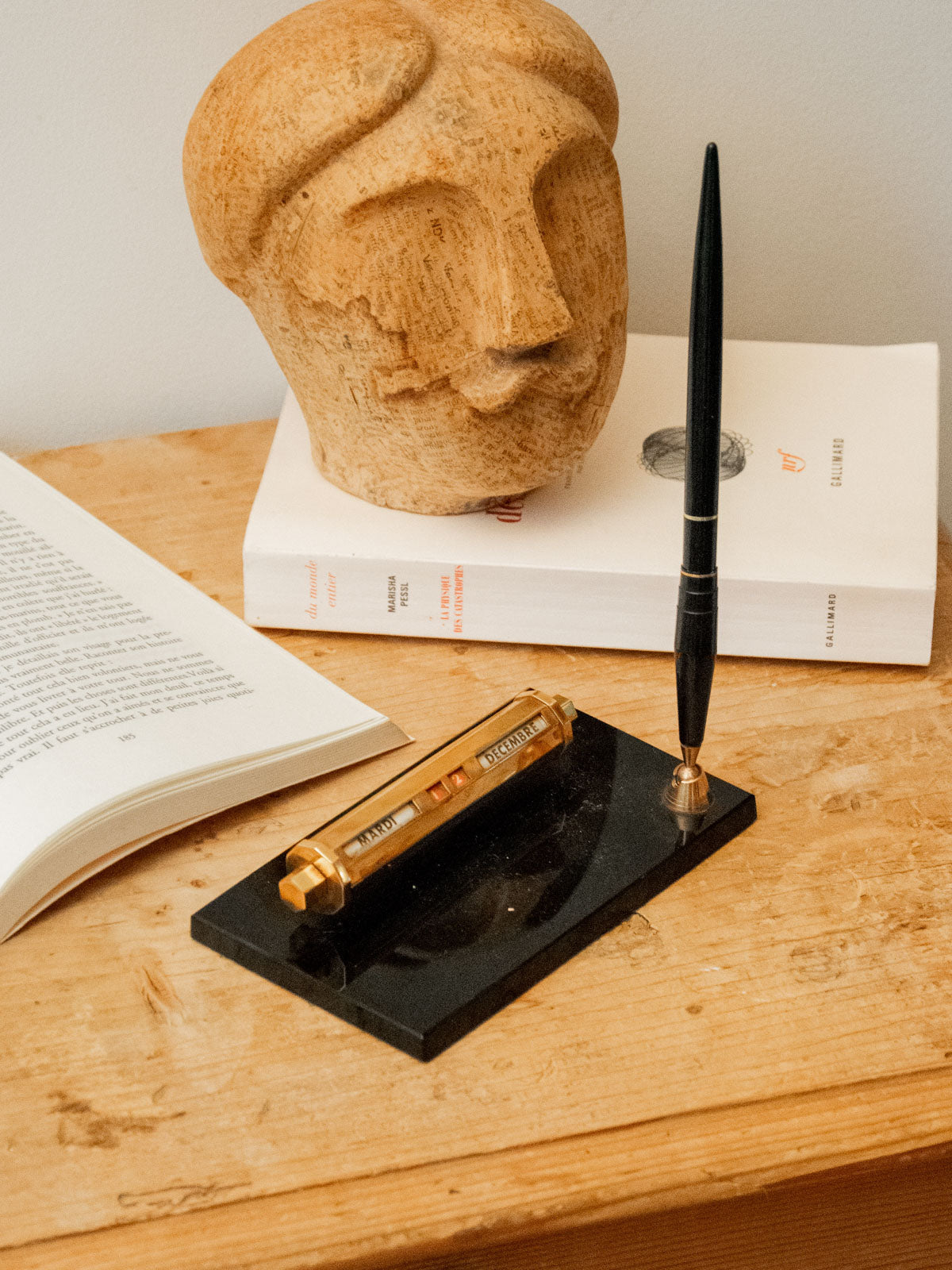 Adoptez ce calendrier perpétuel ancien au charme vintage, au format compact qui se glisse aisément dans votre décoration ou se pose délicatement sur un bureau. Son mécanisme, en état de marche, permet d'afficher la date de façon ludique et durable, mêlant utilité quotidienne et esthétisme rétro. Sa patine et sa conception d'époque apportent une jolie touche nostalgique à votre intérieur, parfaite pour un coin bureau, une bibliothèque ou comme petit cadeau d'amateur d'objets anciens.