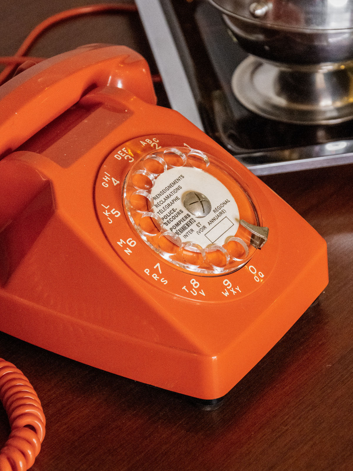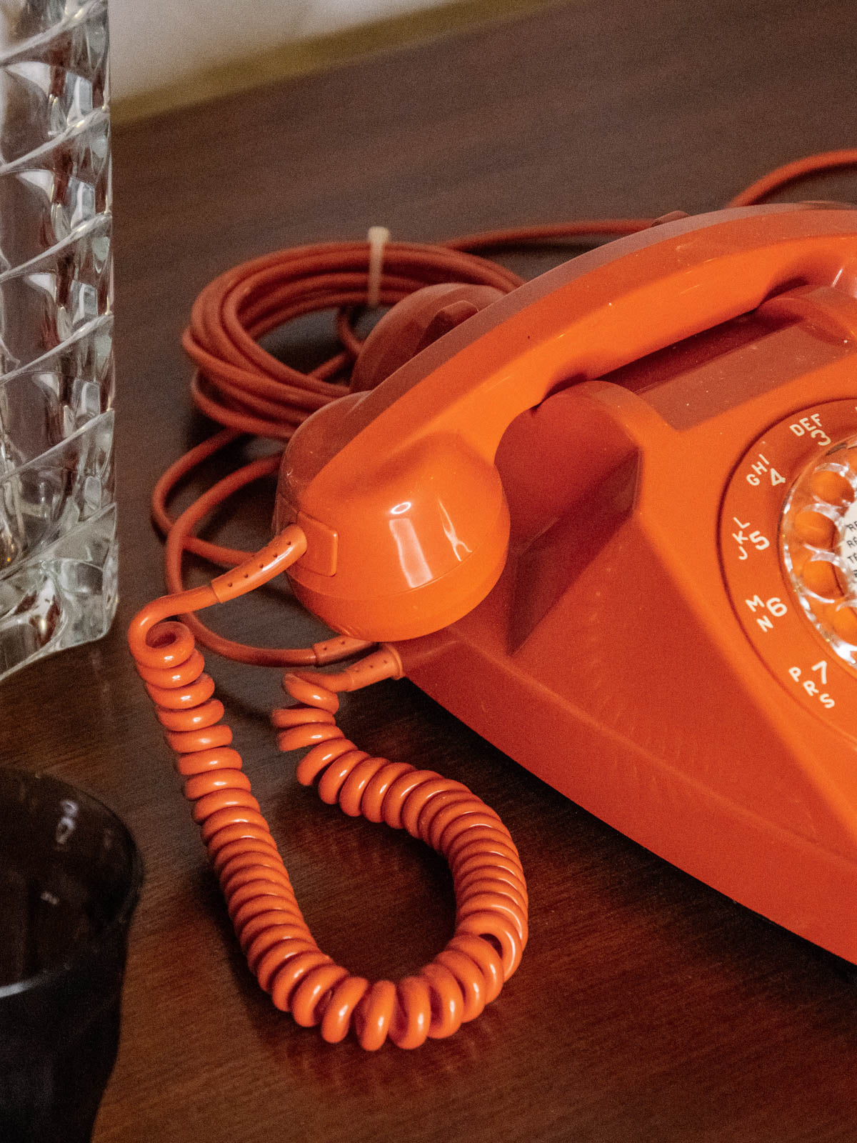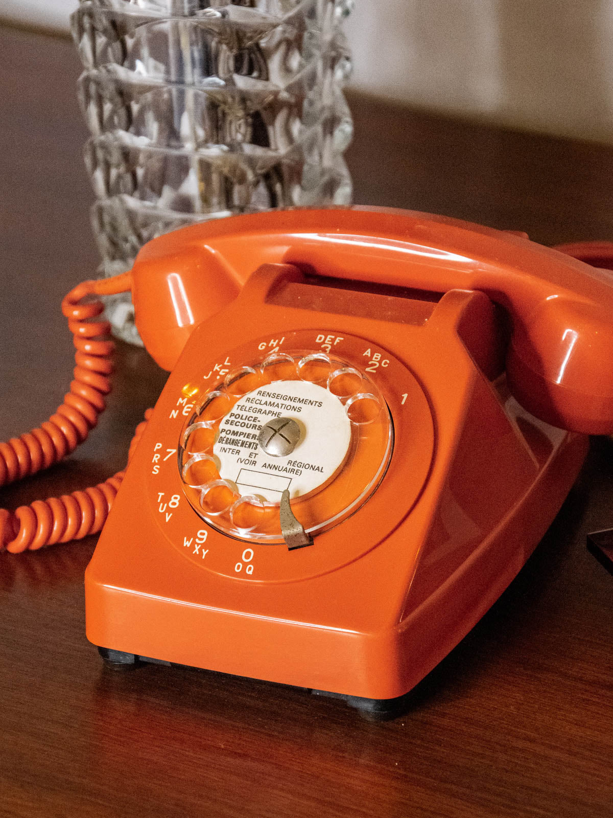 Adoptez ce téléphone orange vintage au charme rétro, doté d'un boîtier laqué qui apporte une touche pop et chaleureuse à votre intérieur. Son design graphique et ses proportions compactes en font un objet à la fois décoratif et fonctionnel, idéal pour ponctuer un bureau, une entrée ou un coin lecture d'une note colorée et nostalgique. Il invite à la conversation et à la mise en scène de votre décoration. Excellent état.