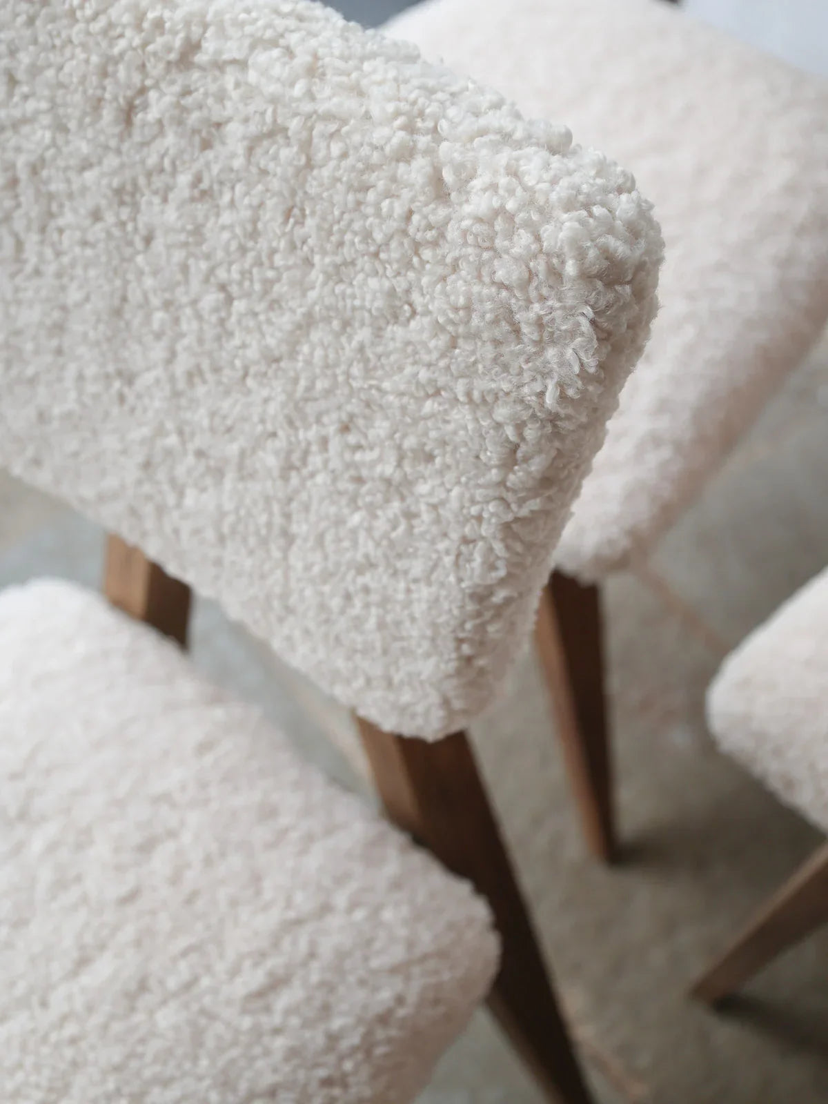 Adoptez ce lot de quatre chaises au design minimaliste des années 50, inspirées du goût de Pierre Cruege, qui allient lignes sobres et caractère vintage. Leur structure en chêne massif assure une assise stable tandis que le tissu bouclé mouton enveloppe chaque siège d'une douceur texturée. Avec un gabarit compact et des proportions étudiées, elles s'intègrent aussi bien autour d'une table de repas que dans un coin bureau. Idéales pour une ambiance chaleureuse et élégante à la fois.