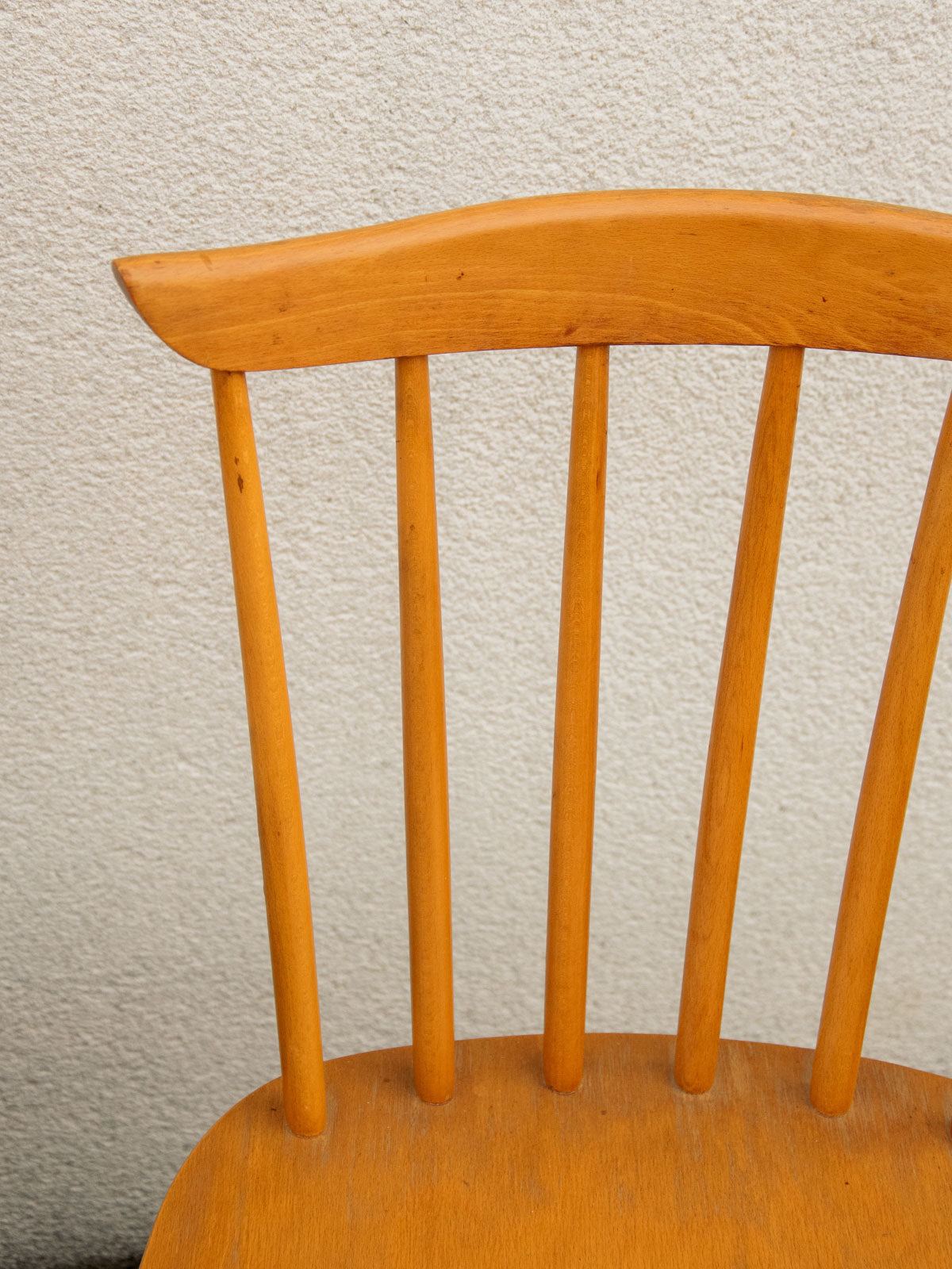 Adoptez ce lot de trois chaises à barreaux vintage en bois blond, au caractère moderniste des années 1960. Leurs lignes sobres, le dossier à barreaux verticaux et l'assise légèrement incurvée offrent un confort discret tandis que les pieds fuselés compas apportent une élégance graphique. Leurs proportions s'intègrent facilement autour d'une table scandinave ou ponctuent un salon d'une note chaleureuse et intemporelle. Idéales pour créer une atmosphère conviviale et soignée.