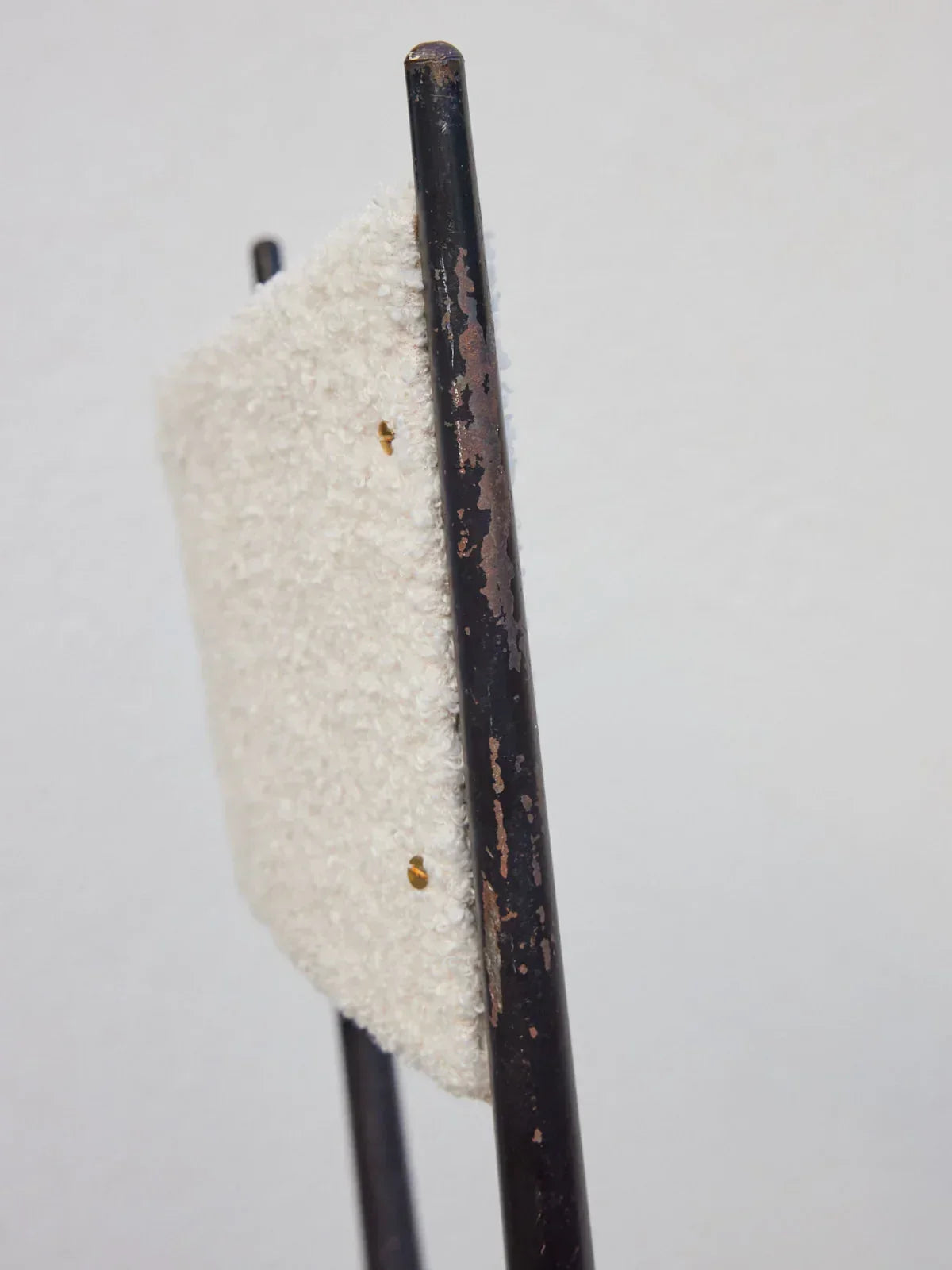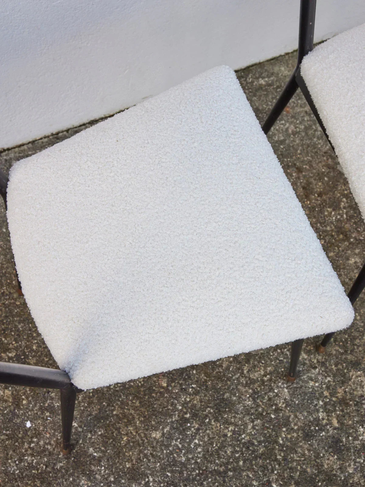 Adoptez cette paire de chaises début années 60, retapissées d'un tissu bouclette velours qui apporte une texture douce et chaleureuse à toute pièce. Leur structure en métal assure une silhouette légère et une assise stable, tandis que des proportions équilibrées s'adaptent aussi bien à une salle à manger qu'à un coin bureau ou un salon. Inspirées du style de Colette Gueden et fabriquées par l'entreprise Achille Decommère , elles expriment une élégance rétro réinventée.