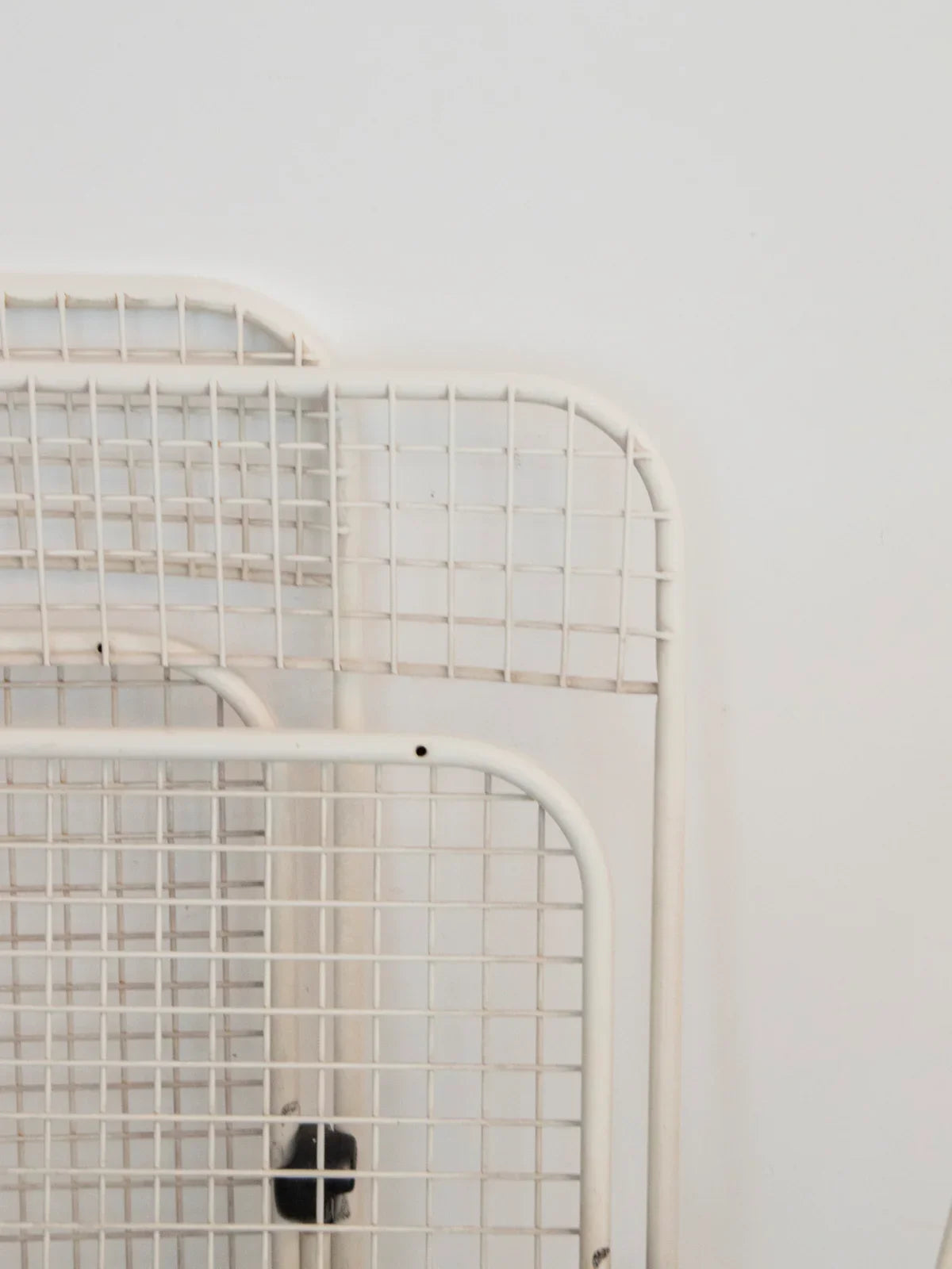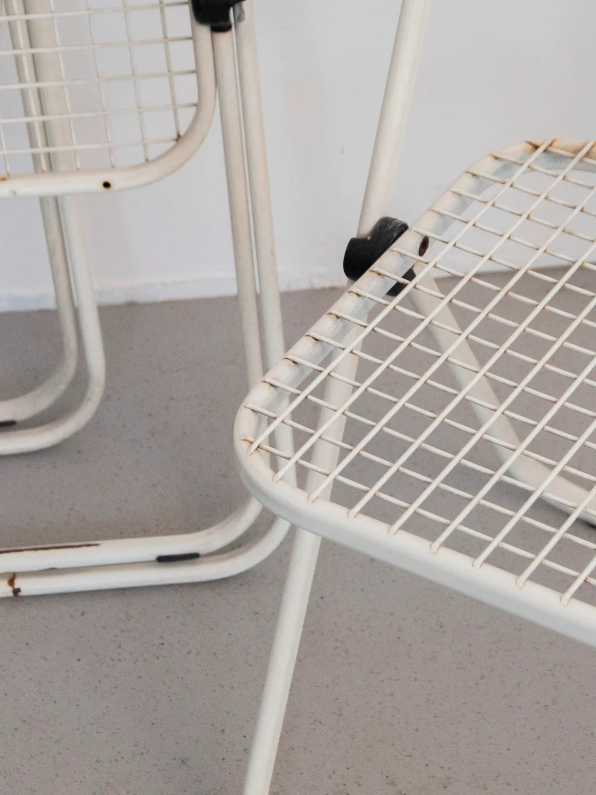 Découvrez ce lot de quatre chaises pliantes en treillis métallique blanc crème, édition Talin Vincenza Italie, qui marient solidité et élégance italienne. Leur structure robuste en métal assure une assise légère et aérée, tandis que le mécanisme pliant facilite le rangement et le déplacement selon les besoins. Adaptées à une terrasse, une cuisine ou un coin repas convivial, elles apportent une note bistro raffinée et une présence graphique discrète. Quelques traces de rouille présentes.