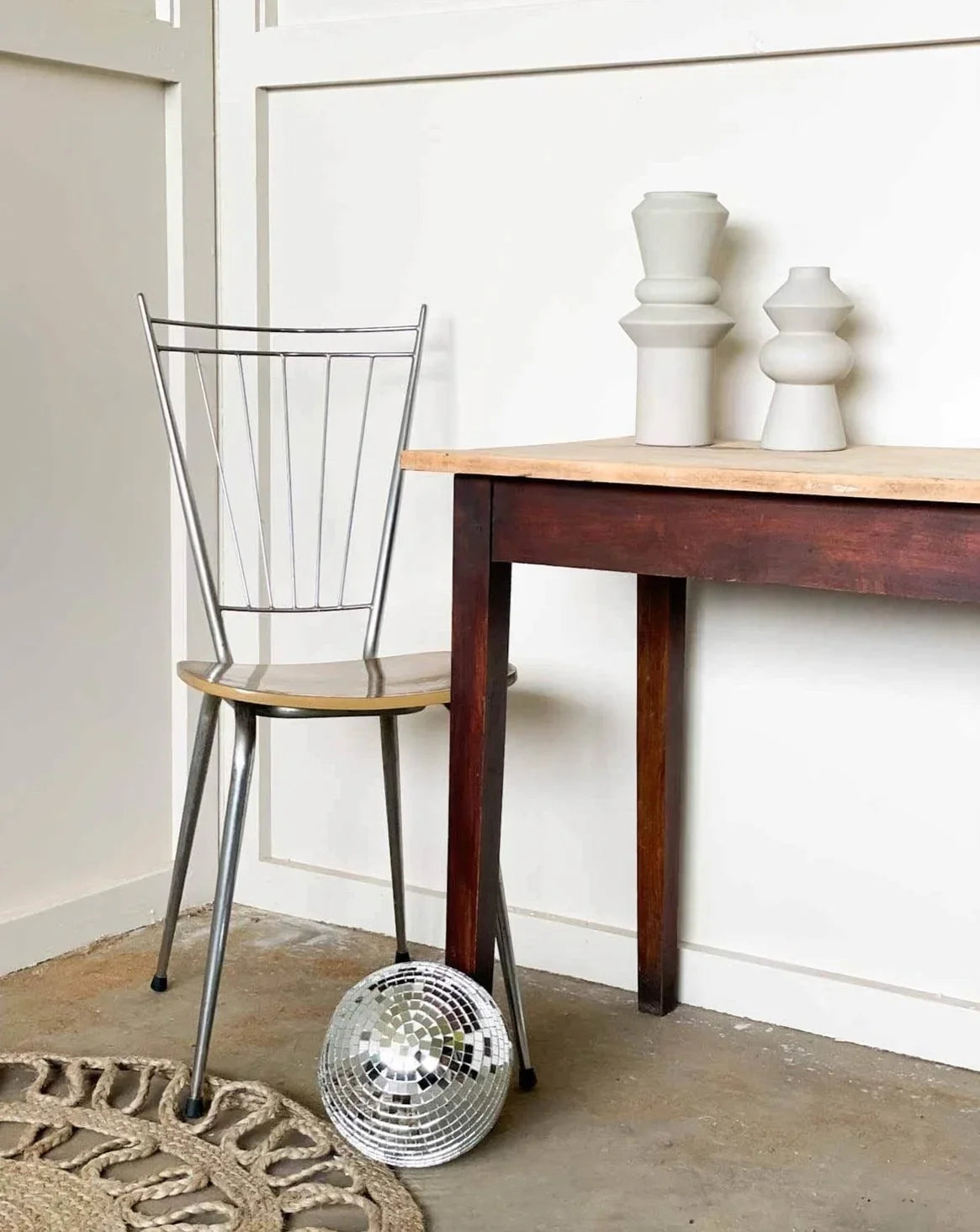 Nous avons craqué pour cette chaise en métal chromé et à l'assise en formica bois clair ! Elle apporte avec ses lignes fines, une touche design à votre intérieur. Autour d'une table, dans la chambre ou devant un bureau, elle trouve sa place partout et feront leur petit effet ! Vendues à l'unité et disponibles en cinq exemplaires.