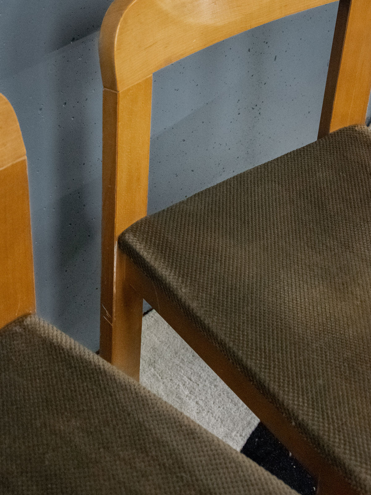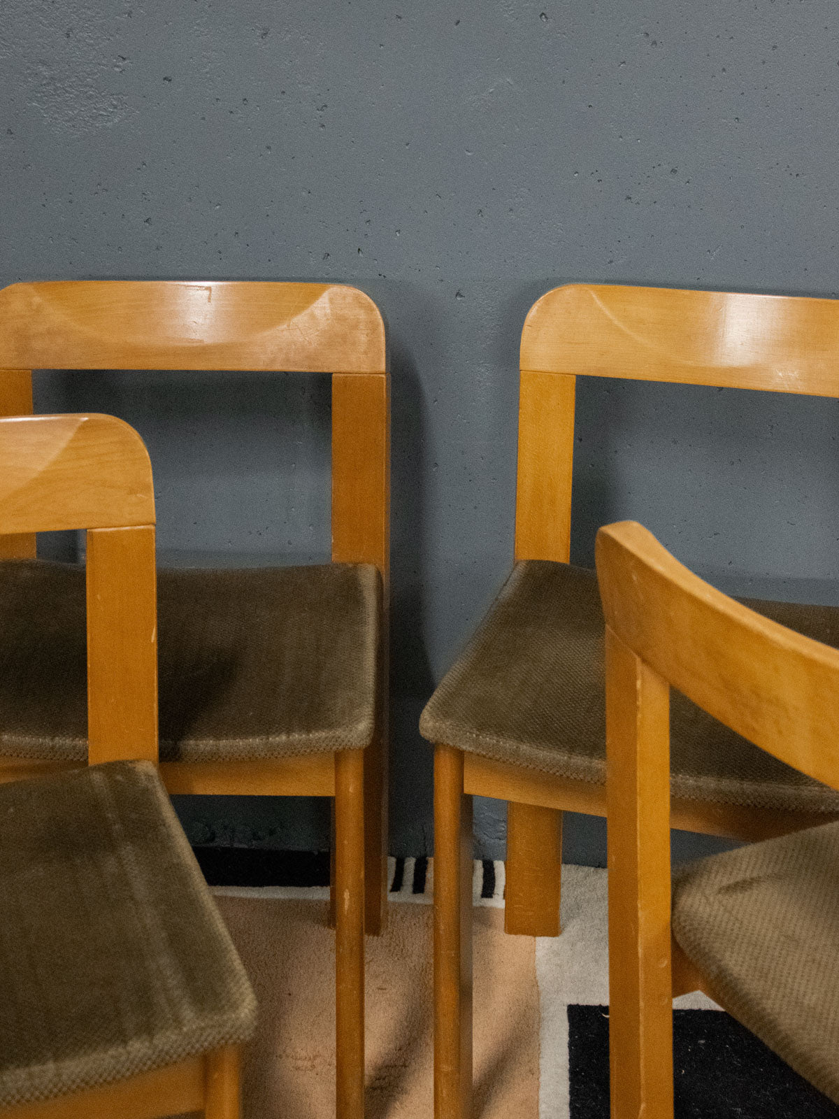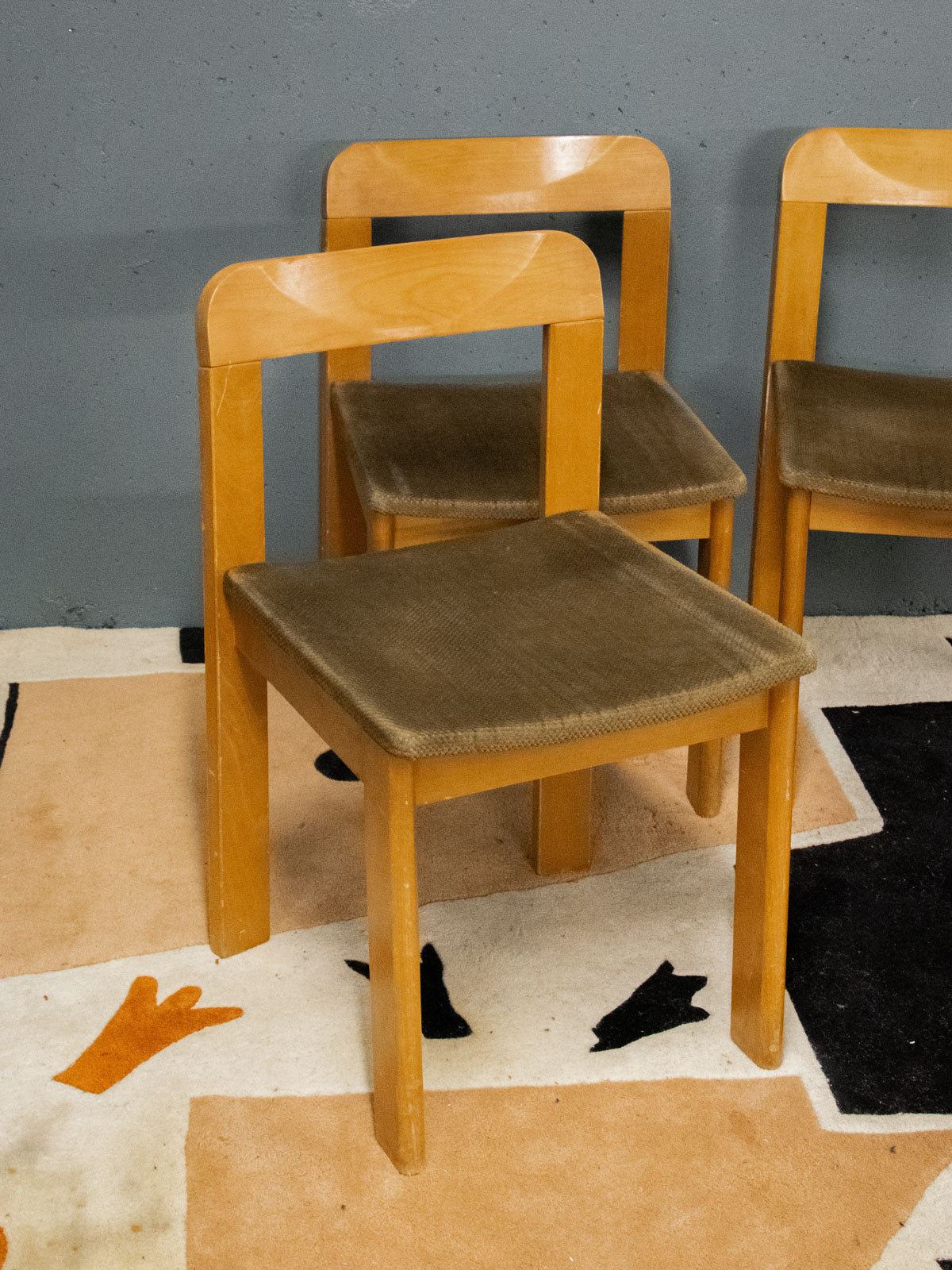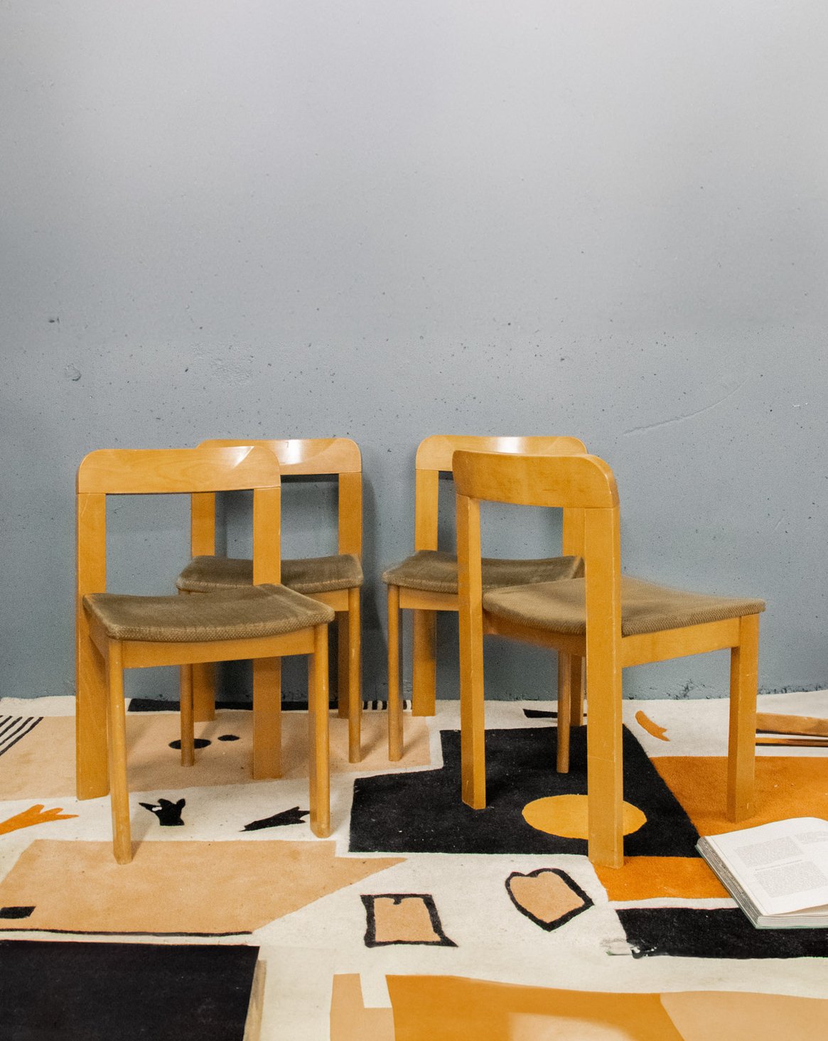 Adoptez ce lot de quatre chaises en orme au style scandinave des années 60, avec dossier incurvé et assise en velours marron clair qui allient élégance et confort. La structure en bois blond souligne des lignes épurées tandis que le velours patiné apporte une chaleur douce, adaptées aux proportions compactes d'une salle à manger ou d'un coin repas contemporain. Pratiques et graphiques, elles invitent à une ambiance sobre et accueillante. Quelques marques d'usage qui font leur authenticité.