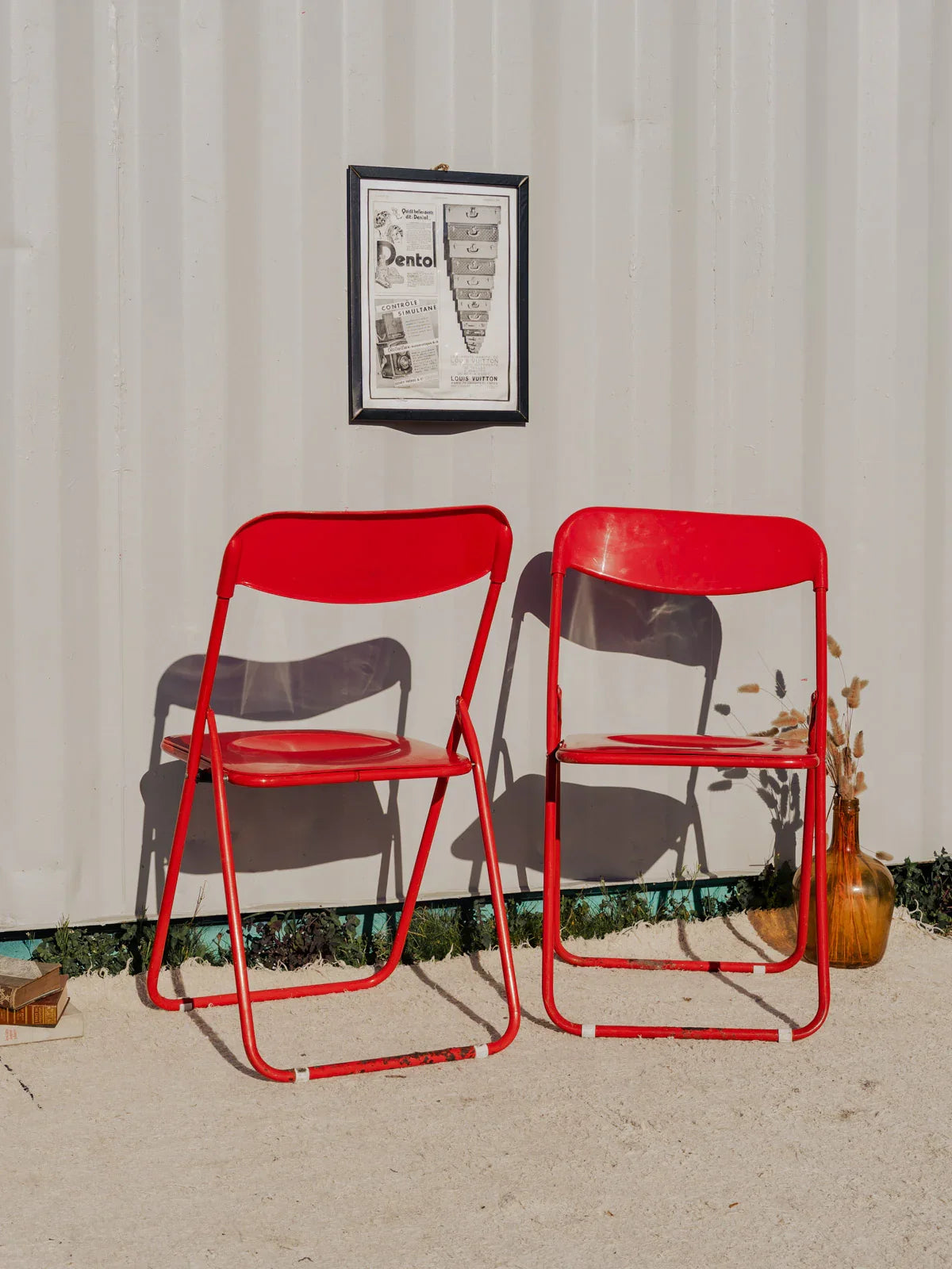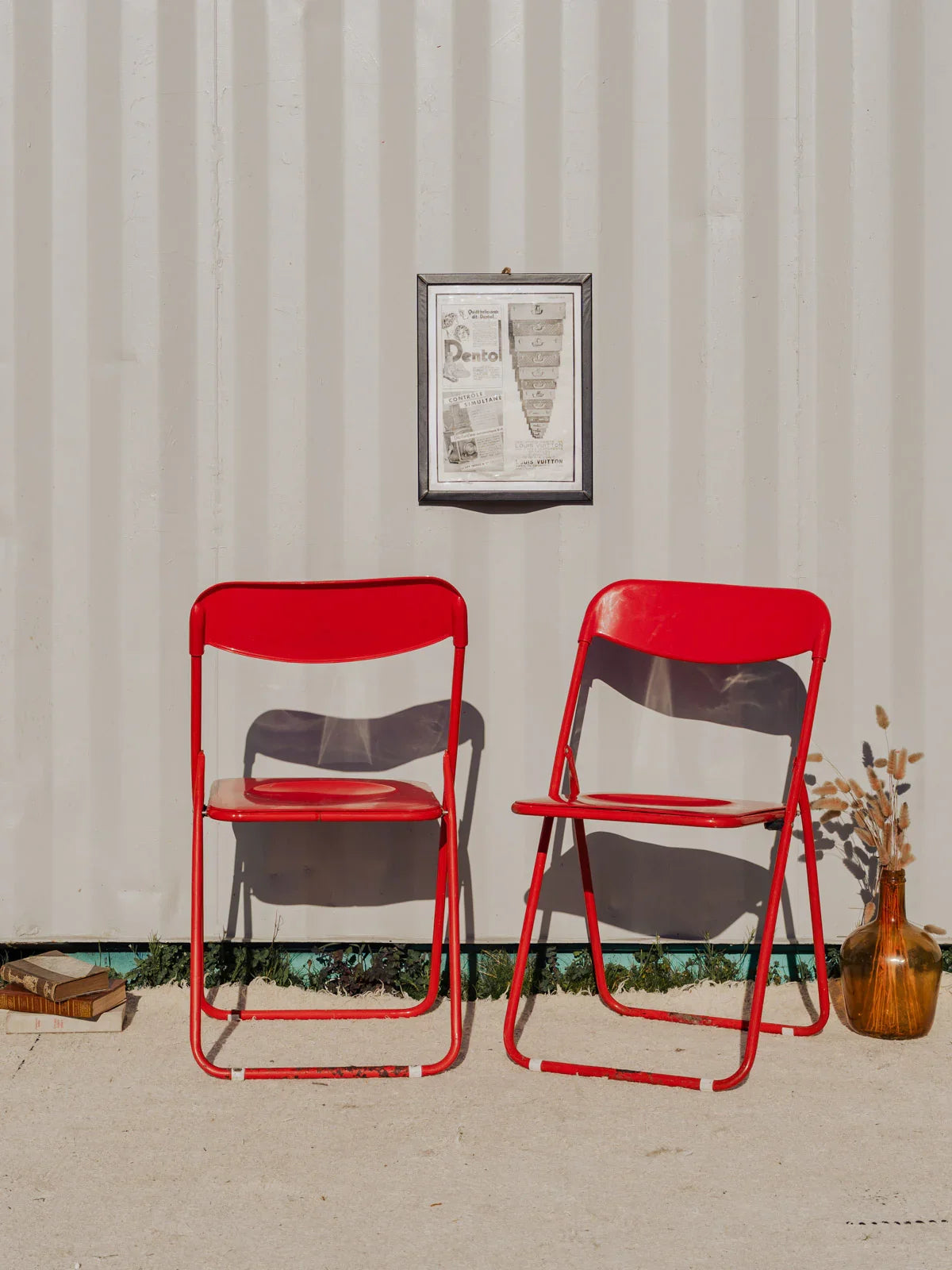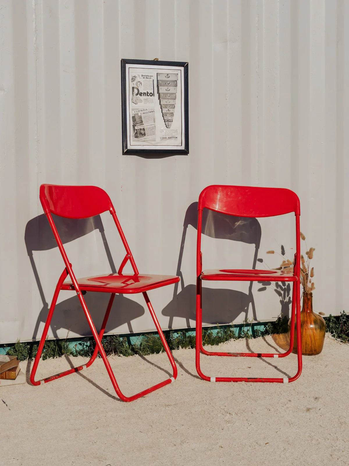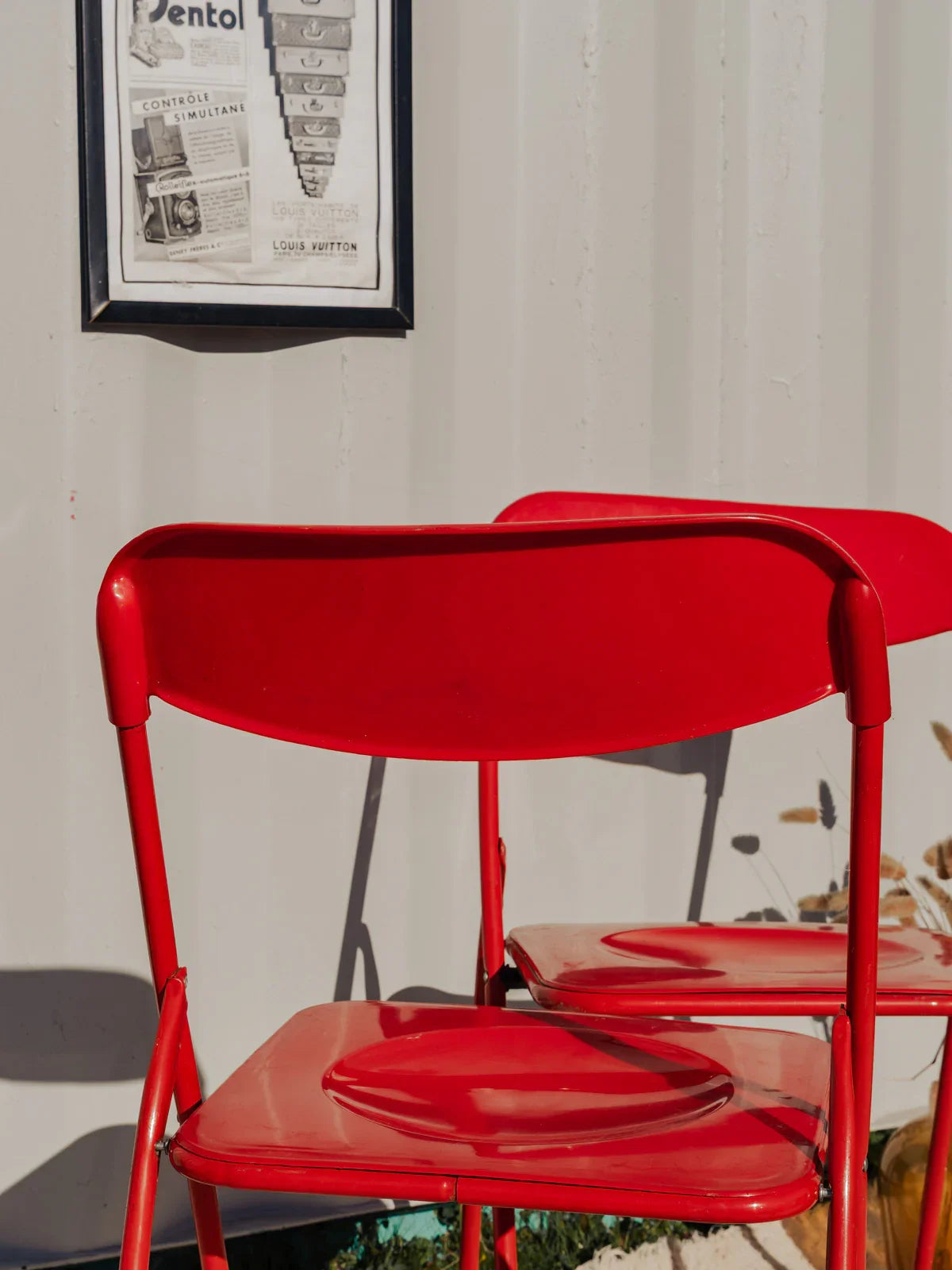 Adoptez cette paire de chaises pliantes en plastique rouge qui apportent une touche vive et conviviale à vos repas ou moments en extérieur. Leur coque légère et résistante facilite le transport et le déploiement pour un dîner improvisé, une terrasse ou un coin bureau, tandis que leurs proportions permettent un rangement malin lorsque l'espace se resserre. Quelques traces du temps présentes. Vendu en lot de 2 chaises, deux sont disponibles.