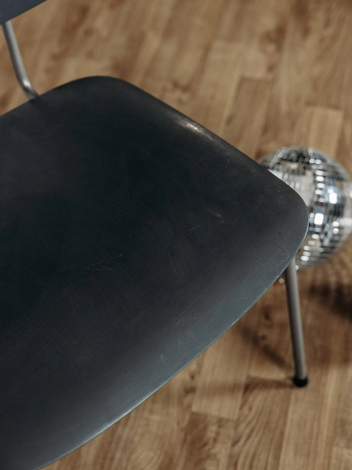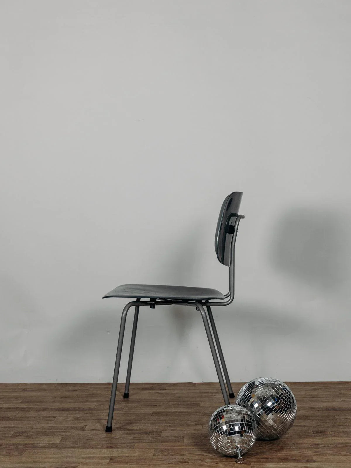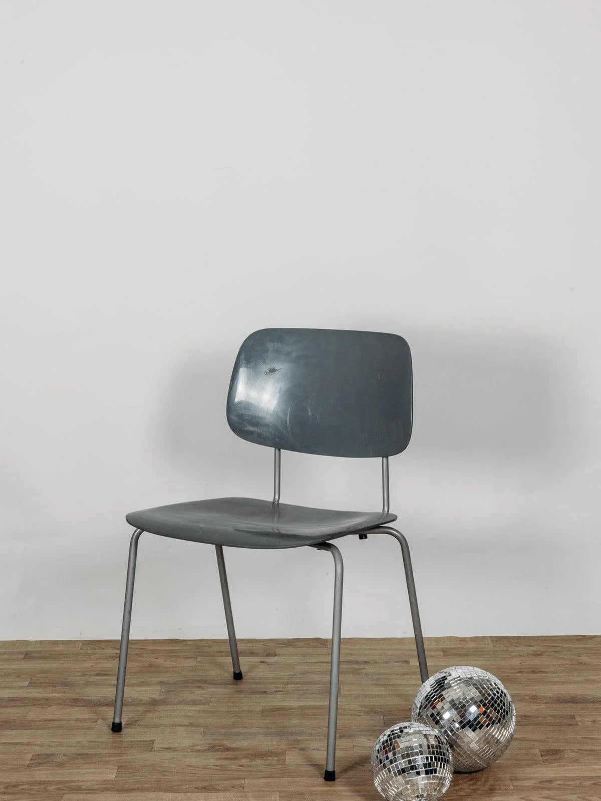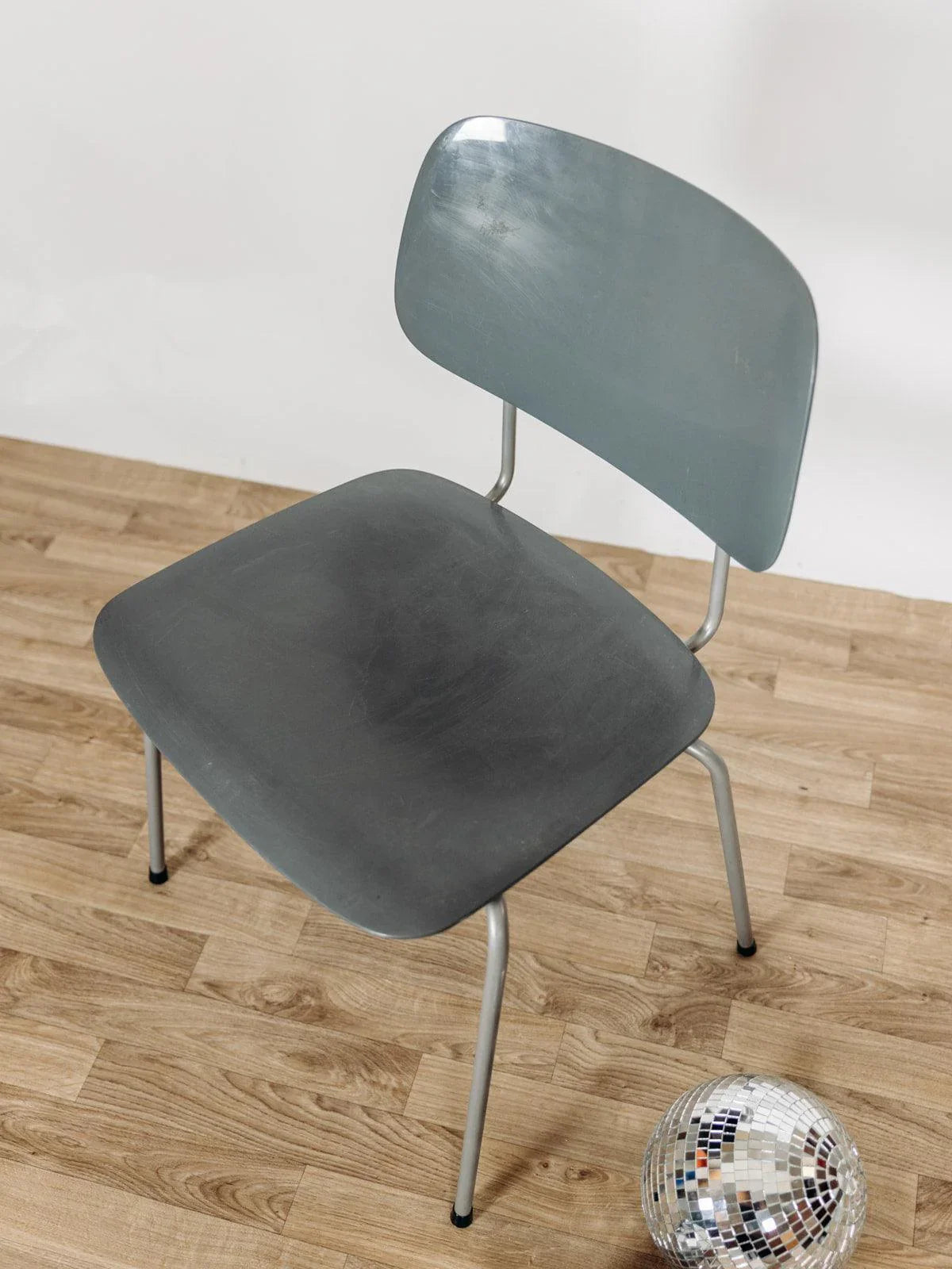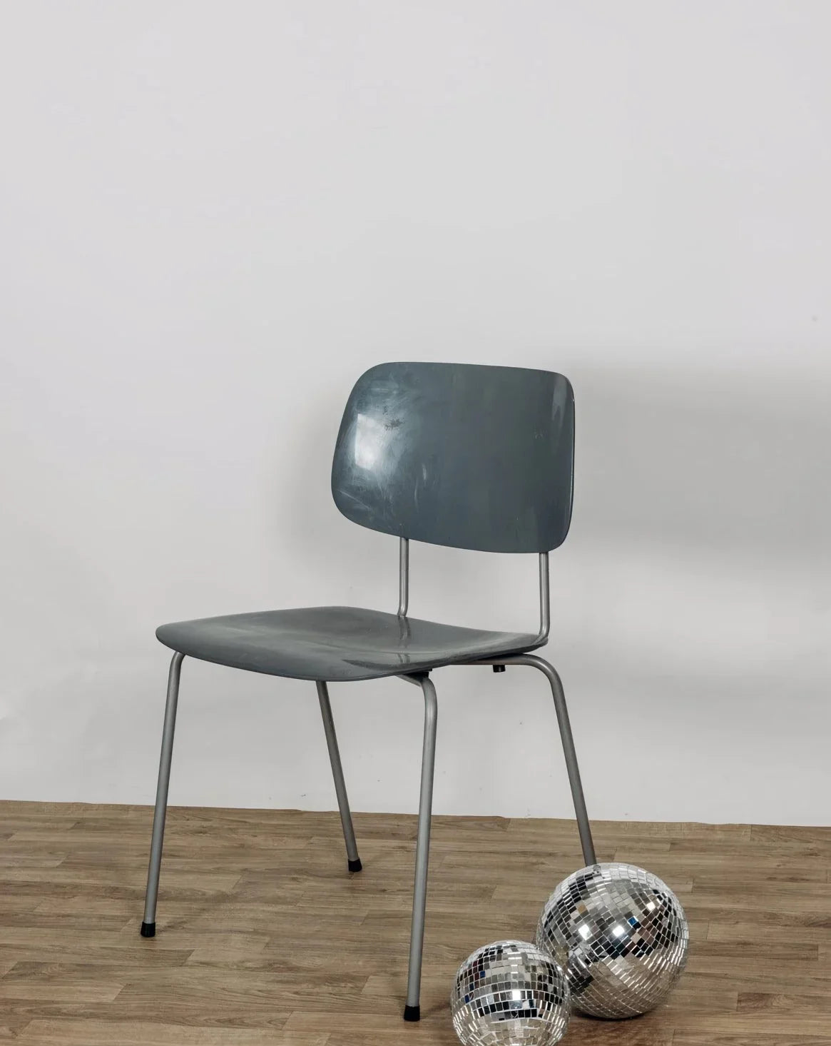 Diana est une chaise typique des années 70 avec un piètement en métal gris et des galettes en plexi grise au niveau de l'assise et du dossier. Elle est parfaite en chaise de bureau ou autour d'une table de repas.