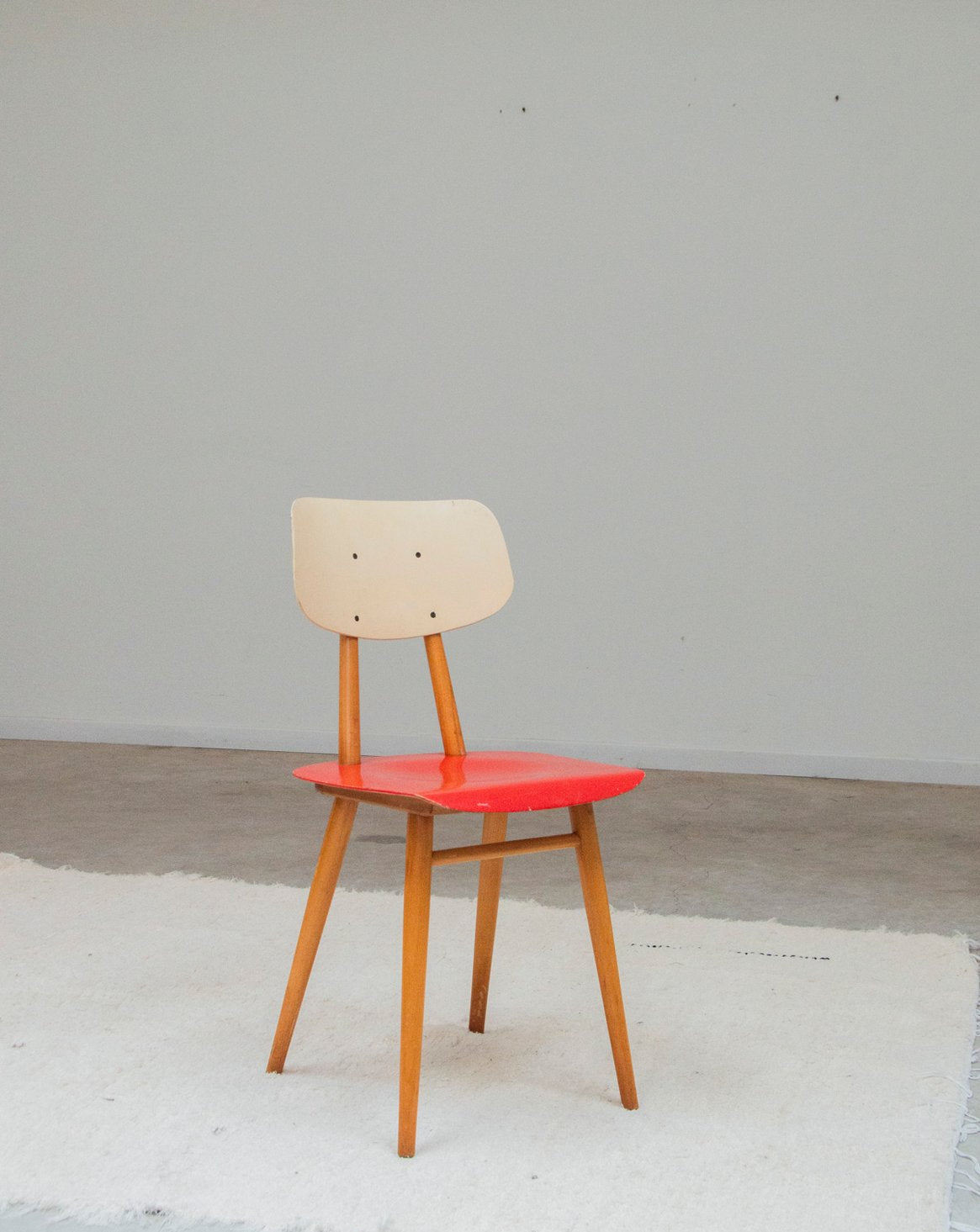 Adoptez cette chaise en bois au pied compas haut, peinte d'un rouge profond qui apporte une touche audacieuse et chaleureuse à votre intérieur. Sa silhouette élancée et sa haute assise offrent des proportions équilibrées, parfaites pour un coin repas, un bureau ou un espace de lecture. Le bois peint souligne son caractère original tout en restant sobre et graphique, invitant à une décoration vintage contemporaine. Quelques marques d'usage qui font son authenticité.
