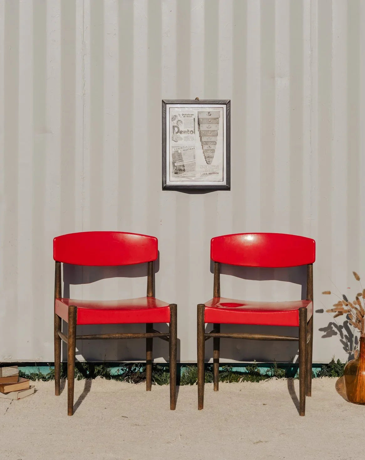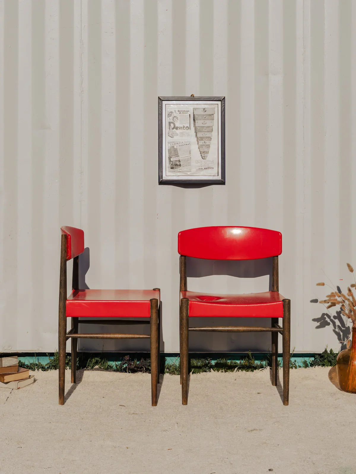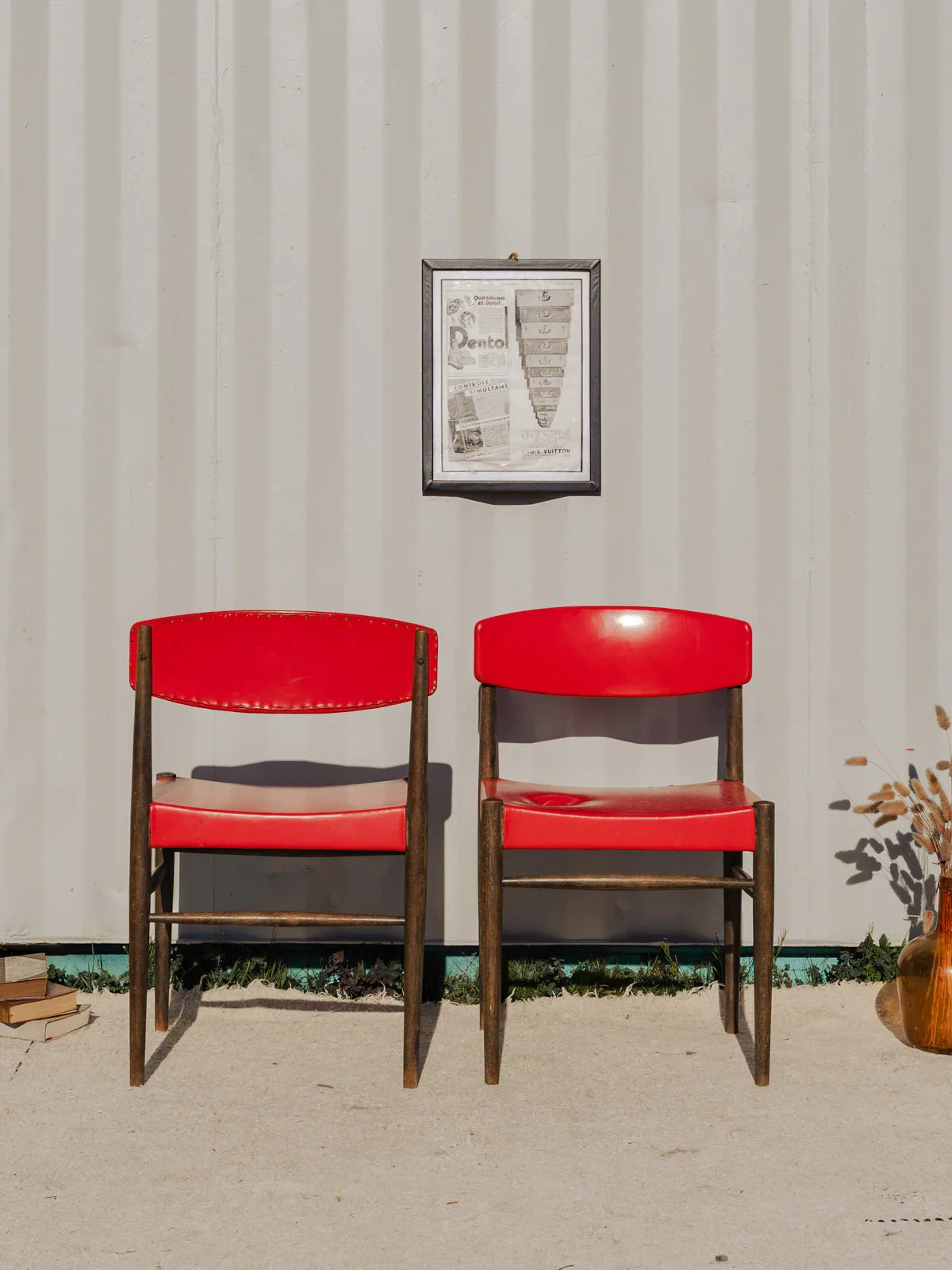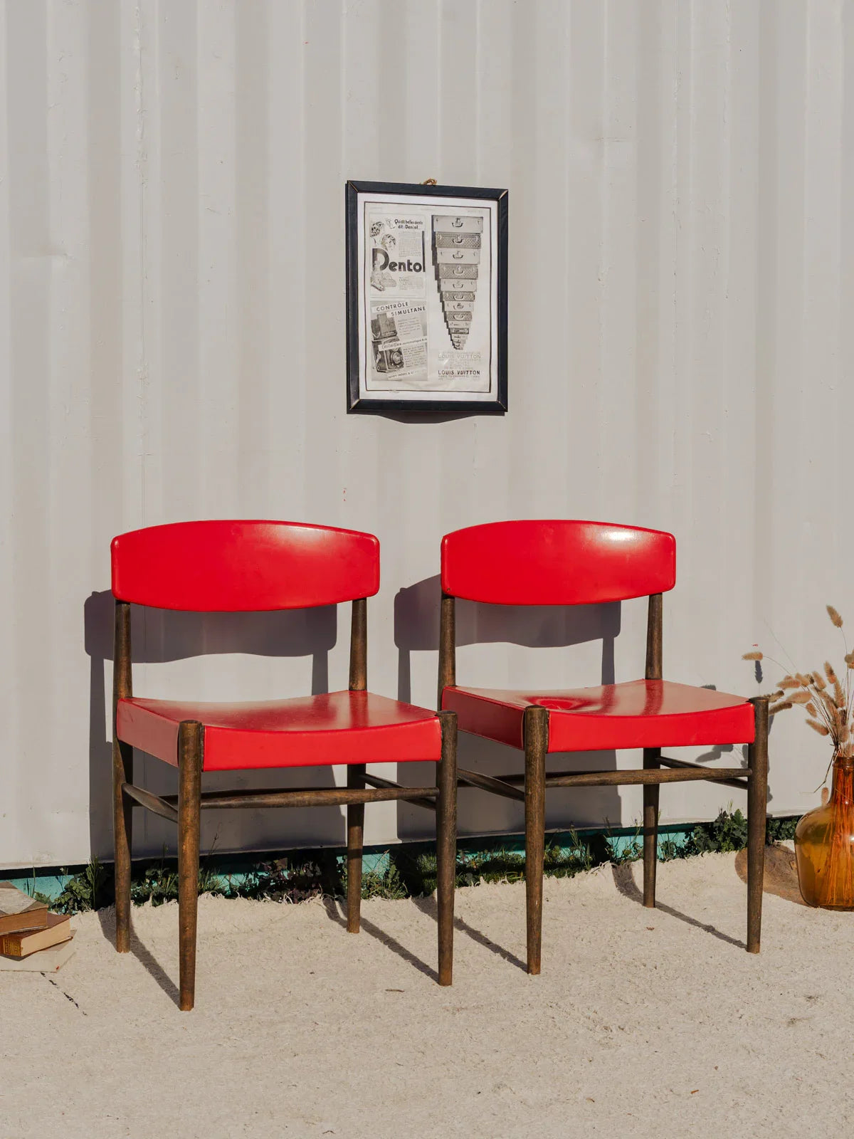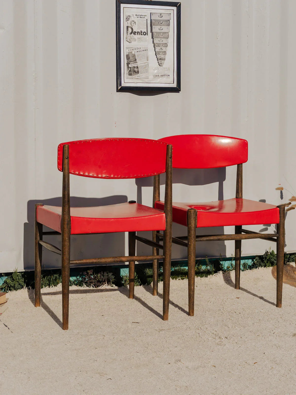 Adoptez cette paire de chaises en simili cuir rouge, dont le dossier et l'assise offrent un confort immédiat, posées sur une structure en bois aux lignes sobres. Leurs proportions et l'assise accueillante les rendent parfaites pour une salle à manger intimiste ou un coin repas contemporain, apportant une touche de couleur chaleureuse. Vendues par paire et disponibles en trois exemplaires, elles s'intègrent aisément dans différents espaces. Quelques traces du temps présentes. Vendues en lot de 2 chaises, 3 lot sont disponibles.