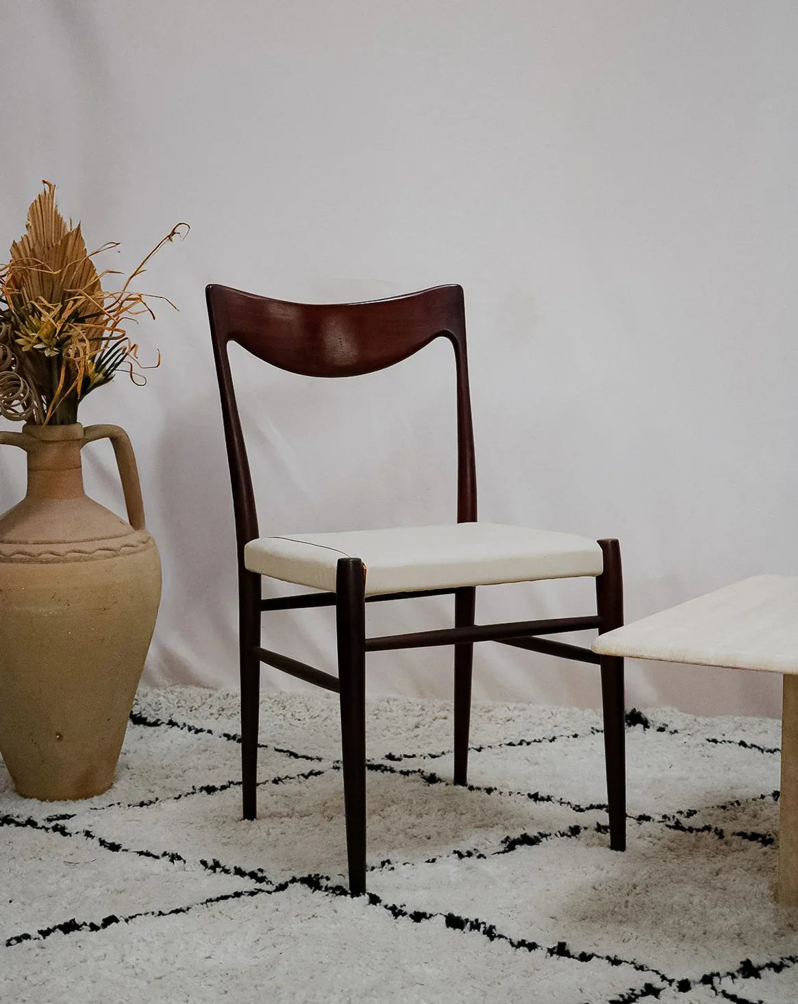 Adoptez cette chaise scandinave modèle Bambi signée Gustav Bahus pour les éditions Rastad, une pièce en teck massif qui incarne la simplicité élégante du design nordique. Restaurée par une professionnelle, elle affiche une finition soignée, une assise confortable et des proportions étudiées, parfaitement adaptée à une salle à manger conviviale ou un coin bureau au style épuré. Un défaut de teinte sur le dossier.