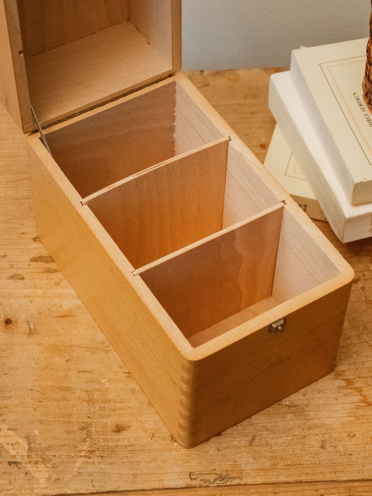 Invitez la simplicité organisée avec cette boîte d’archives ancienne en bois clair, au grain chaleureux et aux lignes sobres. Conçue pour le classement de fiches et documents au format courant, sa hauteur généreuse permet d'accueillir plusieurs séries et facilite la consultation au quotidien, idéale pour bureau, atelier ou coin lecture. Sa construction robuste et son esthétisme discret apportent une élégance fonctionnelle qui harmonise tout espace de travail. Vendue à l'unité, deux quantités sont disponibles.