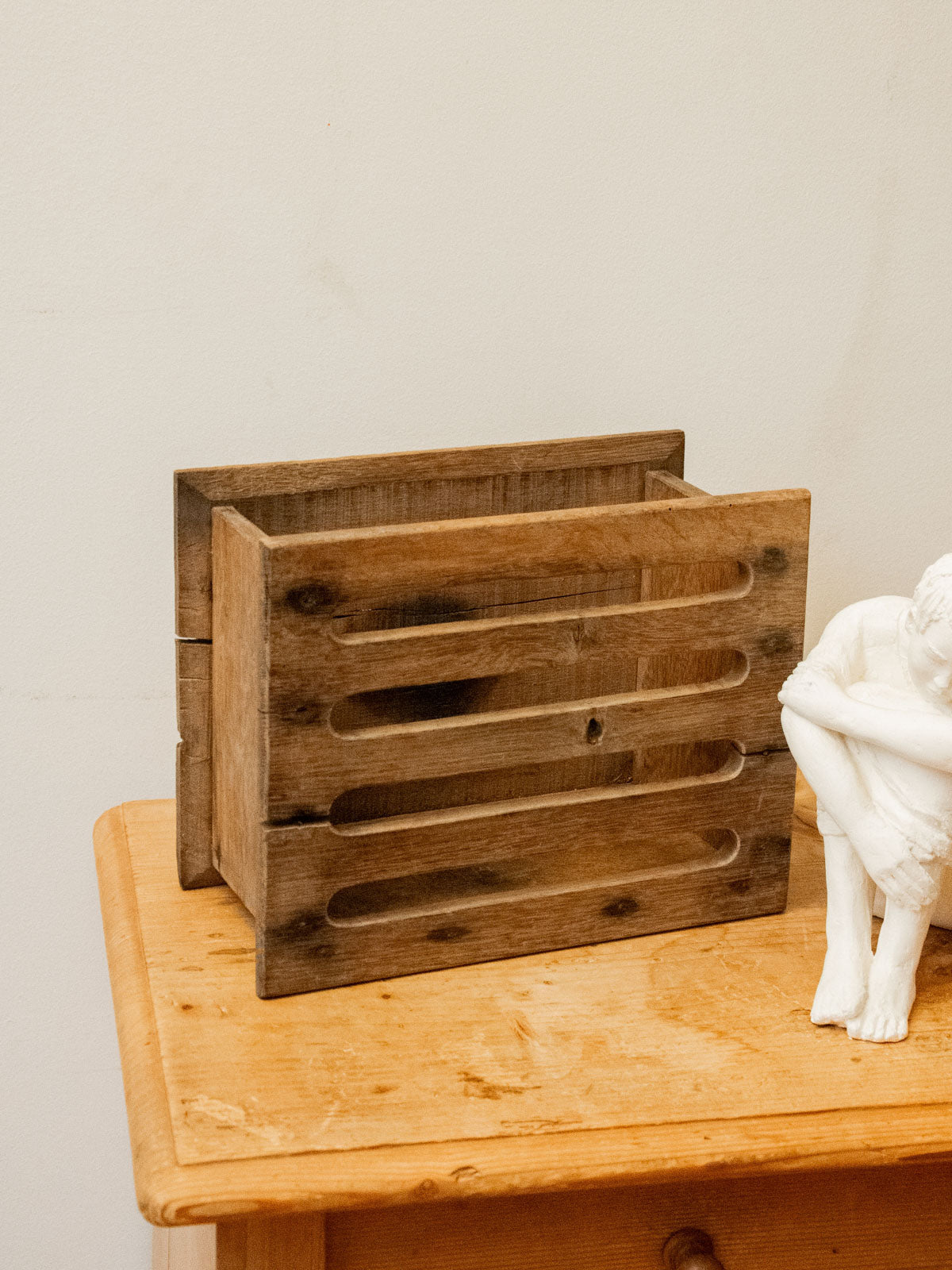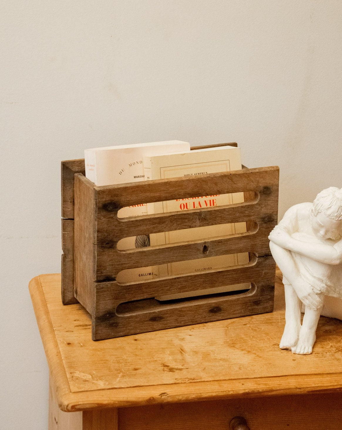 Adoptez cette chauffeuse ancienne en bois, conçue comme un petit présentoir ou une caisse d'appoint au charme rétro; sa silhouette compacte accueille revues, courriers et petits objets du quotidien tandis que la patine naturelle du bois lui confère une chaleur et une authenticité discrètes. Idéale sur une console, une étagère ou à côté d'un canapé, elle organise et décore sans imposer. Compacte et pratique, elle s'intègre facilement aux ambiances contemporaines ou vintage.