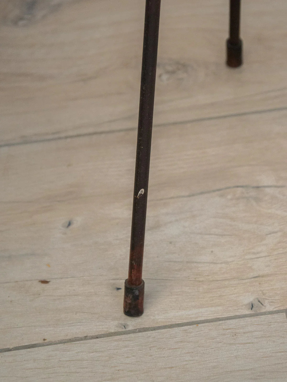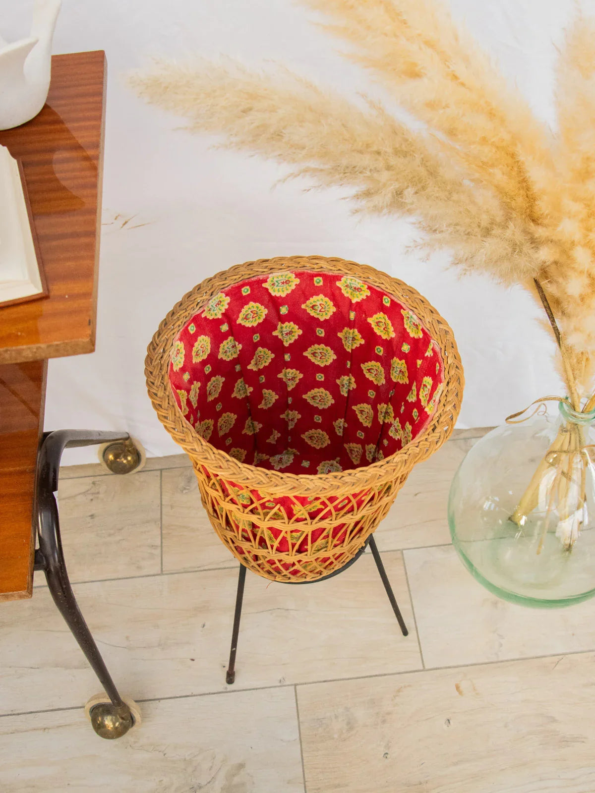 Ajoutez ce panier à laine au coloris rouge orné de fleurs jaunes, mêlant osier tressé et textile pour une silhouette chaleureuse et structurée. Son couvercle protège vos pelotes et son piètement en métal noir l'élève avec élégance, facilitant le nettoyage et apportant une touche contemporaine. Assez généreux pour ranger plusieurs projets tricot, il s'intègre autant dans un atelier que dans un coin salon, invitant à la détente et à la créativité. Un petit ornement cassé et traces du temps sur son piètement.