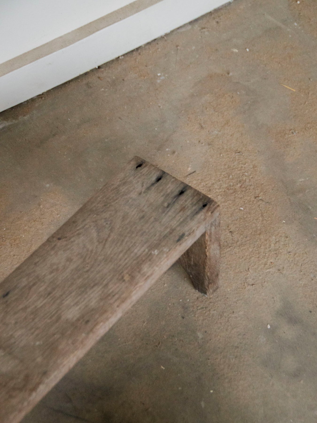 Adoptez ce petit banc bas en bois sombre aux nuances grises, issu d'un ancien banc d'église, dont la patine discrète raconte une histoire chaleureuse. Son gabarit long et étroit, associé à une assise très basse, le rend idéal pour un hall, au pied d'un lit ou comme banc d'appoint, apportant une ligne basse et sculpturale à votre intérieur. Le pied latéral lui donne un caractère singulier et sa teinte sobre installe une ambiance cérémonieuse et accueillante.