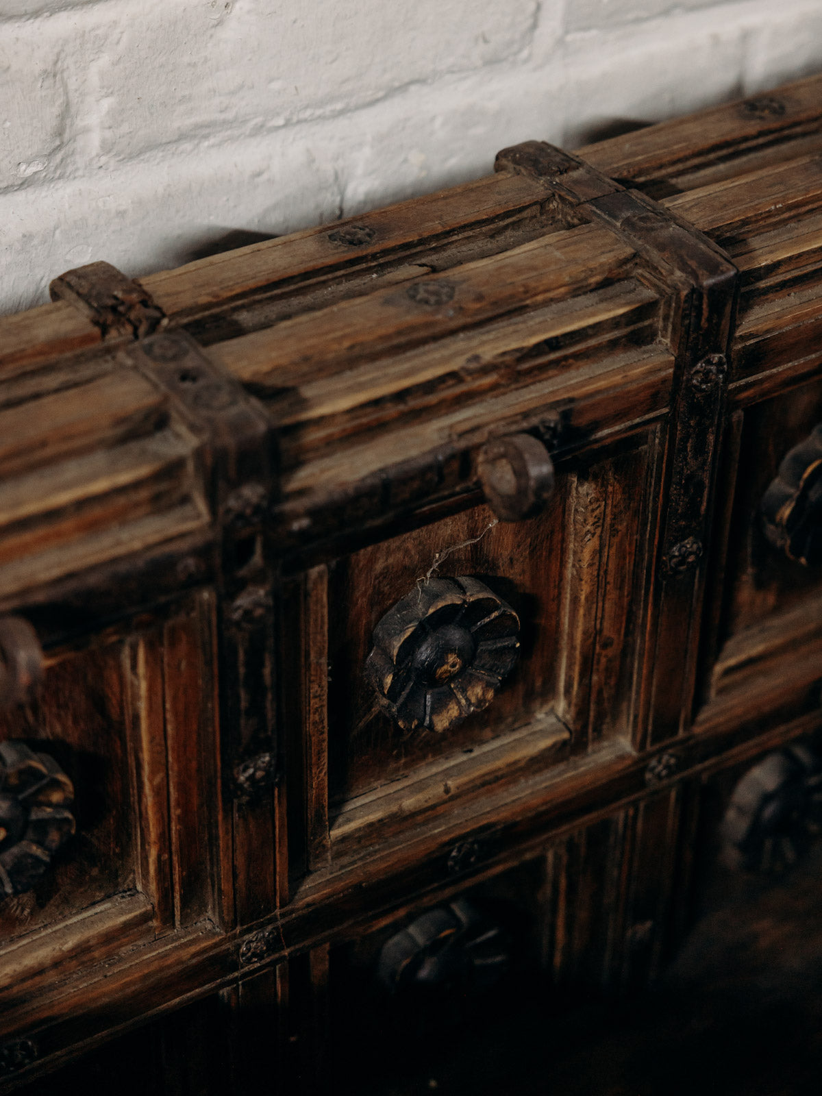 Adoptez ce banc indien de mariage en bois sculpté foncé, dont la présence imposante évoque la richesse des cérémonies traditionnelles et invite à la contemplation. Son assise généreuse accueille confortablement deux personnes, tandis qu'une petite trappe intégrée offre un rangement discret pour objets précieux. La sculpture artisanale, les détails travaillés et la patine sombre donnent un style singulier, idéal pour apporter une note d'Orient chaleureuse à un salon, une entrée ou un coin lecture. Structure très lourde et stable.
