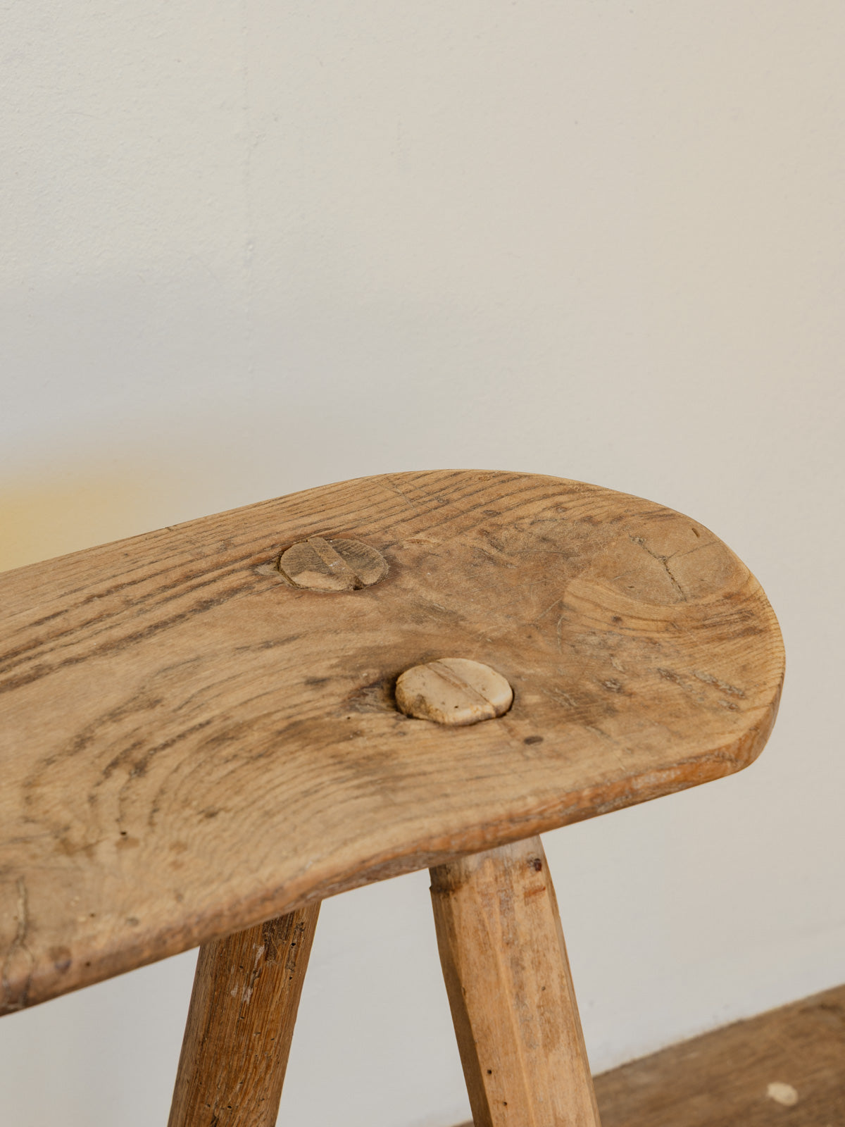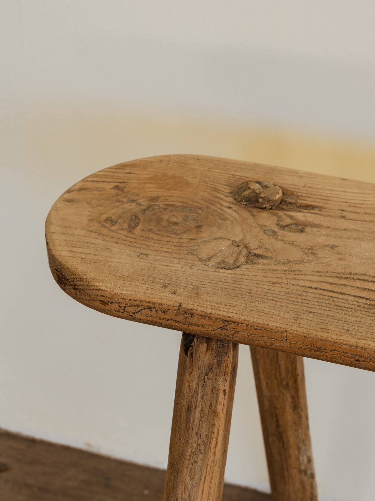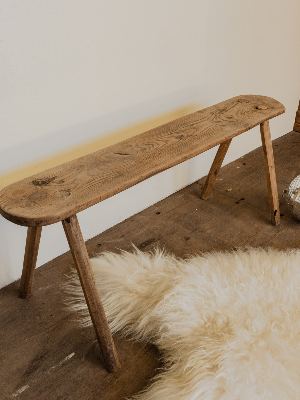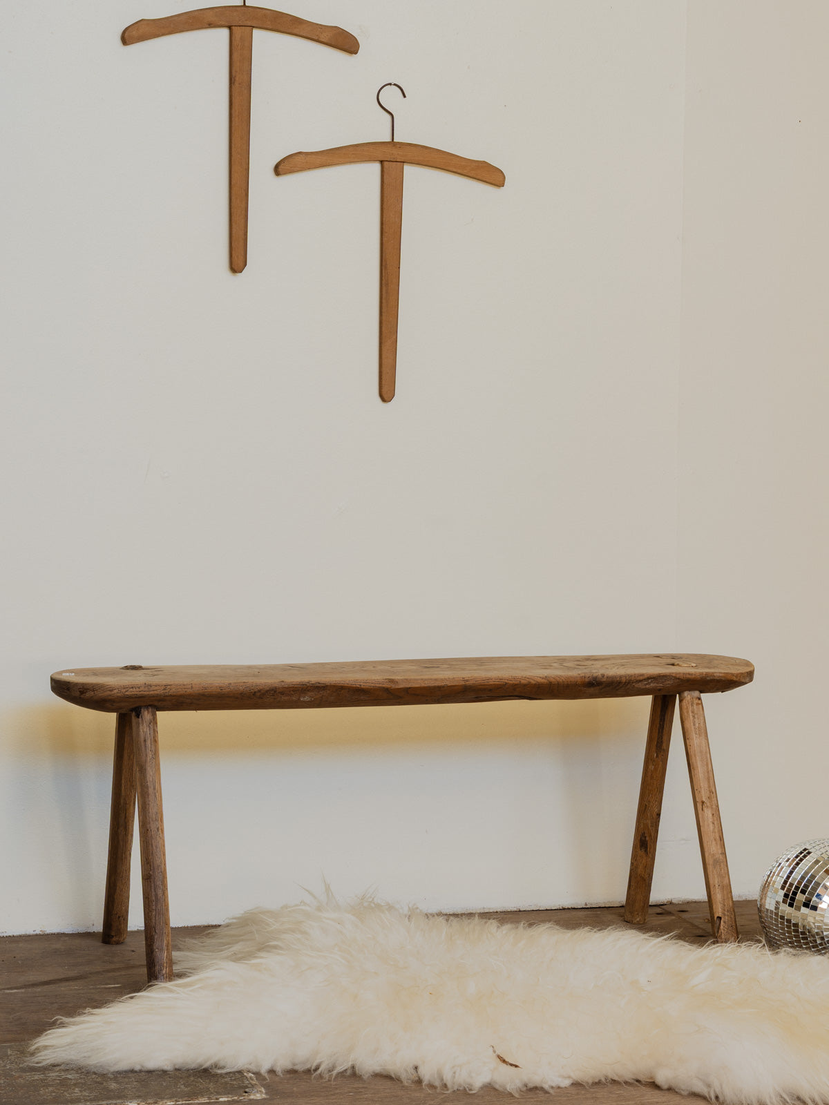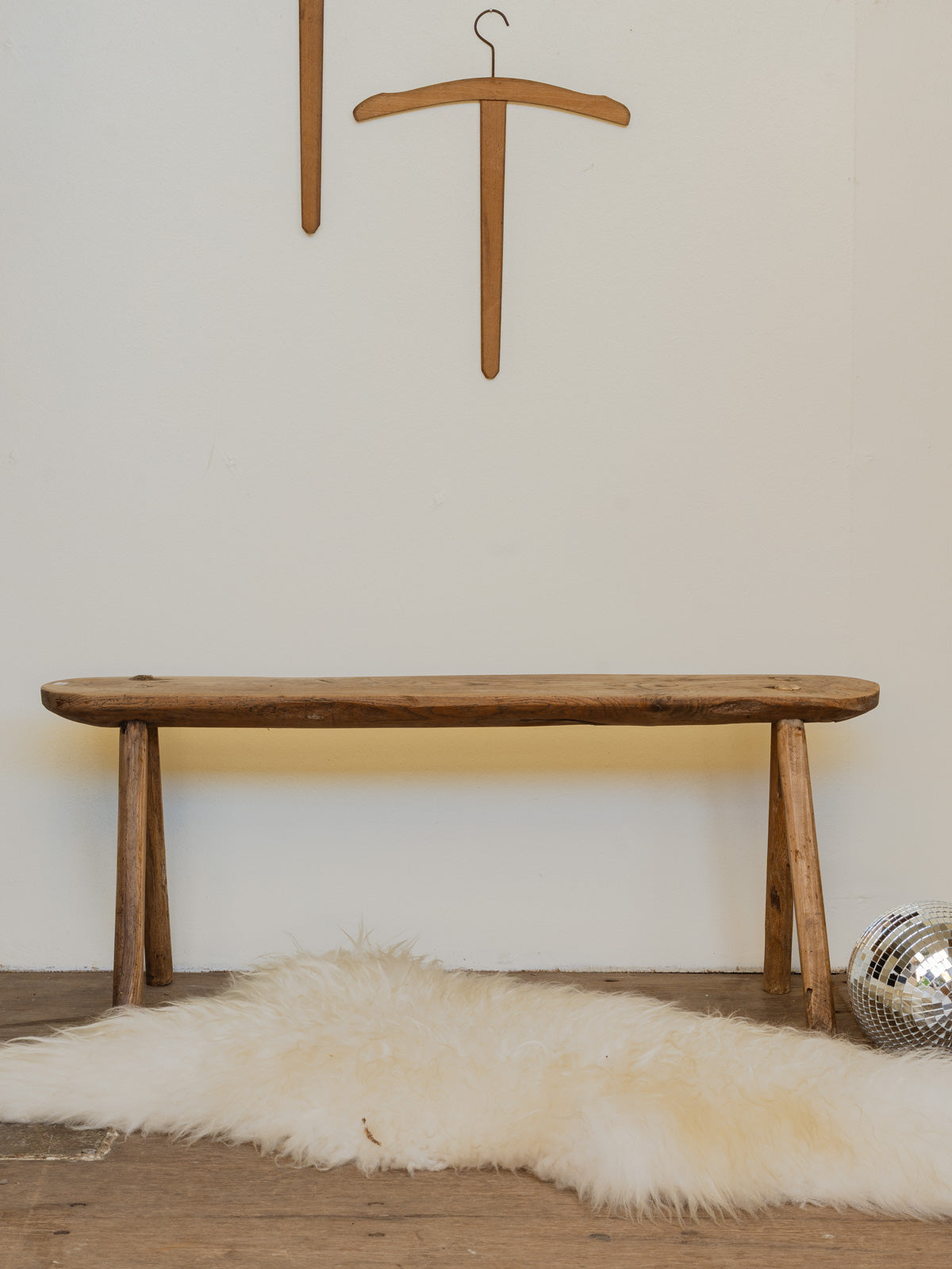 Banc ancien en chêne, esthétique art brut, au caractère franc et tranquille. Sa silhouette simple et robuste offre une assise généreuse, idéale comme banquette d'entrée, au pied d'une table ou dans une entrée. Le chêne massif met en valeur le veinage et la matière, apportant une chaleur naturelle et une présence atelier à la pièce. Légères traces du temps qui participent à son charme.