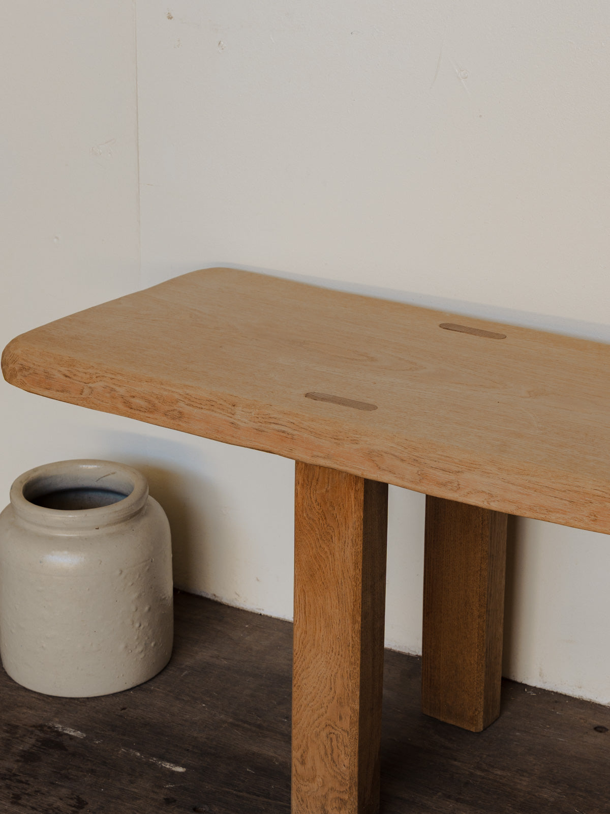 Adoptez ce banc de ferme en chêne aux lignes simples et chaleureuses, qui apporte une allure naturellement rustique et élégante à tout intérieur. Sa longueur généreuse permet d'accueillir deux à trois personnes, parfait pour une table familiale, une entrée ou un coin lecture, tandis que le bois massif assure une belle patine. Quelques traces du temps sont présentes.