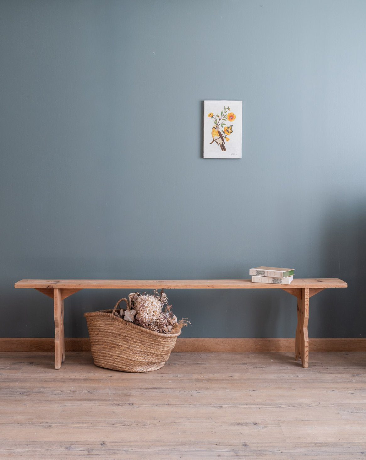 Adoptez ce banc de ferme ancien en bois, entièrement nettoyé, poncé et traité puis laissé en bois brut pour révéler sa texture naturelle et sa sobriété. Sa longueur généreuse et son assise étroite en font un meuble d'appoint parfait pour une entrée, le pied de lit ou une table conviviale, apportant une note chaleureuse et authentique à votre intérieur. Quelques traces du temps qui font son authenticité.