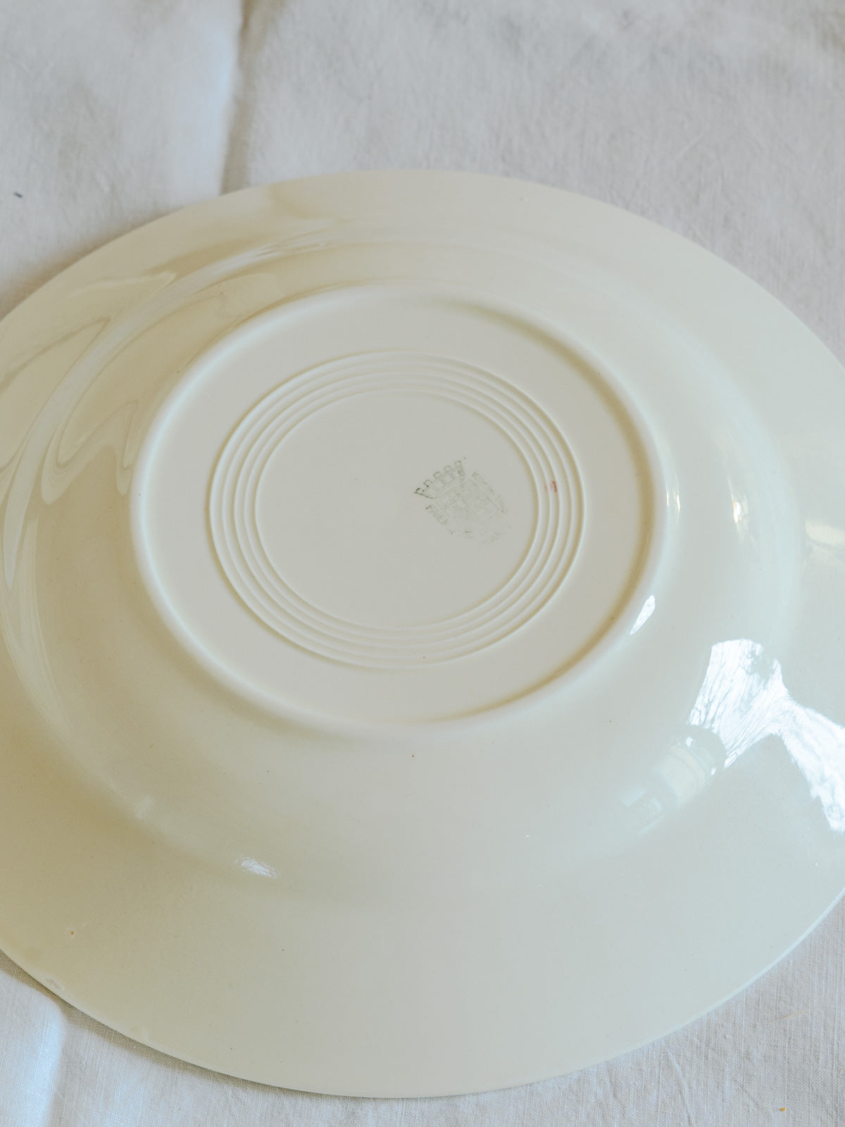 Apportez à votre table un ensemble vintage en faïence de la Faïencerie d'Onnaing, composé de six assiettes plates et quatre assiettes creuses au délicat liseré bleu. La matière offre une belle tenue au quotidien tout en restant assez fines pour une présentation soignée. Idéal pour servir entrées, plats et bouillons, ce service crée une atmosphère chaleureuse et légèrement rétro, parfaite pour des repas simples ou des dîners entre amis.
