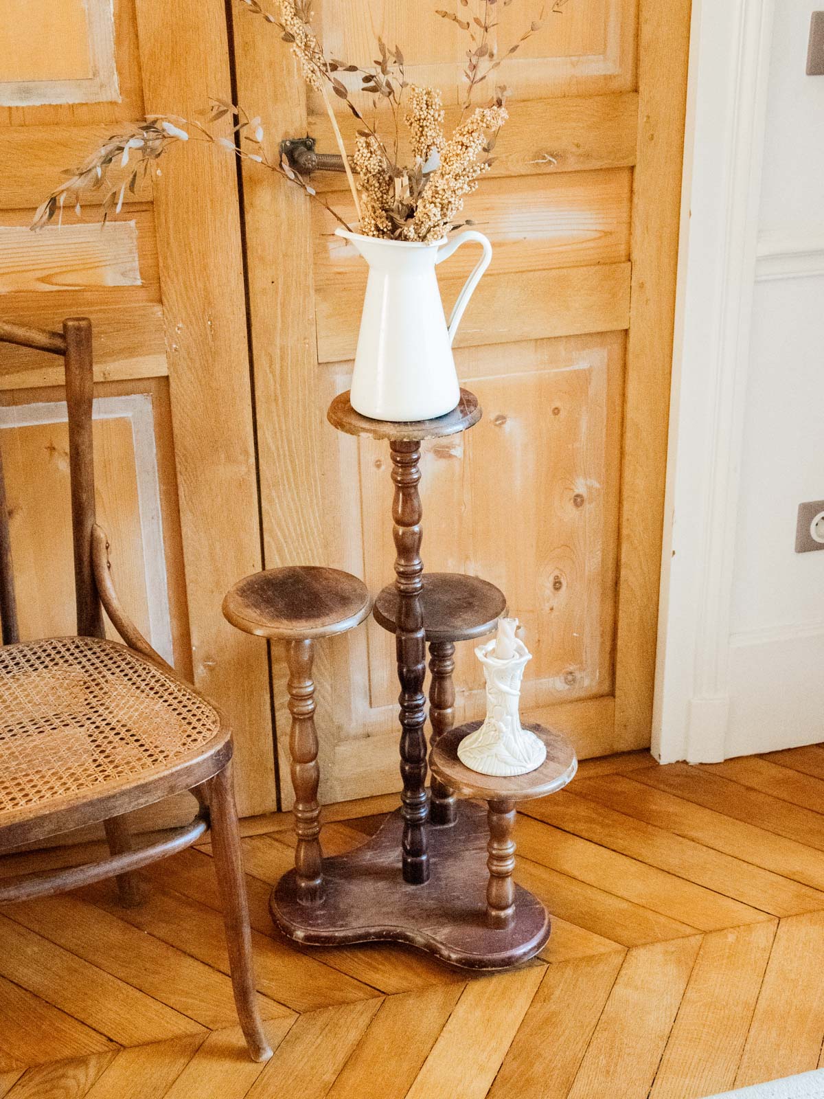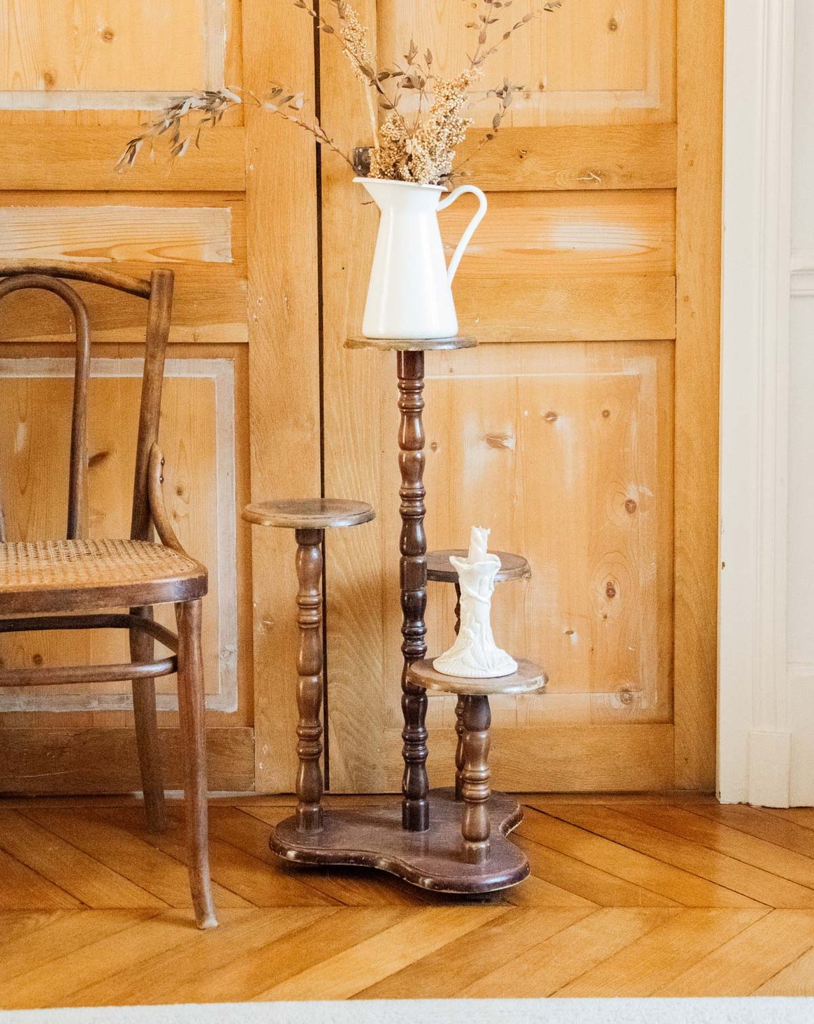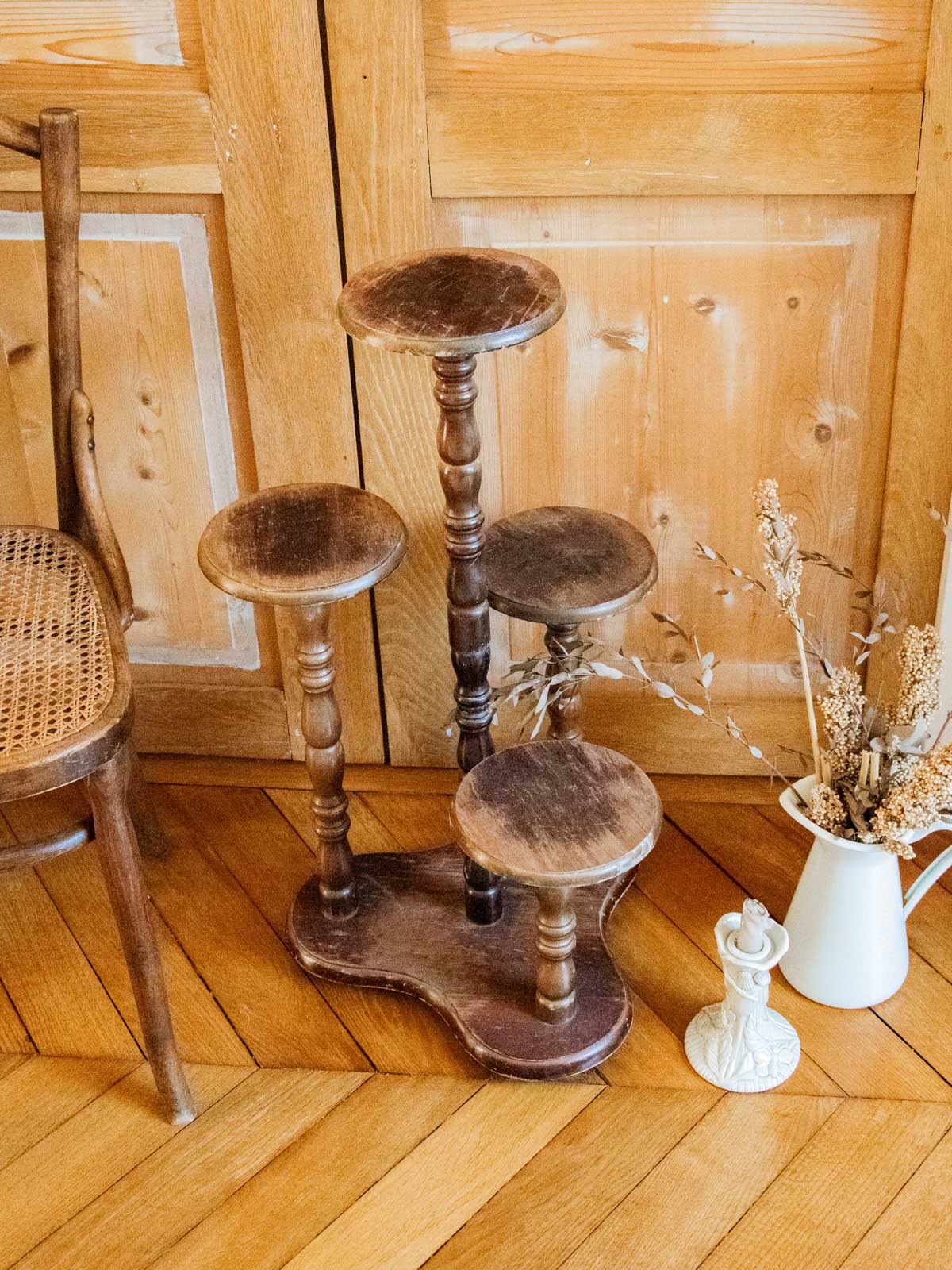 Invitez une touche nature avec ce pose-plante en bois, au design élancé et aux lignes sobres. Solide et stable, il offre un support idéal pour une belle plante d'intérieur ou un groupement de pots, sa proportion verticale valorise les végétaux sans encombrer l'espace. Le grain du bois et la finition chaleureuse apportent une ambiance douce et authentique, parfaite pour un salon scandinave ou un coin verdure plus contemporain. Quelques traces d'usures présentes.