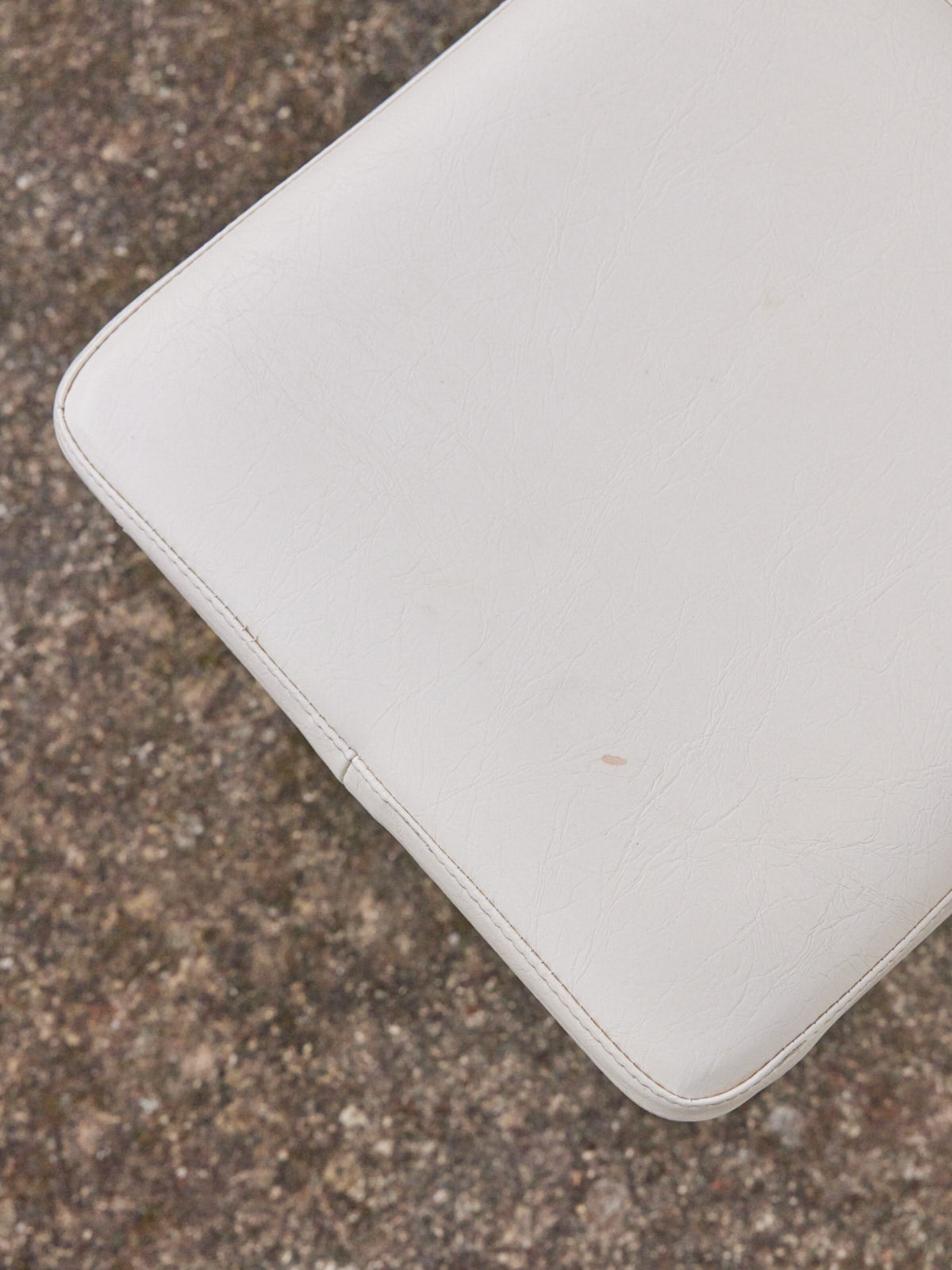 Adoptez ce tabouret carré en cuir blanc et pieds chromés, où la simplicité des lignes révèle une finition soignée. L'assise en cuir, lumineuse et subtilement grainée, offre un confort discret tandis que les pieds chromés apportent une élégance contemporaine et une belle stabilité. Compact et graphiquement proportionné, il trouve sa place au bar, près d'une coiffeuse ou dans un coin salon pour instaurer une ambiance moderne et épurée. Entretien facile pour un usage quotidien.