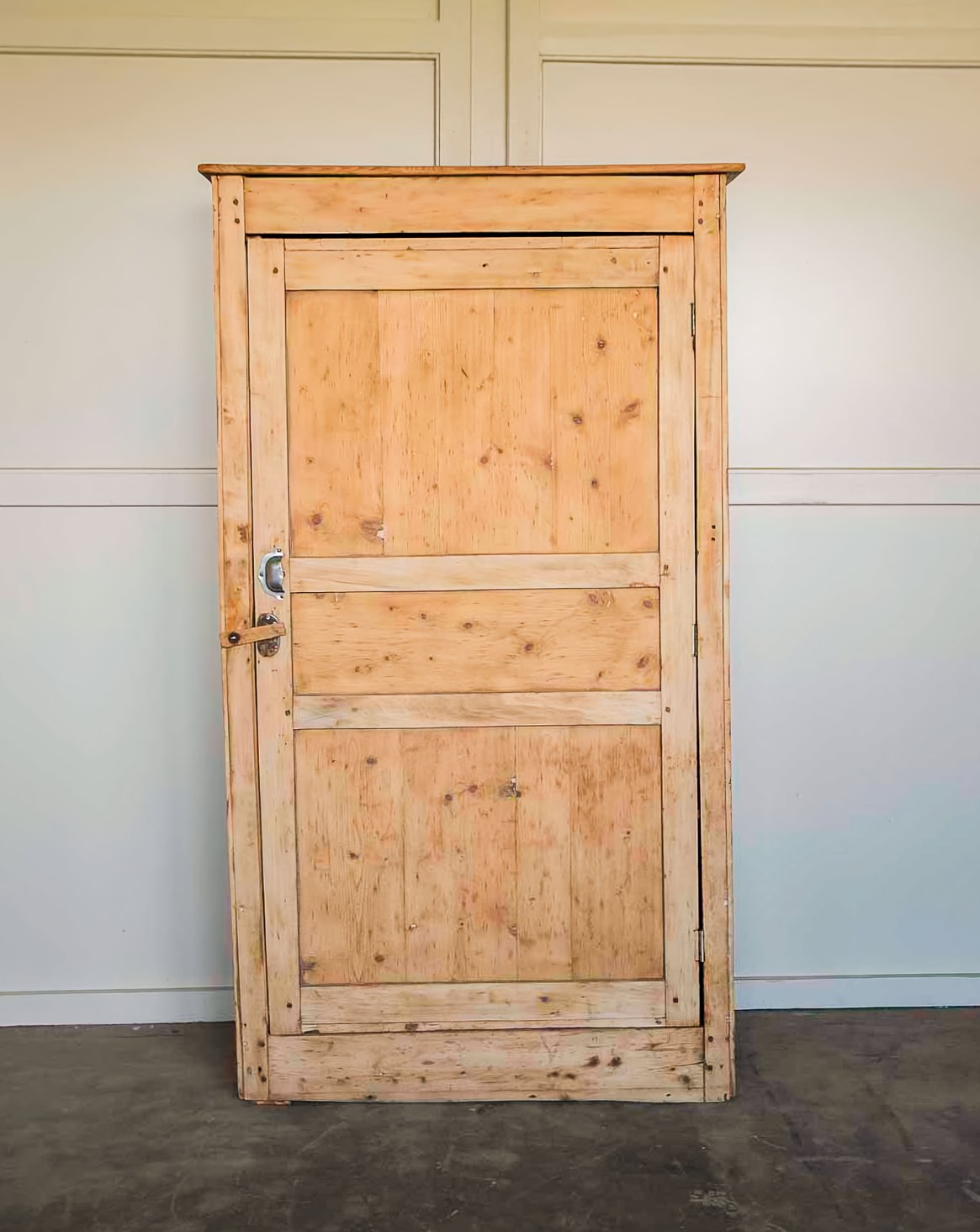 Découvrez cette jolie bonnetière ancienne en bois laissé naturel, entièrement décapée et poncée pour une finition chaleureuse et authentique. Son format élancé offre une belle capacité de rangement avec trois étagères neuves en pin, idéale pour la vaisselle, le linge, les livres ou les objets du quotidien. Détails authentiques : poignée en fer et fermeture par loquet en bois qui accentuent son esprit atelier et campagne. Elle présente un léger désaxement vers la gauche, de petits jours au niveau de la porte et un petit clou à peine apparent sur la face gauche, la porte fermant néanmoins facilement. Légères traces du temps qui participent à son charme.