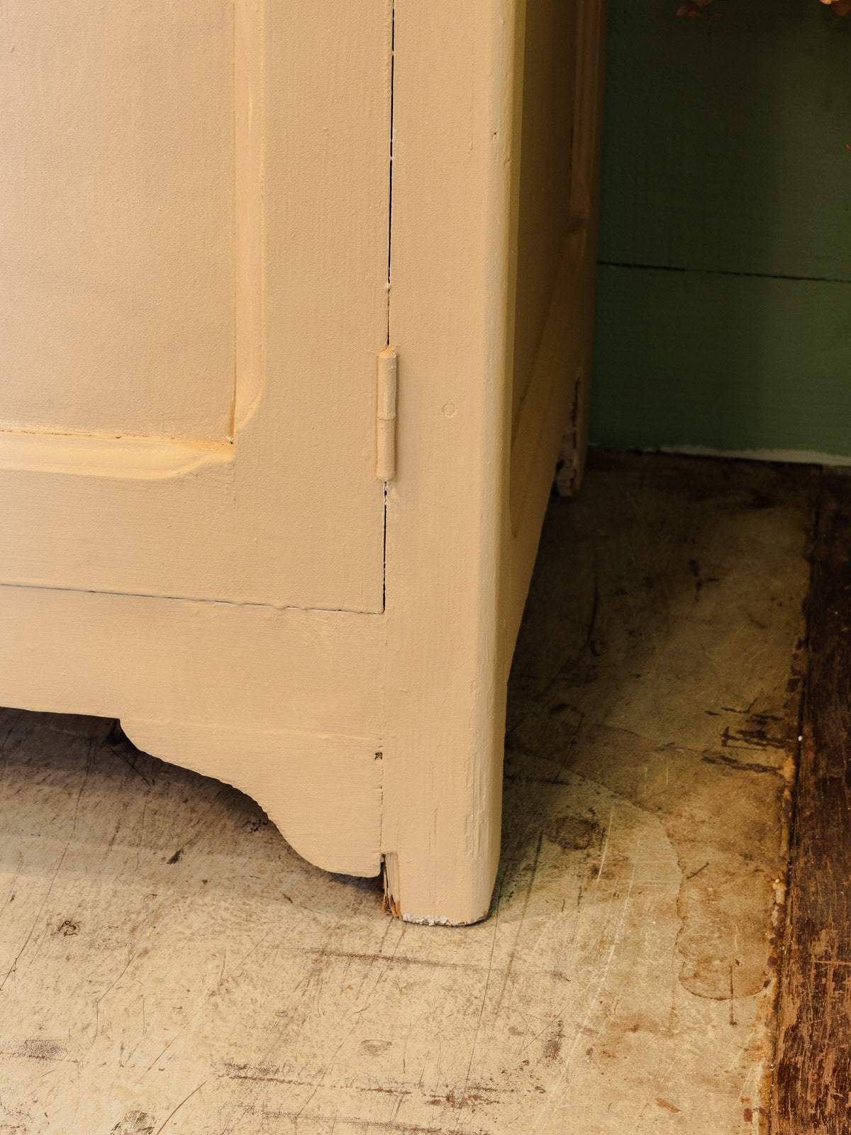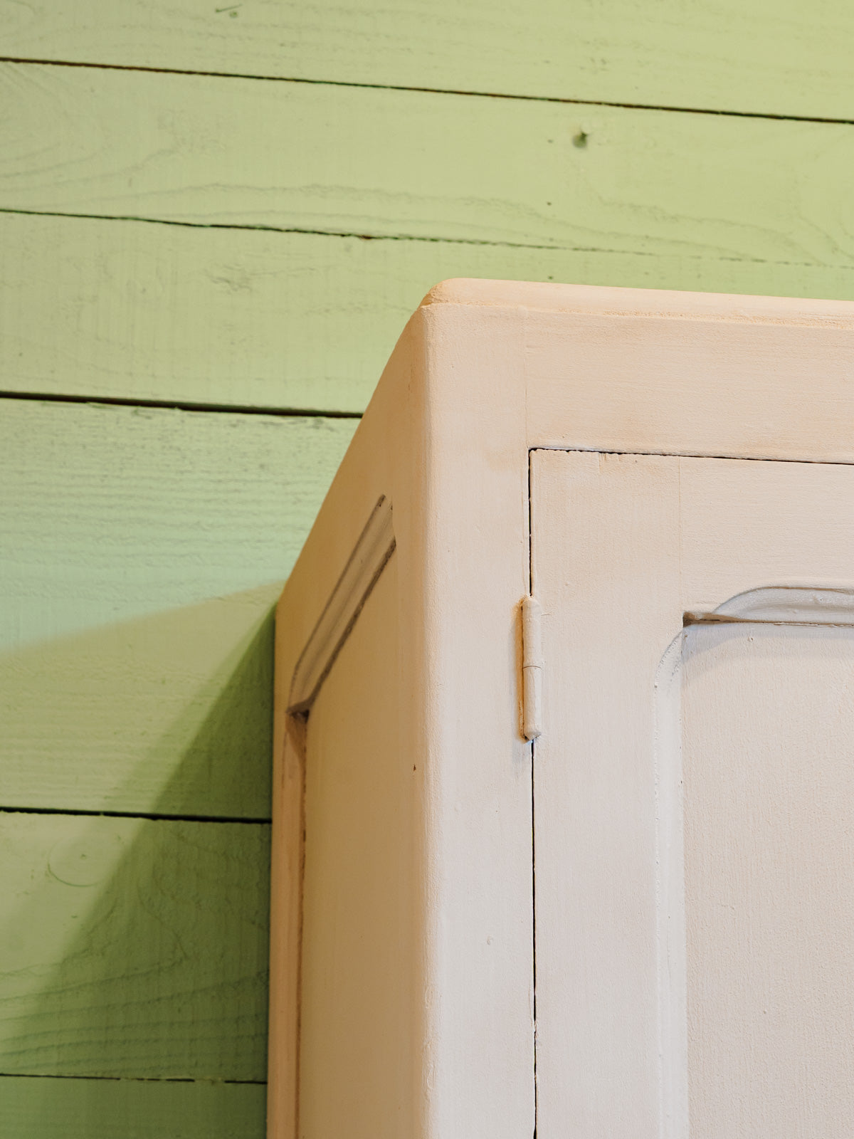Adoptez cette armoire ancienne restaurée avec goût, poncée et peinte en beige, qui mêle le charme d'antan à une allure contemporaine subtile. Sa structure en bois abrite deux étagères intérieures offrant un rangement organisé pour linge, vaisselle ou accessoires, tandis que les deux portes se ferment grâce à un loquet qui souligne son authenticité. Sa teinte douce crée une atmosphère chaleureuse et élégante, idéale pour une chambre, une entrée ou un coin dressing.
