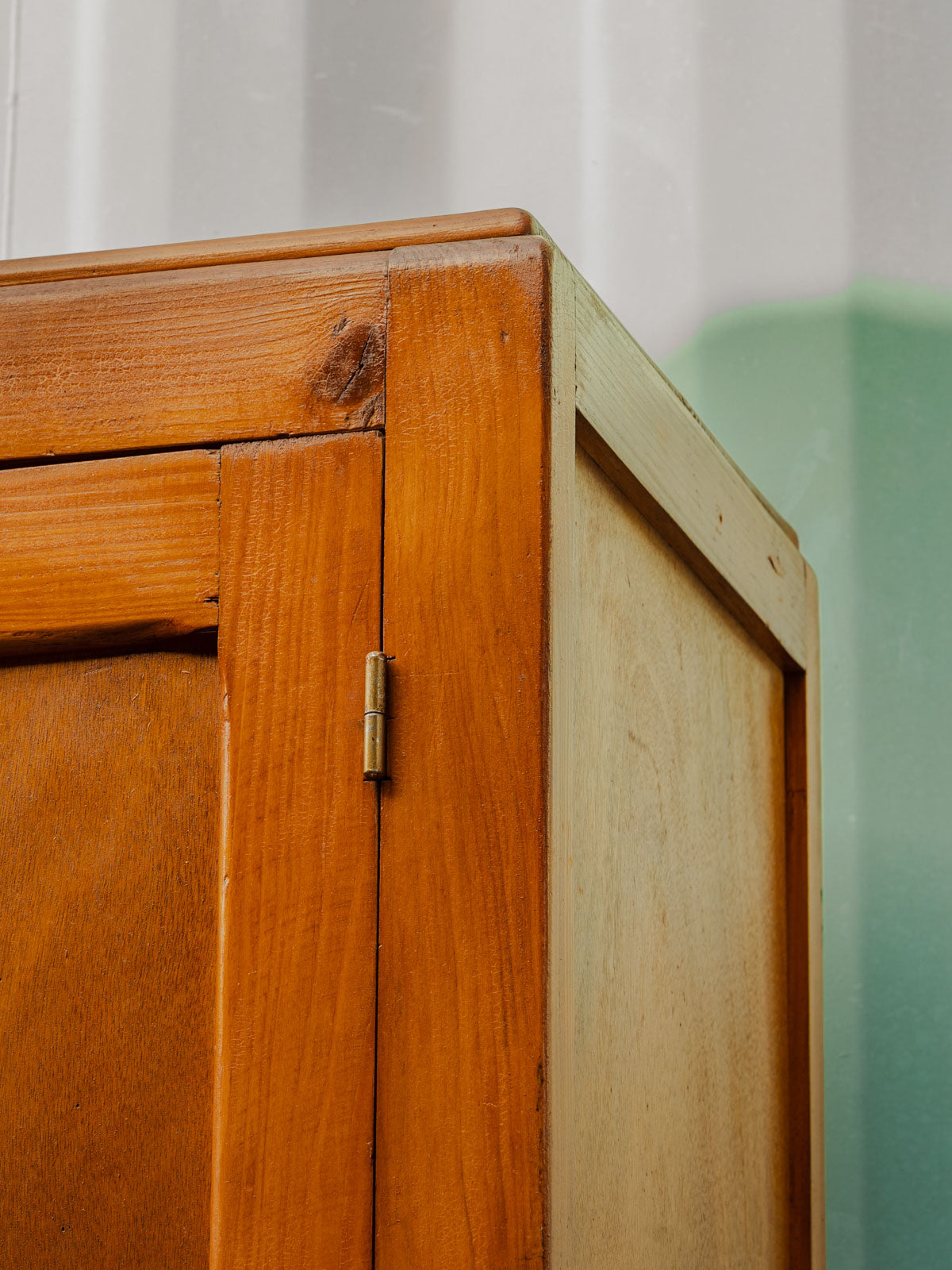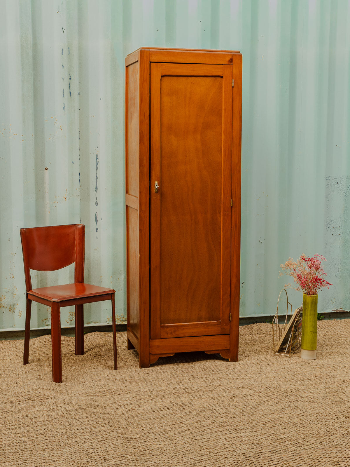 Adoptez cette armoire en bois au style épuré et lumineux, qui apporte une présence chaleureuse et élégante à votre intérieur. La serrure et la clé d'origine, métallique doré, assurent une fermeture sûre et conservent son caractère d'époque. Trois étagères intérieures offrent un rangement modulable et il est possible d'en ajouter une pour adapter la capacité selon vos besoins. Parfaite pour une entrée, une chambre ou une cuisine, elle organise vos affaires avec délicatesse. Quelques marques d'usage qui font son authenticité.