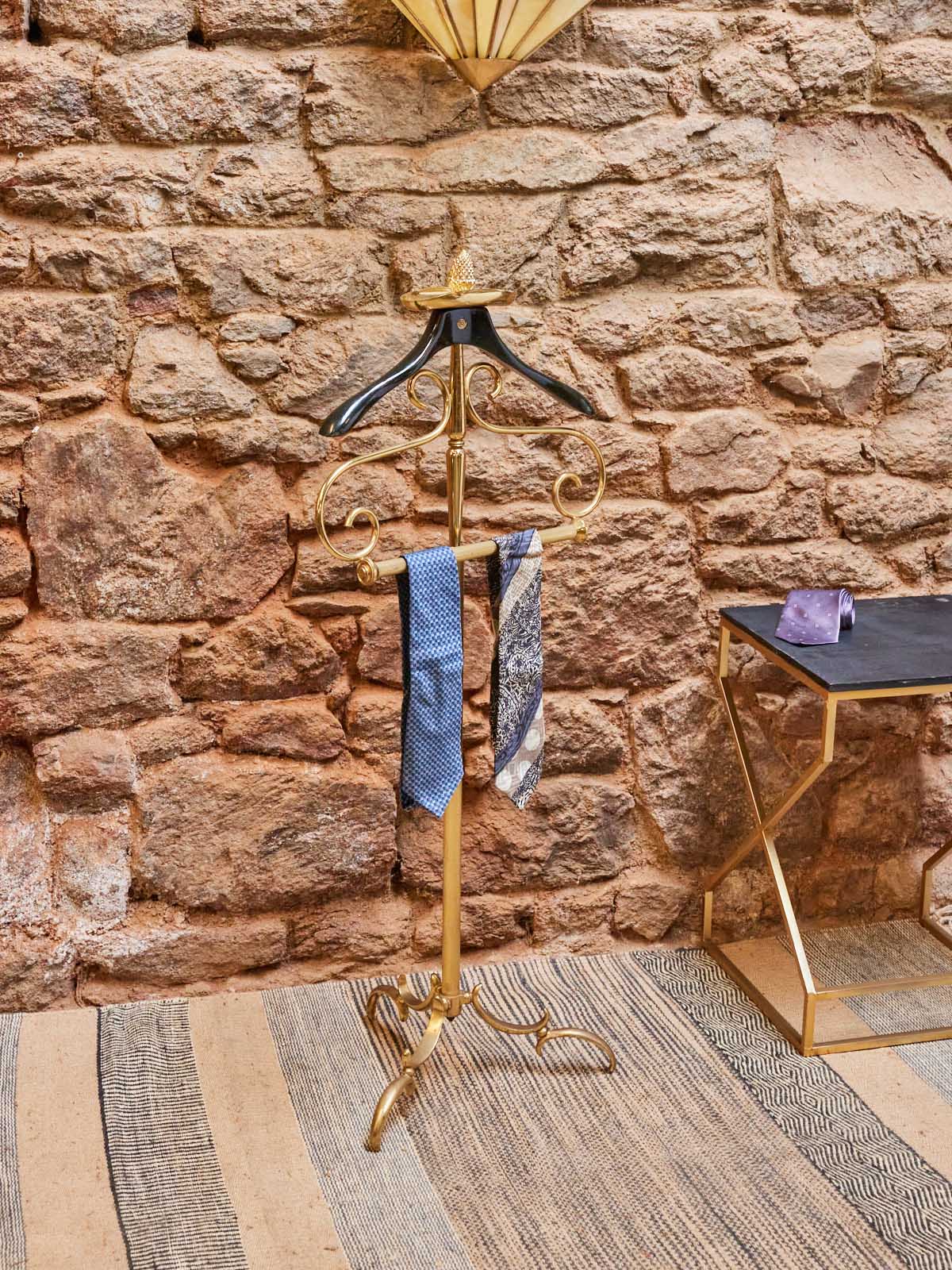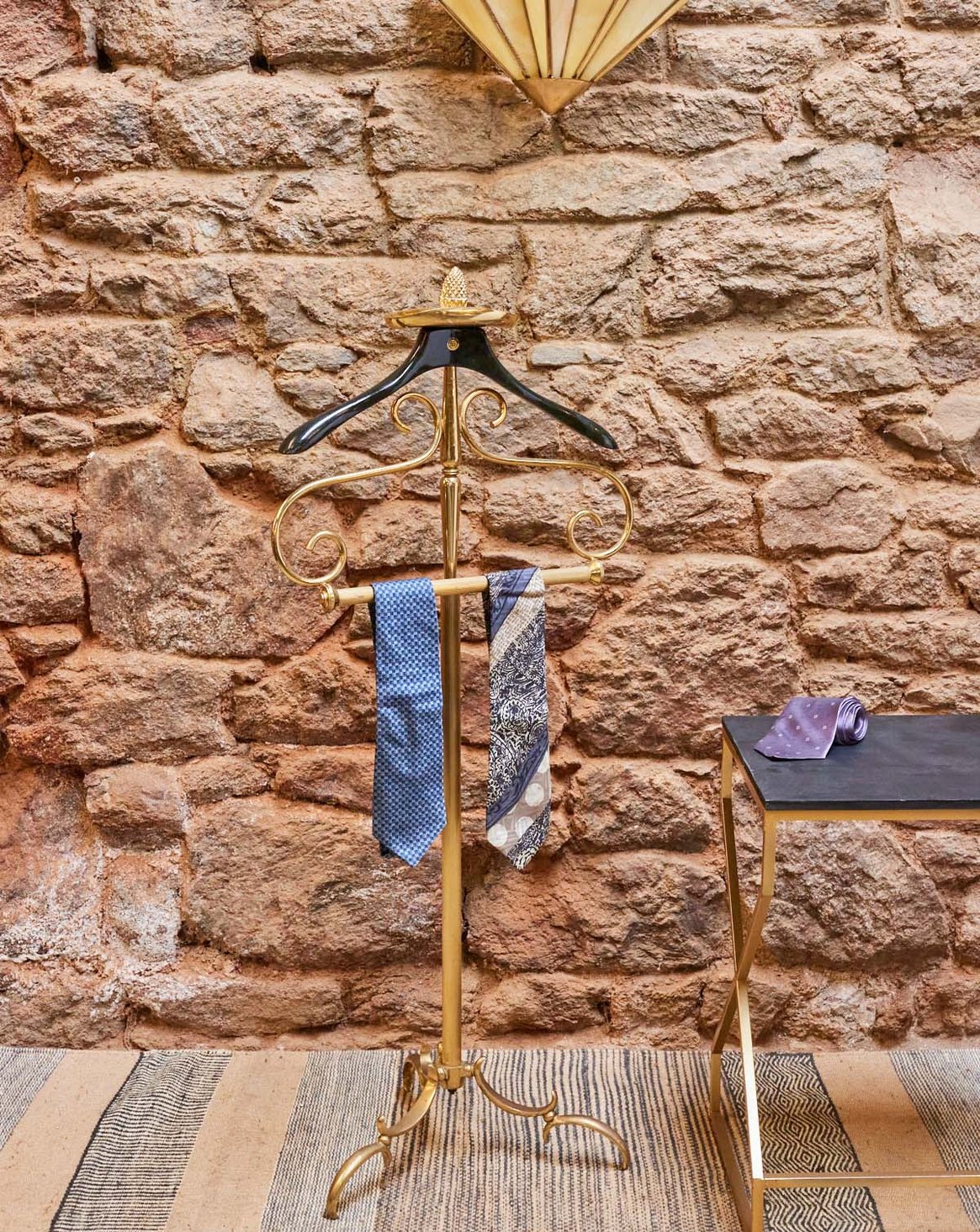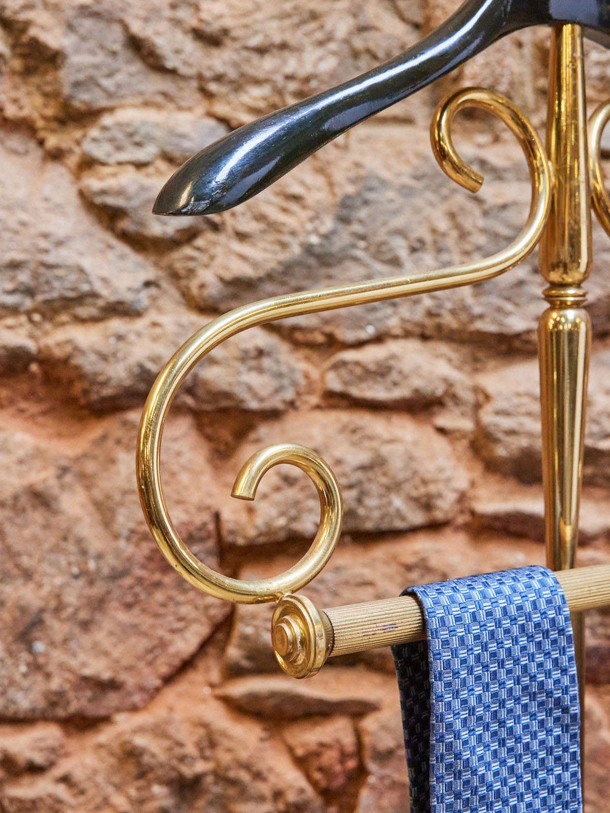 Adoptez le valet porte costume Fratelli Reguitti, fabriqué en Italie en laiton chaleureux au grain subtil, qui dessine une silhouette raffinée et épurée. Pensé pour accueillir vestes, pantalons et accessoires, il assure un maintien soigné et organise la tenue avec rigueur et élégance. Sa fabrication italienne se ressent dans la finesse des finitions et la solidité des matériaux. Il installe une ambiance sobre et sophistiquée dans la chambre ou le dressing.