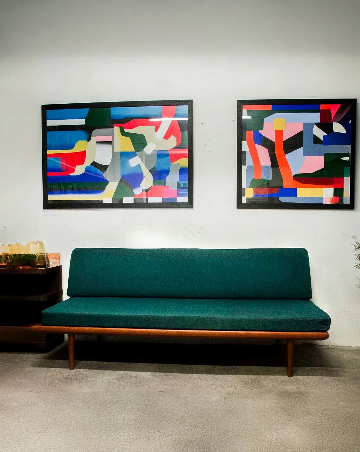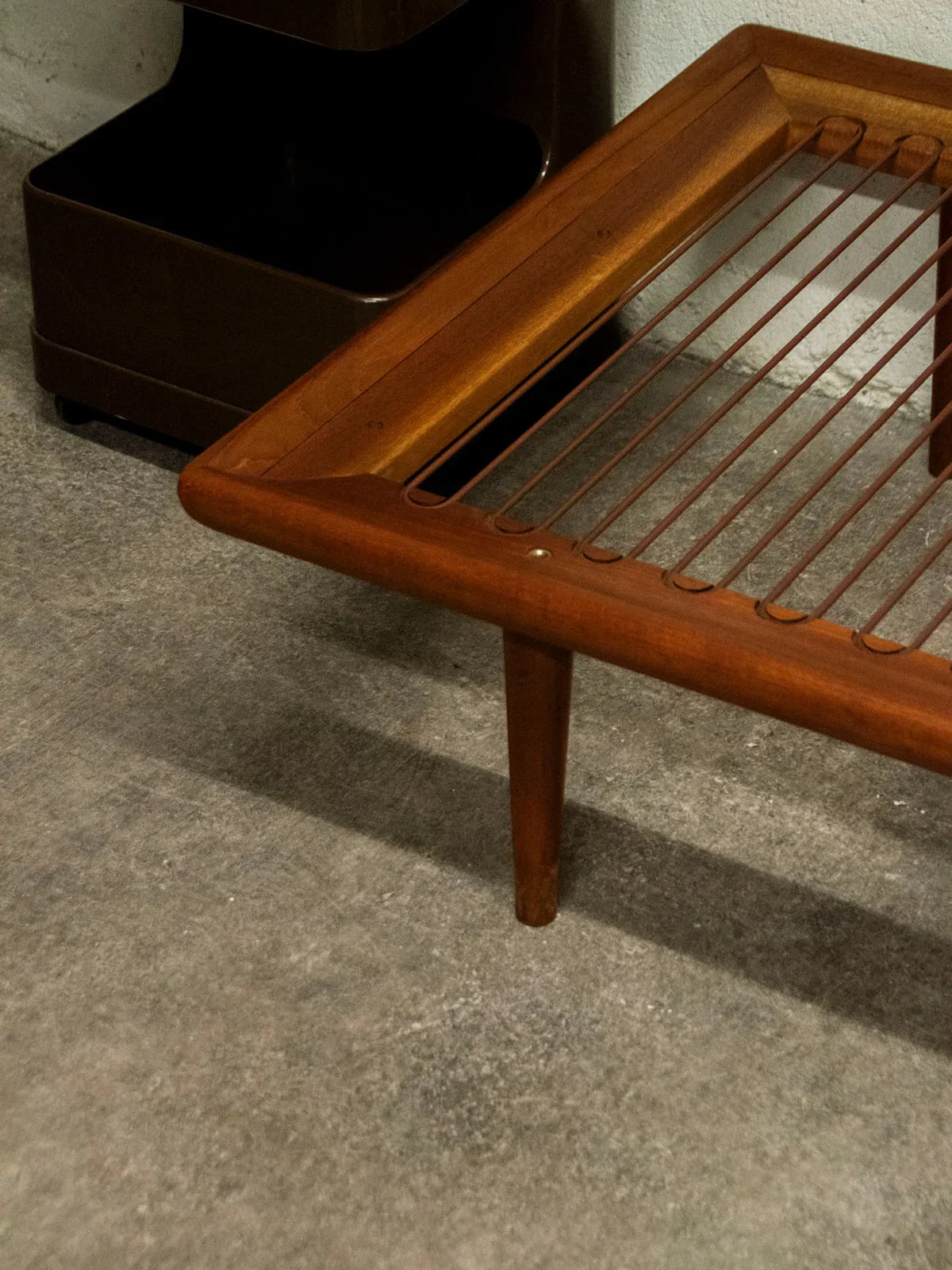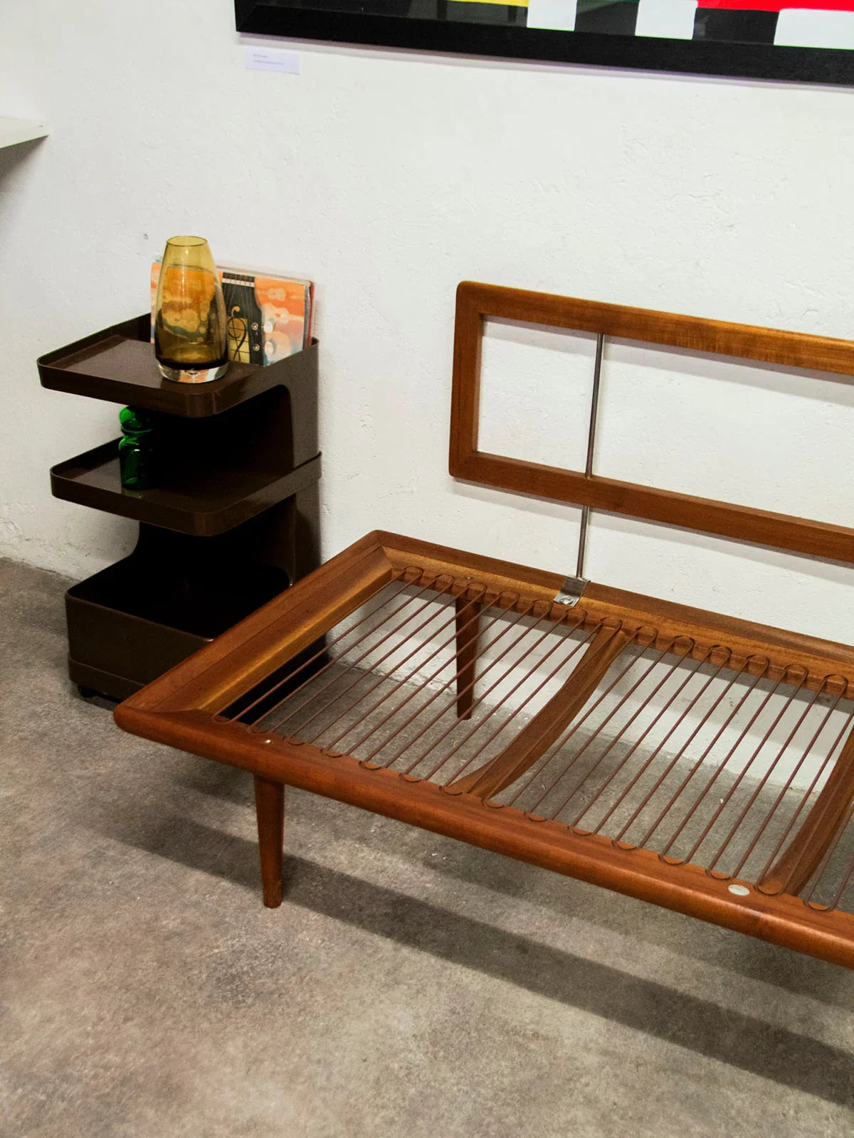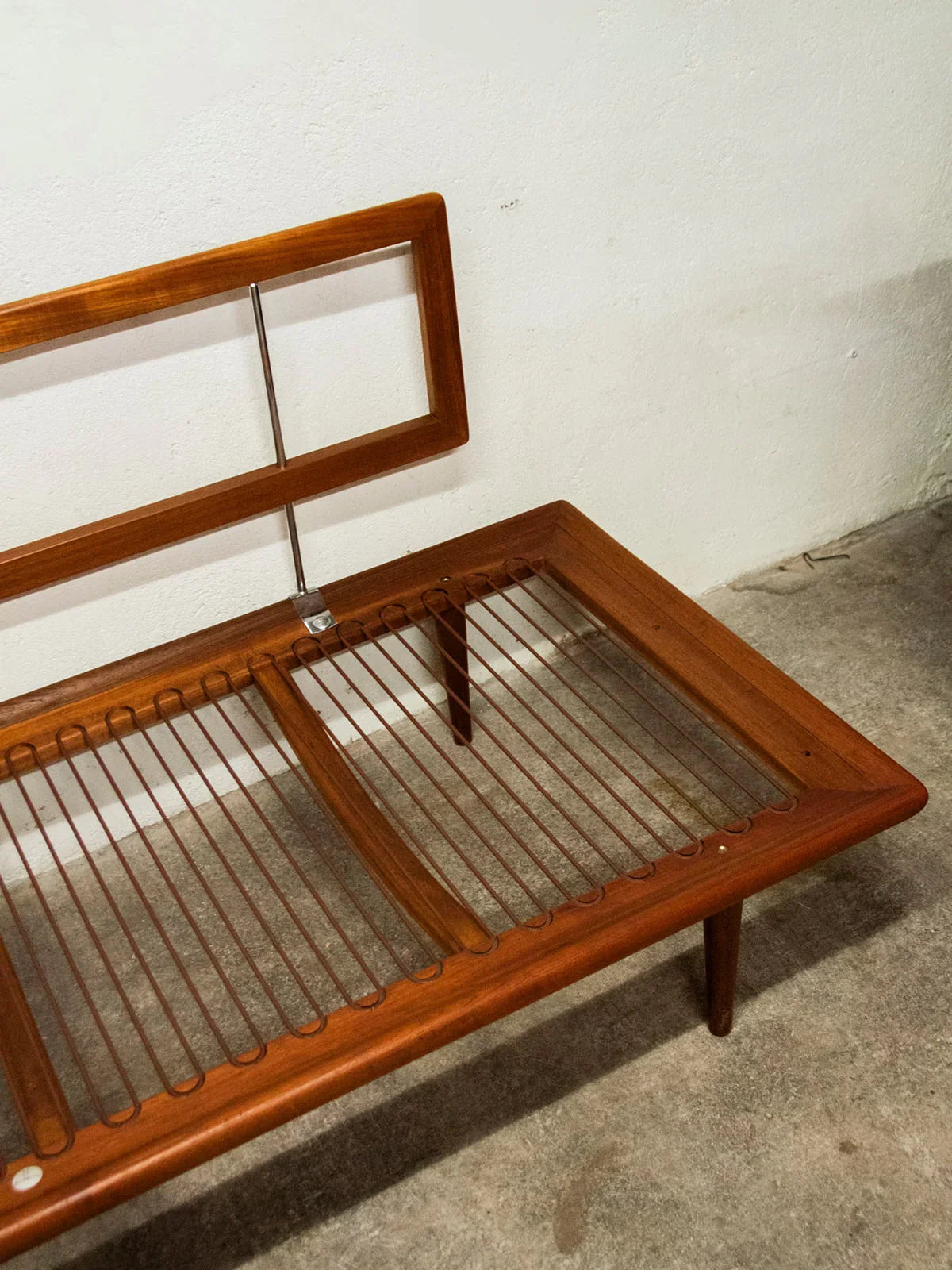 Découvrez le sofa daybed « Minerva », signé Peter Hvidt et Olga Molgaard Nielsen pour France and Son, une pièce emblématique des années 60. Fabriqué avec soin au Danemark, sa structure en teck allie robustesse et élégance. Cette banquette trois places, en très bel état général malgré quelques légères marques du temps, est dotée de coussins entièrement déhoussables habillés d’un tissu d’origine de couleur vert émeraude. Pratique et esthétique, ce modèle est également accompagné de sa plaque de l’éditeur et de son numéro de série, gage d’authenticité.