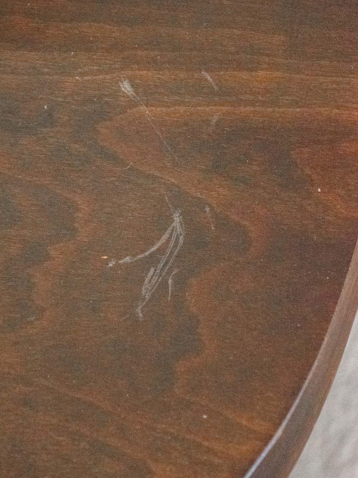 Adoptez cette chaise d'inspiration western en bois foncé sculpté, où le travail du bois apporte une présence chaleureuse et sobre à votre intérieur. Son dossier à barreaux et la poignée intégrée facilitent le déplacement tandis que l'assise incurvée épouse la morphologie pour un confort naturel lors des repas ou des moments de lecture. De proportions équilibrées, elle s'intègre aussi bien autour d'une table que dans un coin lecture, créant une ambiance accueillante et authentique. Quelques traces d'usage à noter.