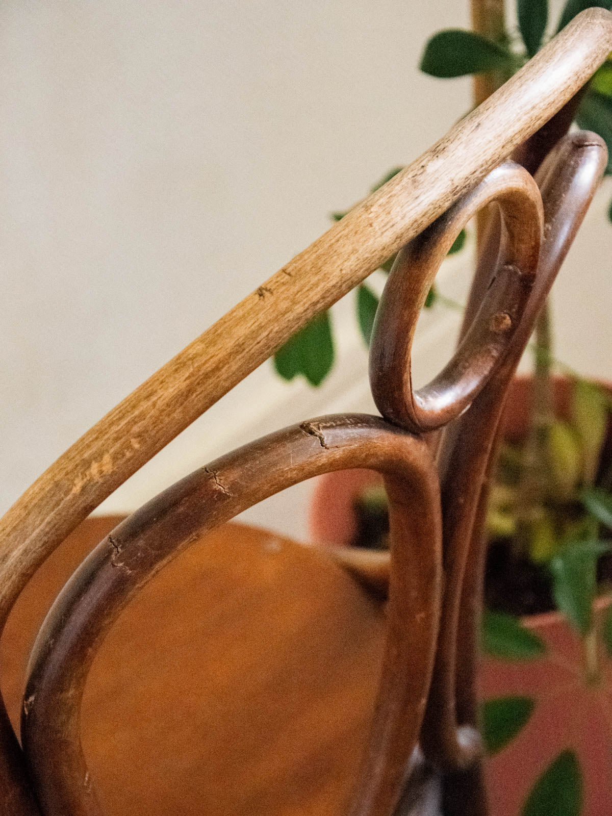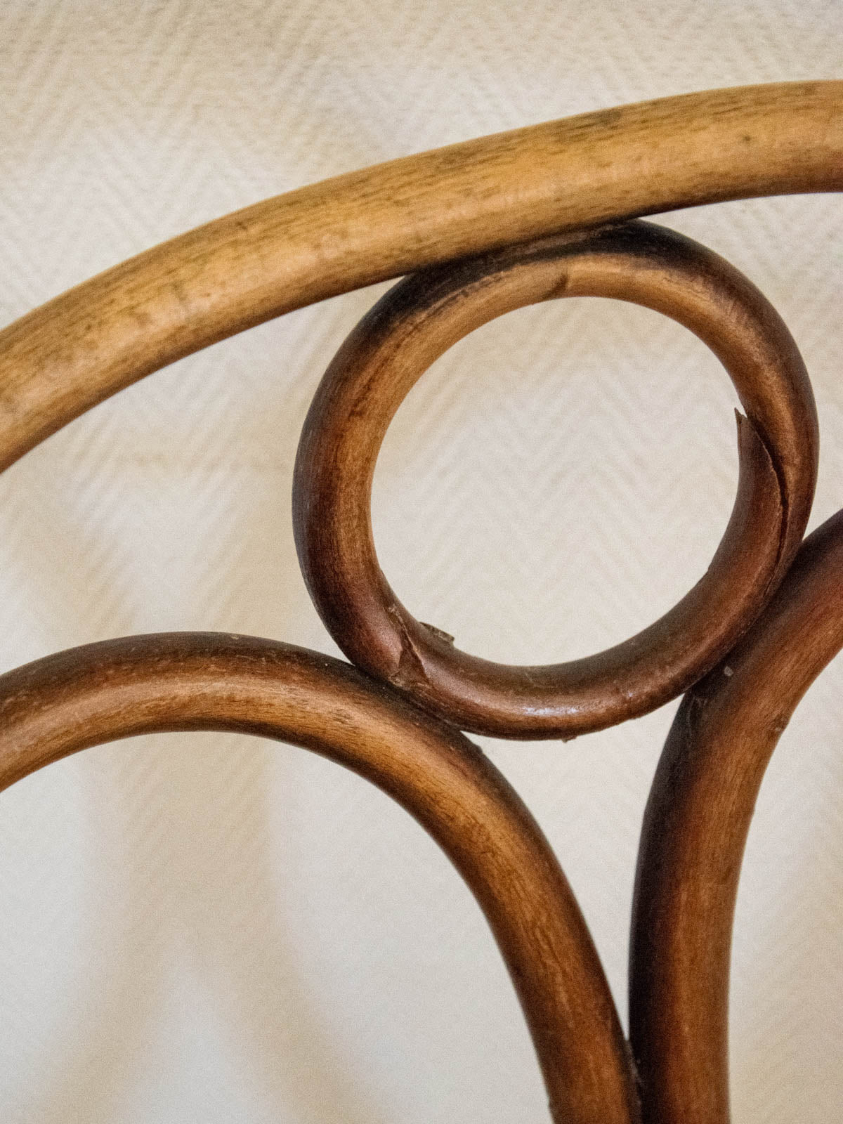 Adoptez cette chaise bistrot en bois foncé au dossier courbe, vendue à l'unité et idéale pour composer une table conviviale ou meubler un coin café. Sa structure en bois et sa patine sombre confèrent un style bistrot intemporel, tandis que l'assise et le dossier enveloppant offrent un confort simple adapté à un usage quotidien. Sa silhouette compacte s'accorde aussi bien à une salle à manger qu'à une entrée, apportant une atmosphère chaleureuse et élégante. Légères traces du temps présentes.