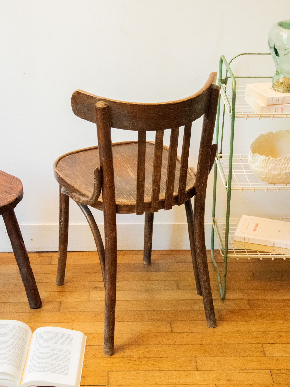 Adoptez cette chaise bistrot ancienne en bois au charme vintage : ses lignes épurées et son assise à hauteur confortable s'intègrent aussi bien dans une cuisine compacte que dans un coin café convivial. Sa structure solide garantit une stabilité quotidienne, tandis que les proportions compactes facilitent l'agencement des petits espaces. La chaleur du bois et la patine naturelle apportent une ambiance chaleureuse et authentique. Légères traces du temps présentes.