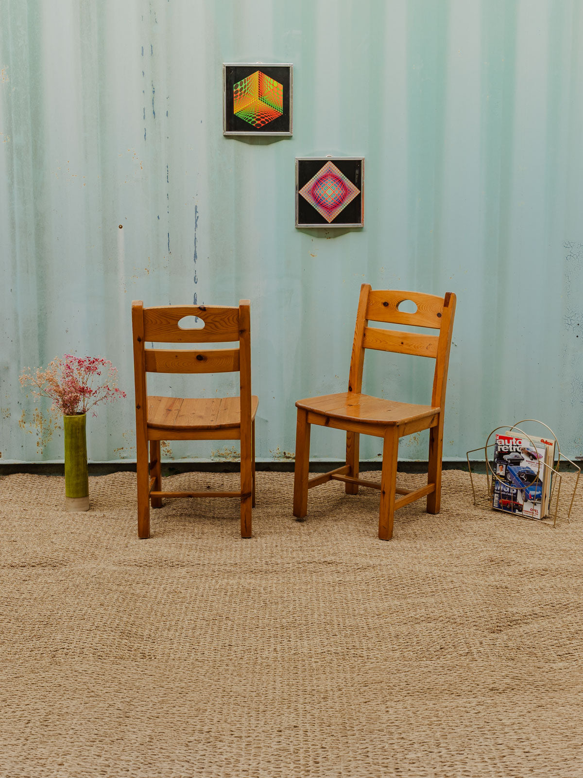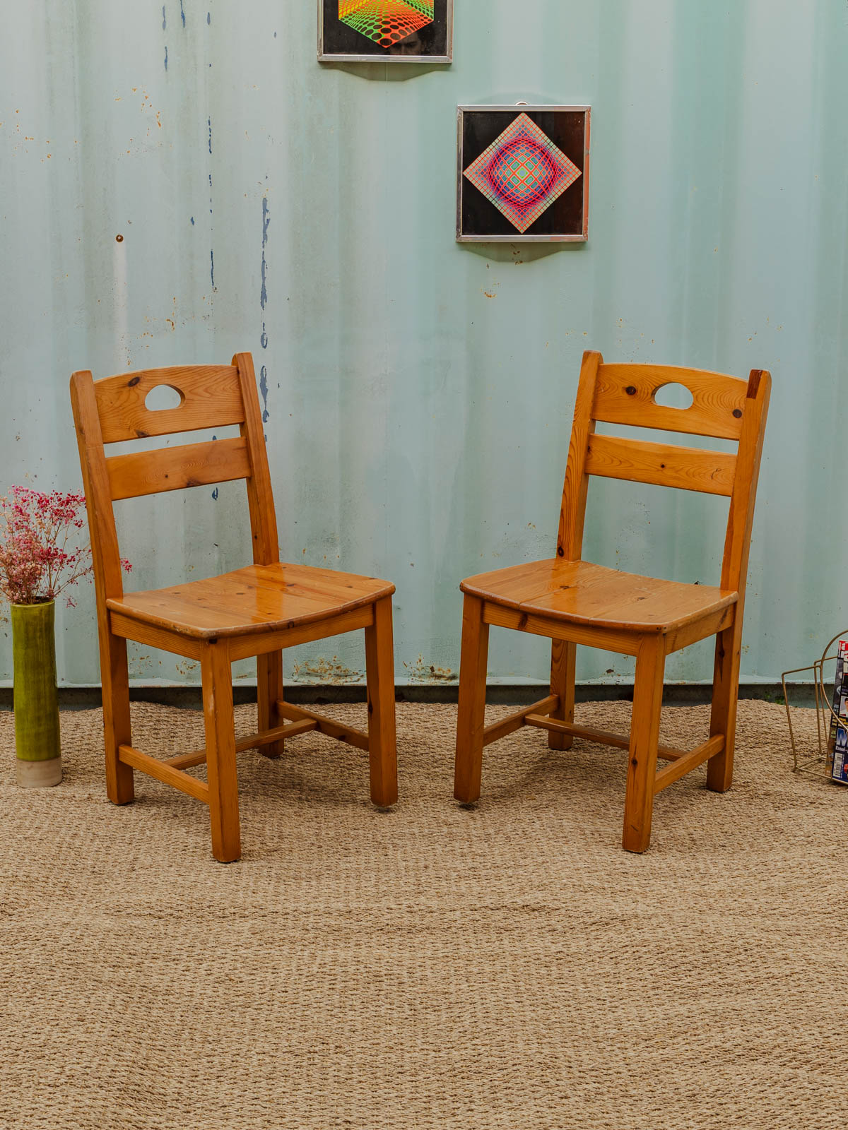 Adoptez ce lot de deux chaises anciennes en bois au charme discret. Leur assise et dossier finement travaillés apportent une élégance naturelle, idéale autour d'une table de salle à manger ou pour créer un coin lecture chaleureux. Le bois clair réchauffe l'espace et s'accorde à des intérieurs contemporains ou plus classiques, offrant une présence légère et fonctionnelle. Quelques traces du temps.