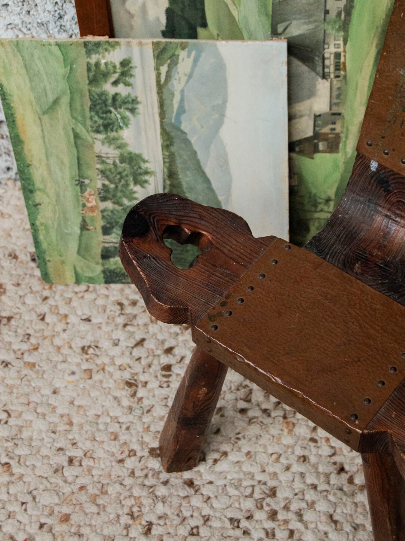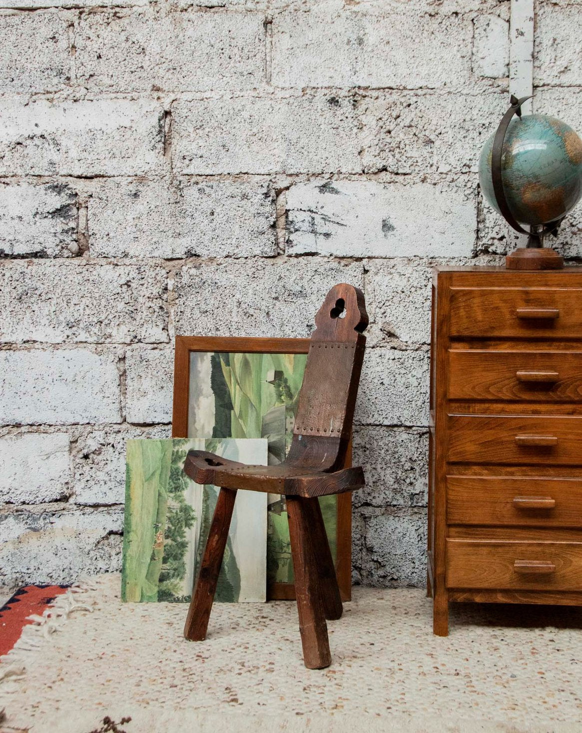 Découvrez la chaise brutaliste tripode, une pièce unique qui allie caractère et originalité. Son assise délicate, conçue pour apporter une touche d'élégance, se distingue par un trou en forme de trèfle, ajoutant une note artistique à son design. Bien que le pied avant présente un léger aspect bancal, cela contribue à son charme brut et authentique, faisant de cette chaise un choix parfait pour ceux qui recherchent un mobilier atypique et évocateur. Apportez une touche d'audace à votre intérieur avec cet objet d'art fonctionnel.