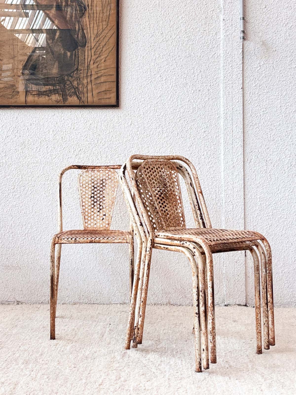 Découvrez le lot de 4 chaises René Malaval, un choix élégant et intemporel pour tout intérieur. Ces chaises allient confort et esthétique. Parfaites pour un repas convivial ou un espace de travail stylé, elles seront un atout indéniable dans votre décoration. Le métal vieilli par le temps n'enlève rien à sa robustesse, ni à son esthétisme.