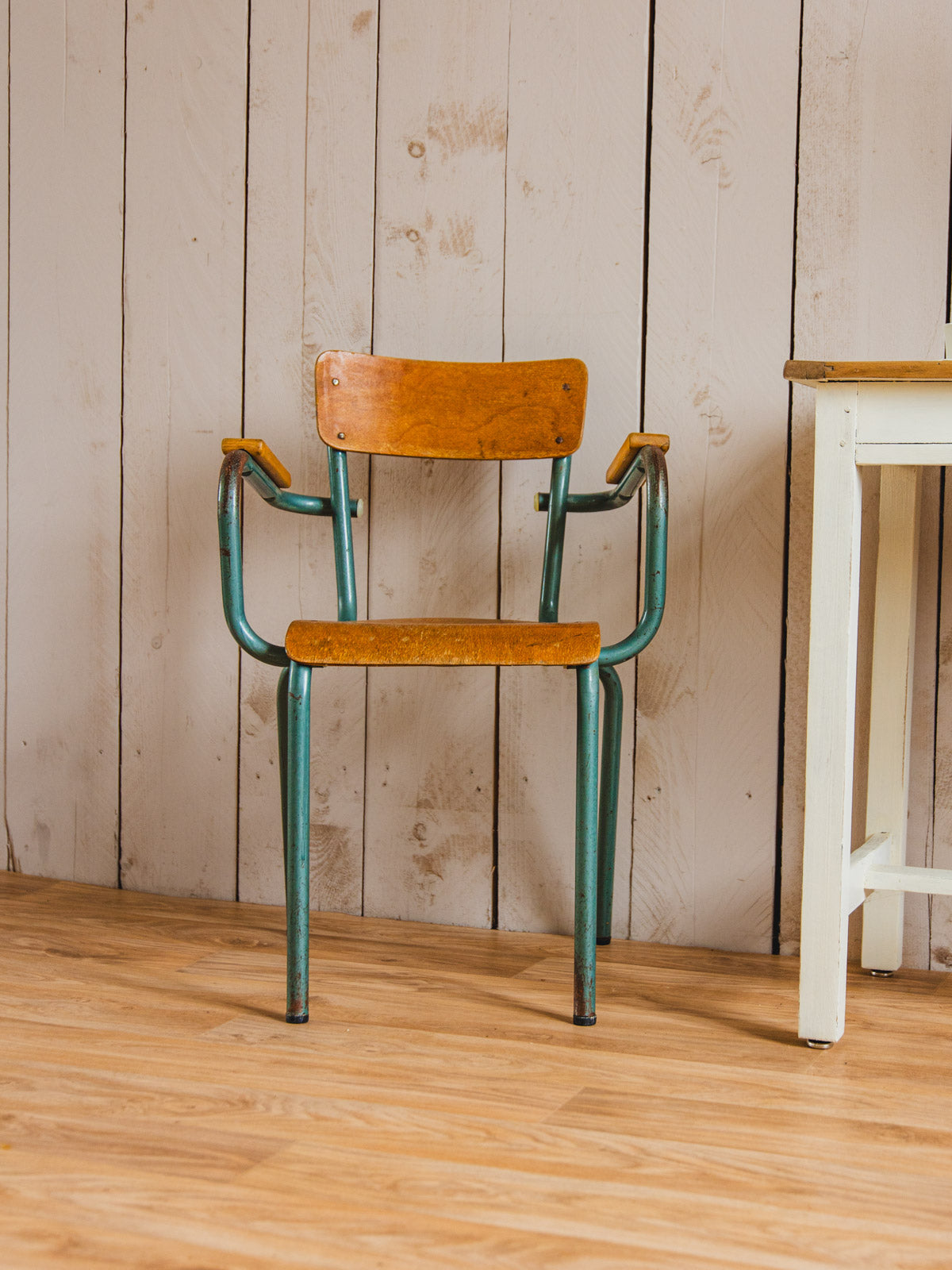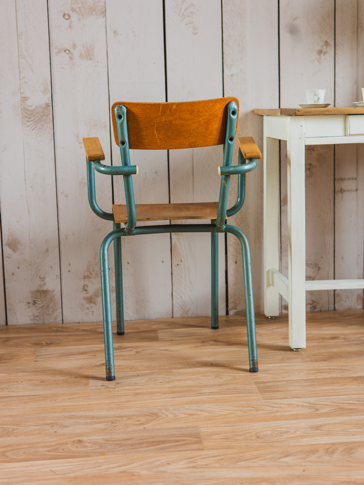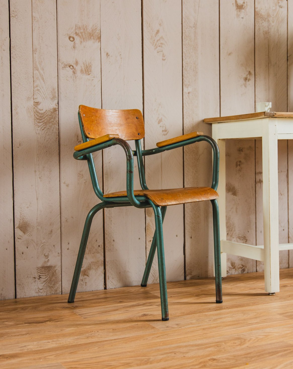 Adoptez cette chaise de directeur des années 60, patinée et d'une élégance sobre qui affirme une présence chic dans un bureau ou un coin lecture. Sa finition traitée à la cire protège la surface tout en révélant une patine délicate, invitant à une atmosphère chaleureuse et rétro contemporaine. Sa silhouette structurée et confortable la rend idéale pour un usage quotidien ou comme pièce d'appoint stylée. Traces du temps présentes.