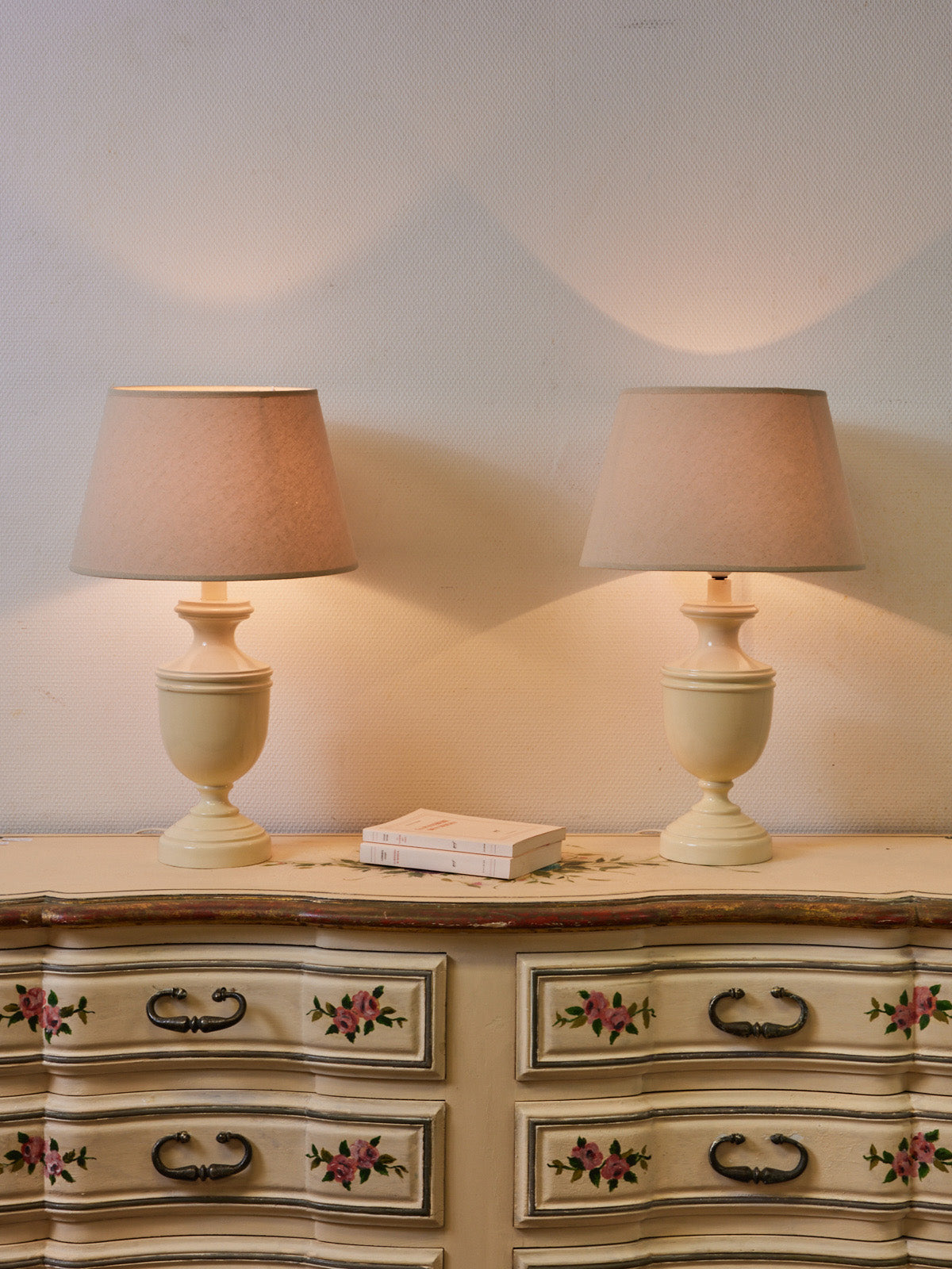 Sublimez votre chambre avec cette paire de lampes aux pieds balustres en bois laqué ivoire, dont les lignes classiques apportent une élégance discrète. Les abat-jours neufs diffusent une lumière douce, idéale pour la lecture du soir et pour créer une atmosphère chaleureuse au chevet. Leur proportion équilibrée permet de les disposer de chaque côté du lit, habillant la pièce sans la surcharger.