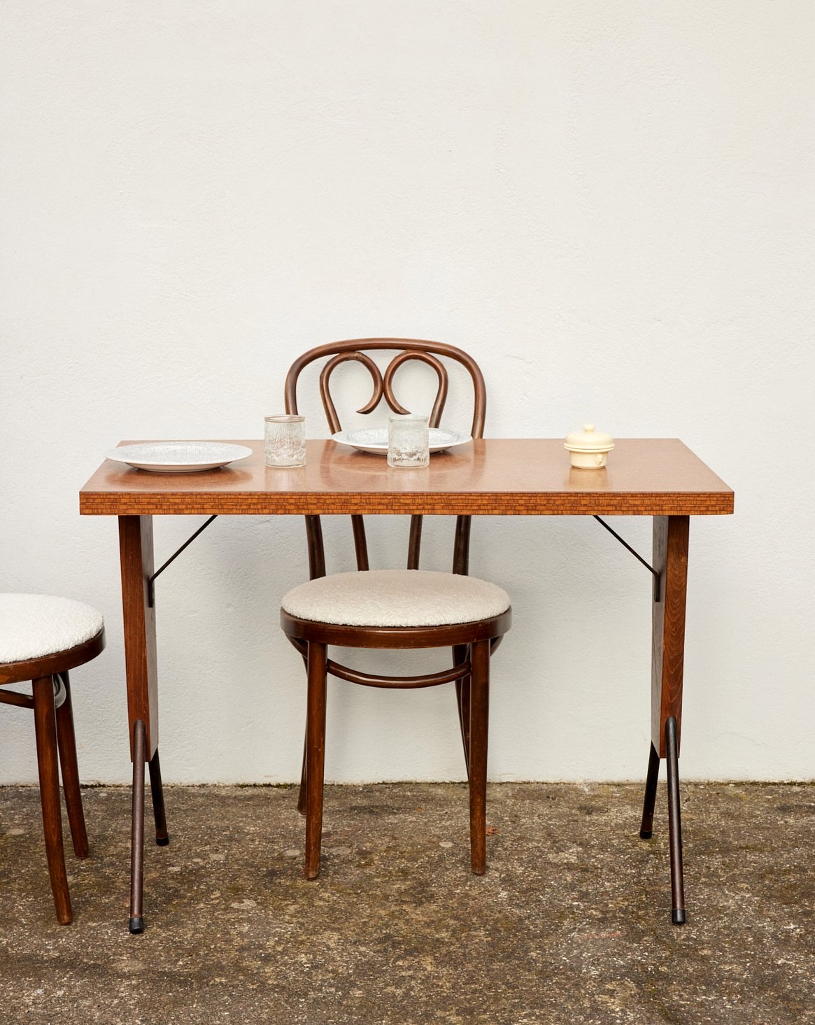 Adoptez cette table de bistrot de Nantes au placage en bois décoré, dont le motif apporte une délicate personnalité à la pièce. Sa surface généreuse, pensée pour accueillir confortablement deux à quatre convives, la destine autant aux repas qu'à un coin café ou un bureau ponctuel. Le bois plaqué confère une chaleur visuelle et une présence vintage qui structure une ambiance accueillante et intimiste. Traces d'usure discrètes. Elle peut accueillir 4 convives.