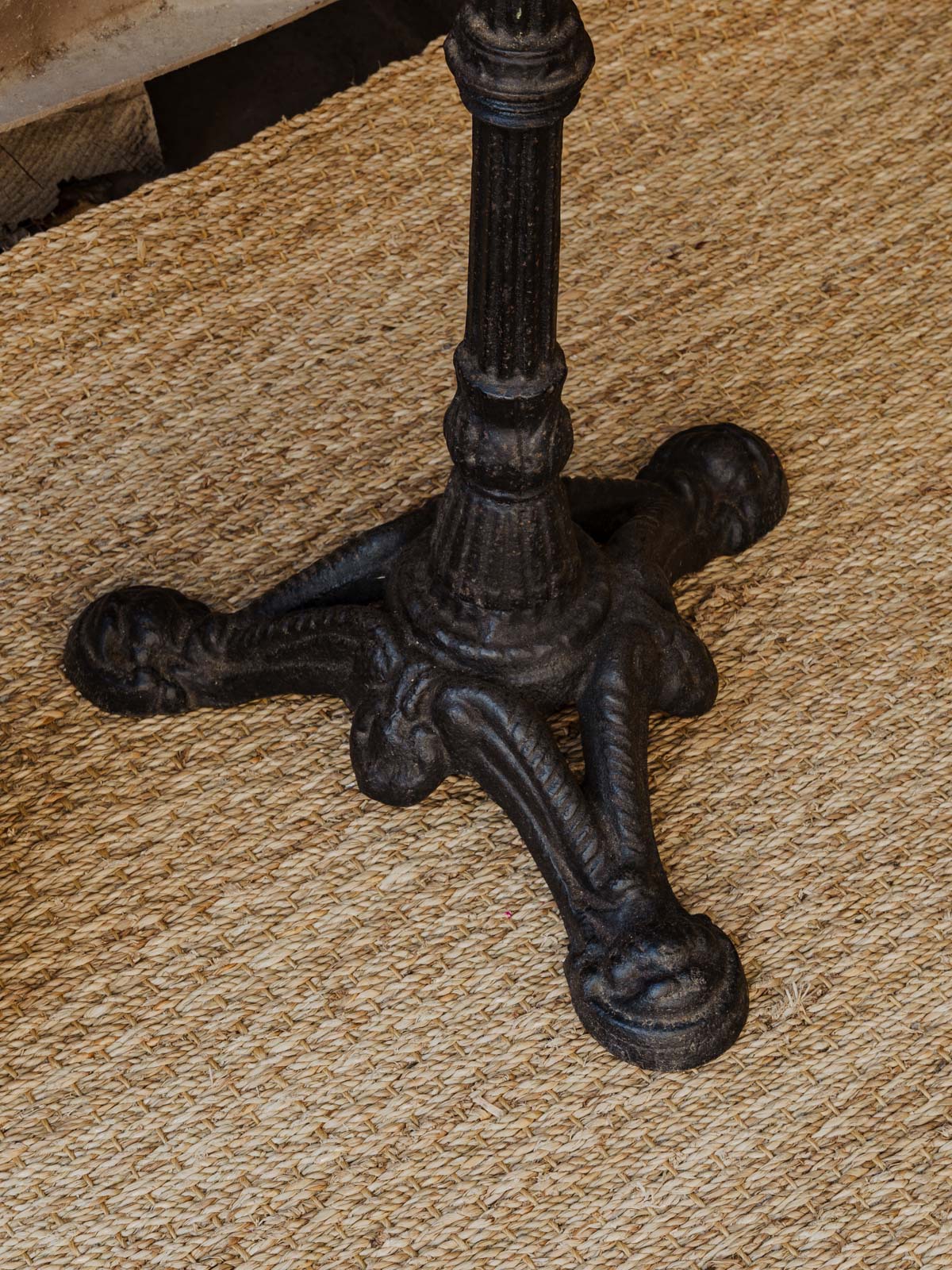 Sublimez votre intérieur avec cette table de bistrot au plateau en marbre et pieds noirs ornés de têtes de lion, un mélange de raffinement classique et de caractère vintage. Son diamètre et sa hauteur lui permettent d'accueillir un coin café ou de servir de table d'appoint sur une terrasse ou dans une cuisine cosy, tandis que la pierre apporte une présence lumineuse et les pieds sombres ancrent l'ensemble. Quelques tâches sur le marbre.