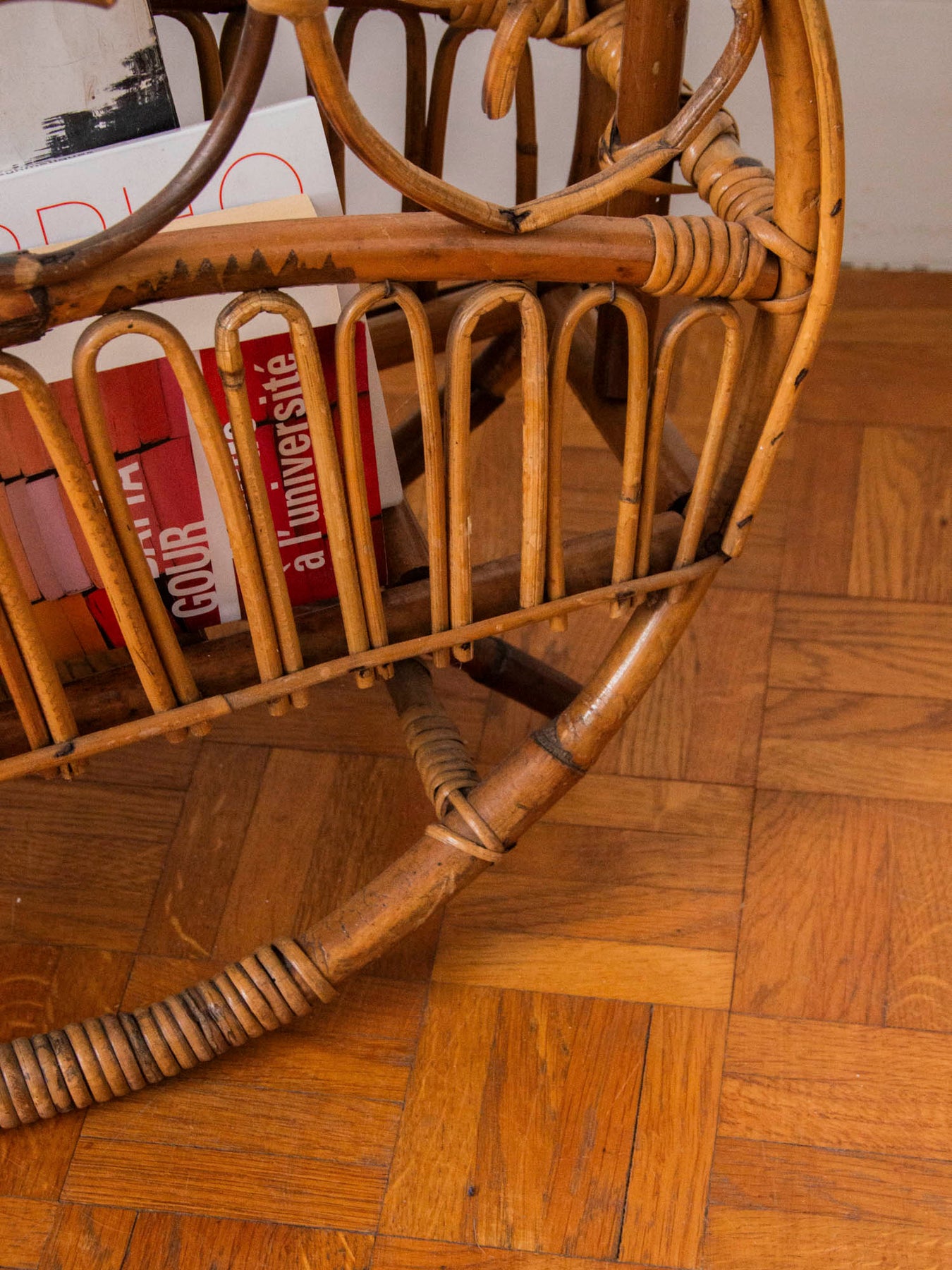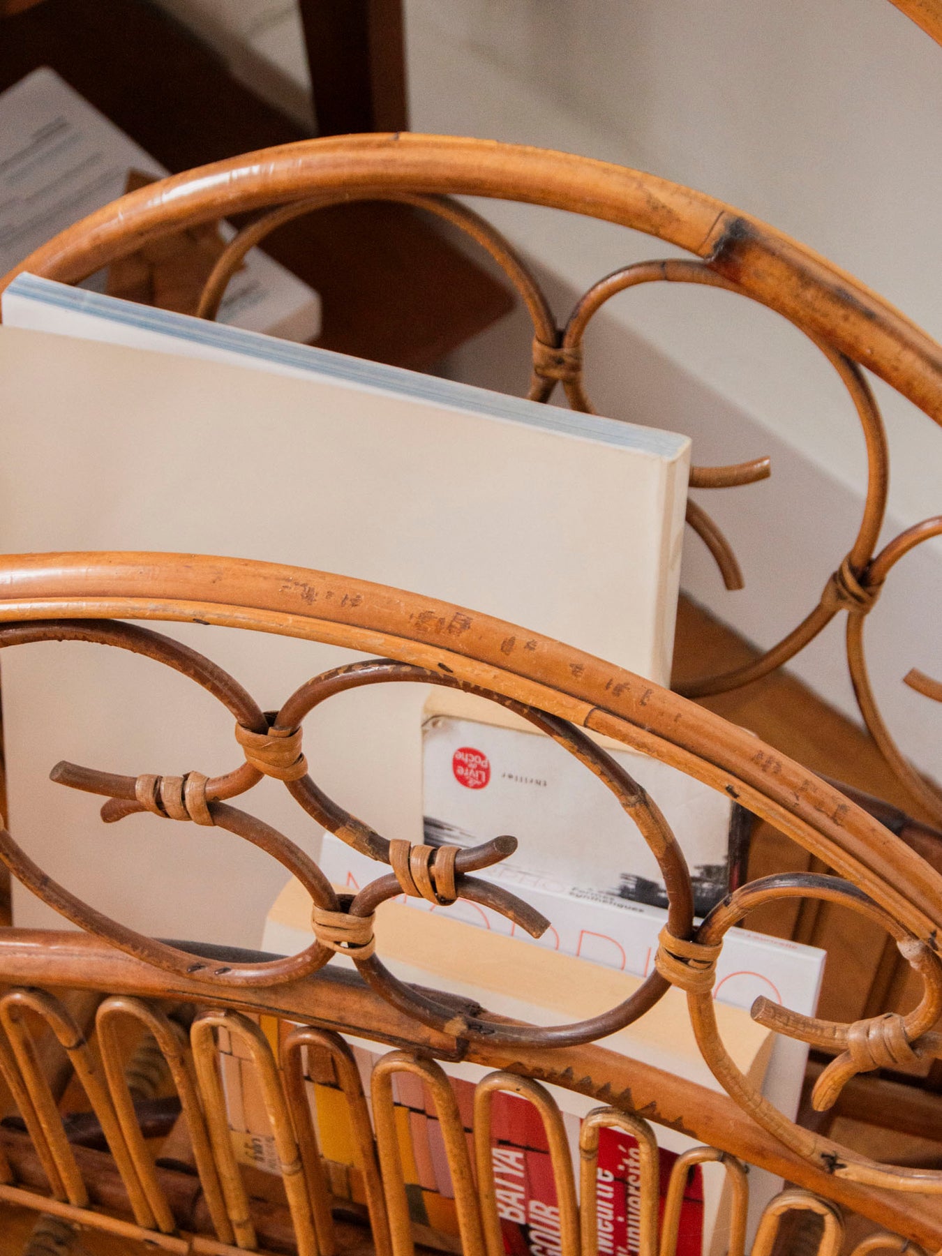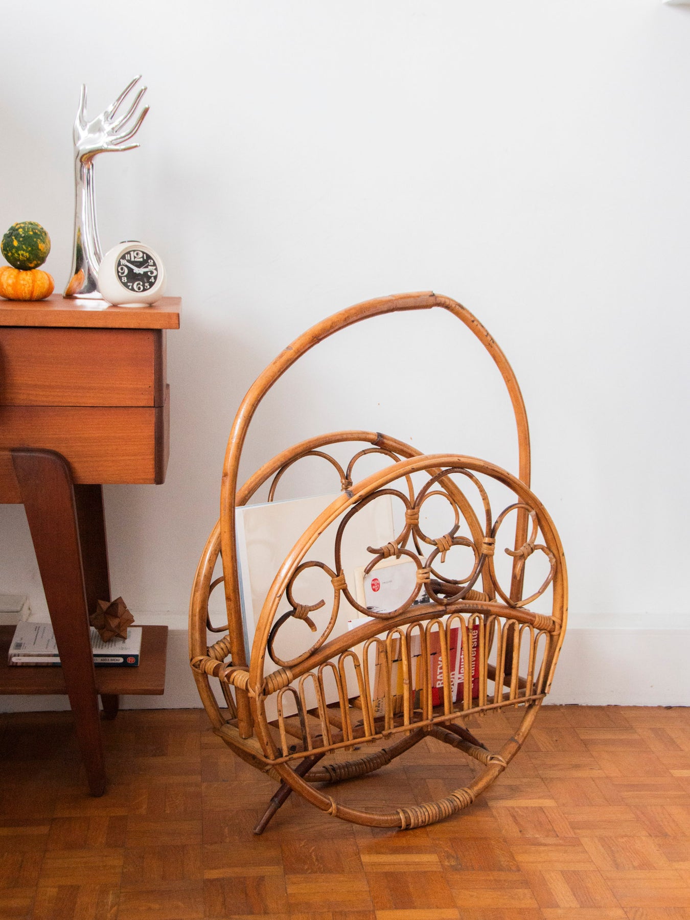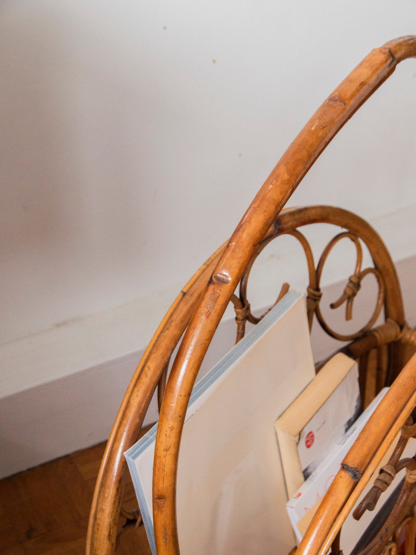Adoptez ce grand porte-revues en rotin et osier signé Franco Albini, dont la silhouette arrondie apporte une note organique et raffinée à votre intérieur. Sa structure tressée offre un grand espace de rangement pour livres et revues tout en restant légère visuellement, idéale dans le salon ou près d'une bibliothèque. Le contraste entre la fibre naturelle et les lignes modernistes du designer crée une atmosphère chaleureuse et intemporelle, parfaite pour une décoration poétique et apaisée.